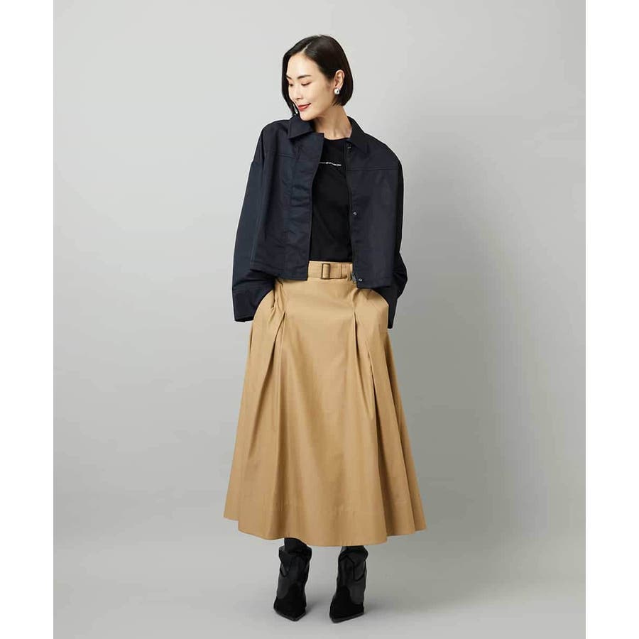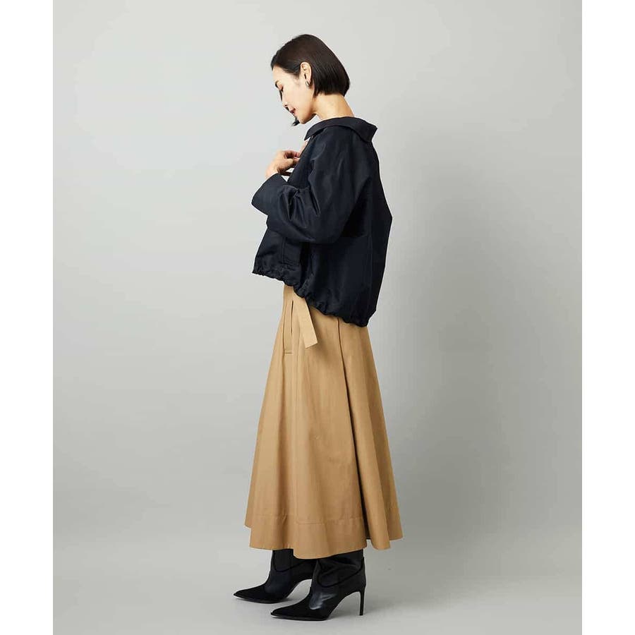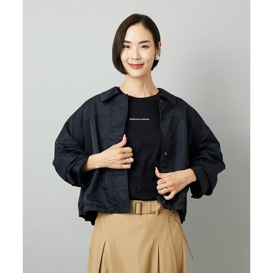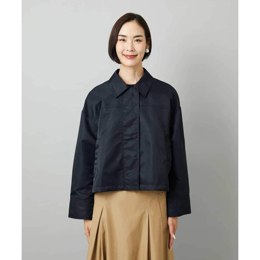 立体的なフォルムが特徴のステンカラーショートブルゾン。相反するテイストを組み合わせることで、大人らしい洗練されたミックスコーデが完成されます。40サイズは限定店舗展開です。