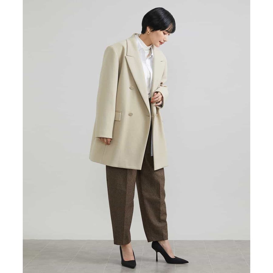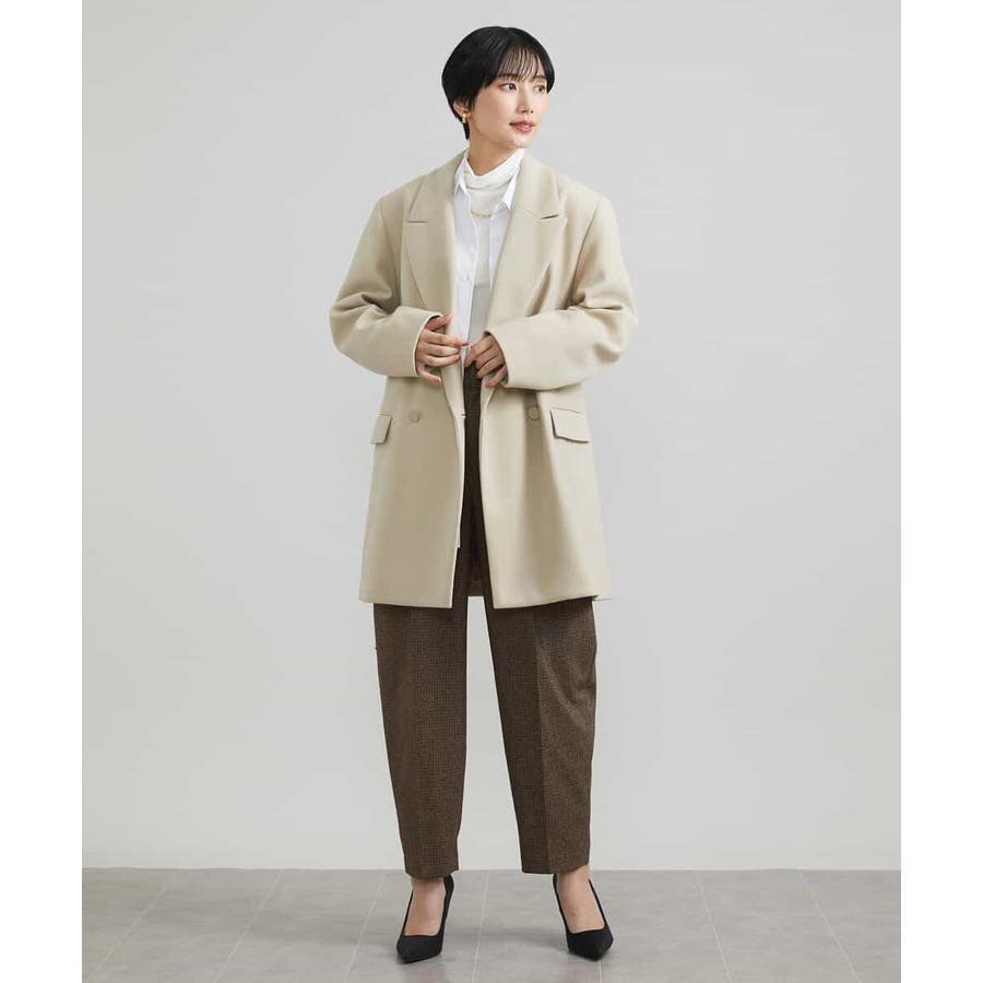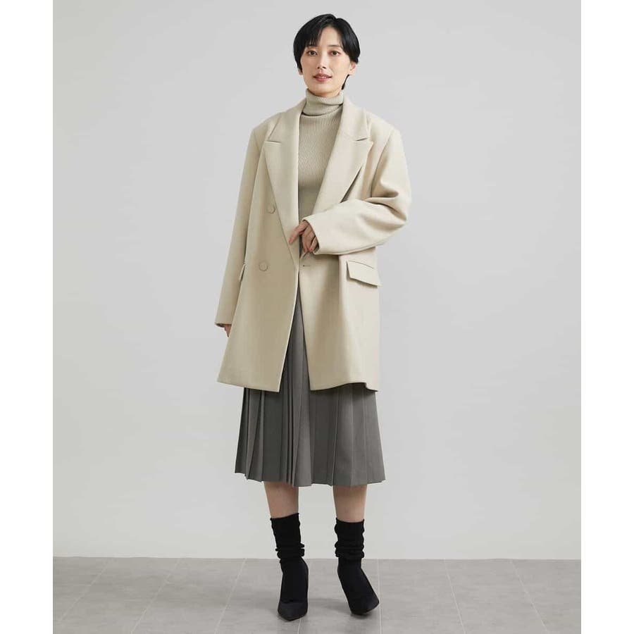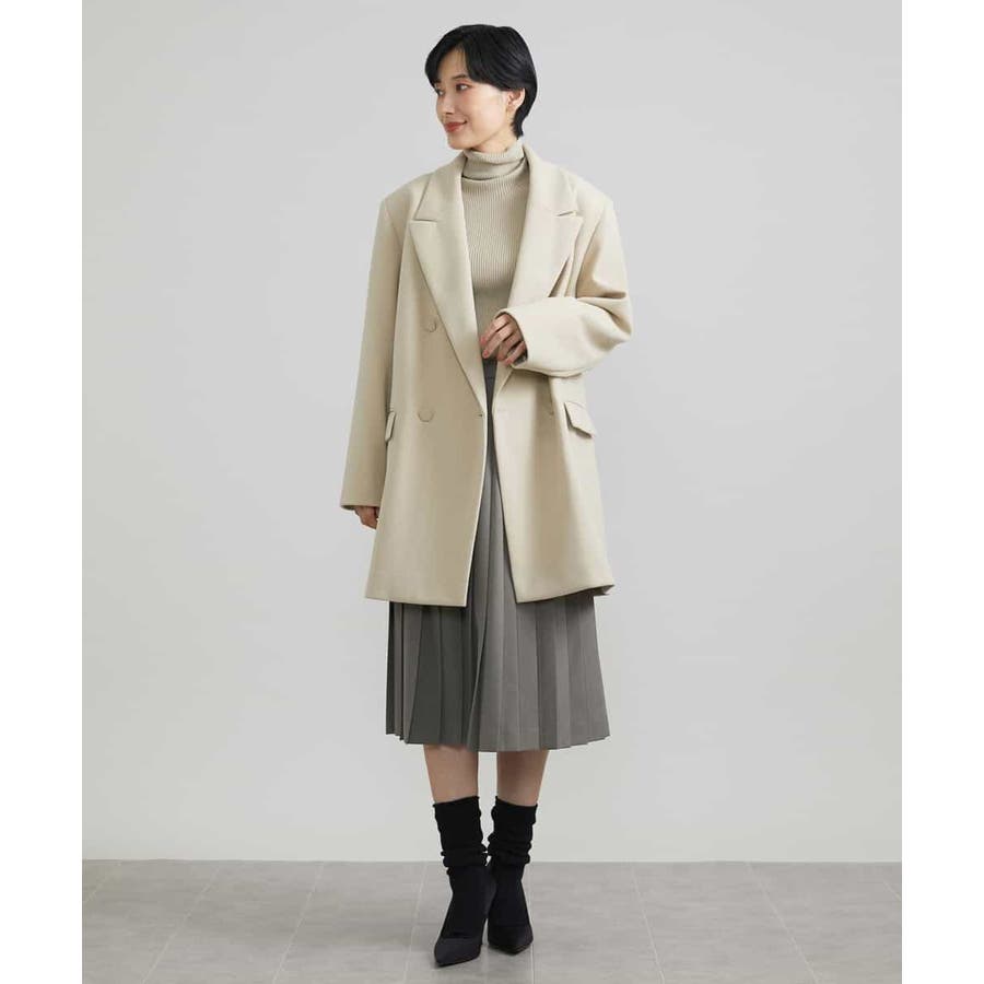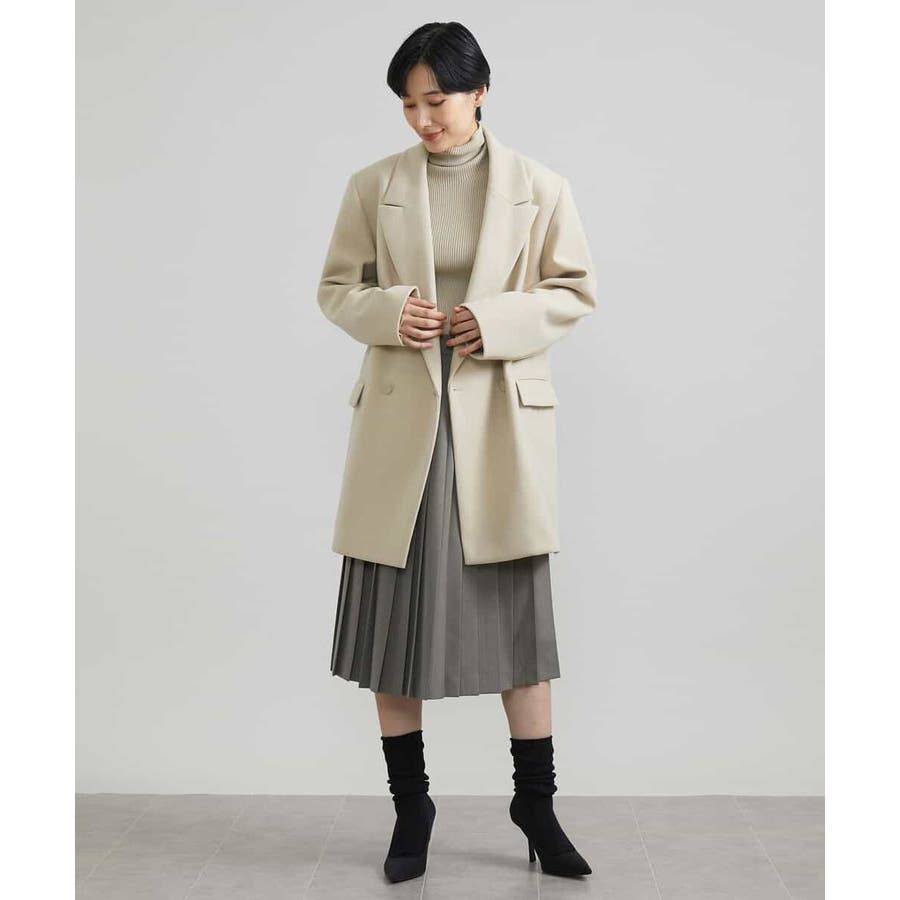 肩まわりにボリュームを持たせたアウターは、落ち感のあるプリーツスカート[FMHAV31270]をあわせたスタイリングがブランドおすすめ。