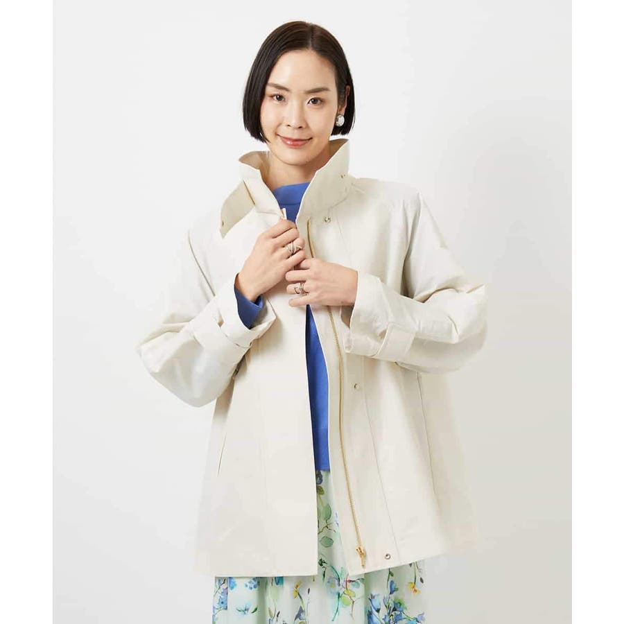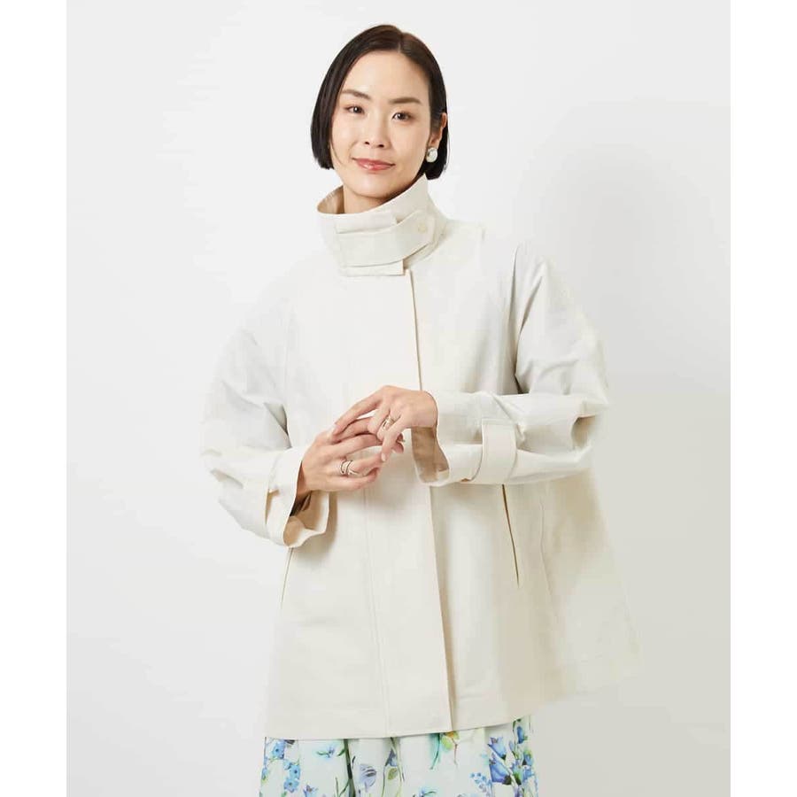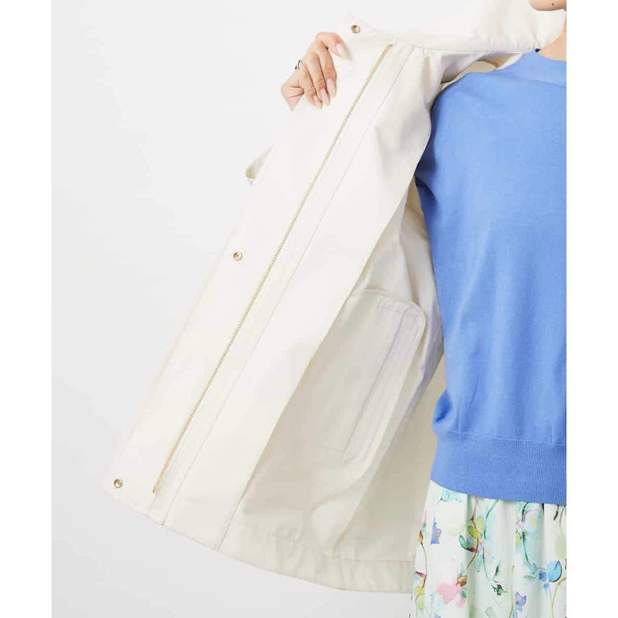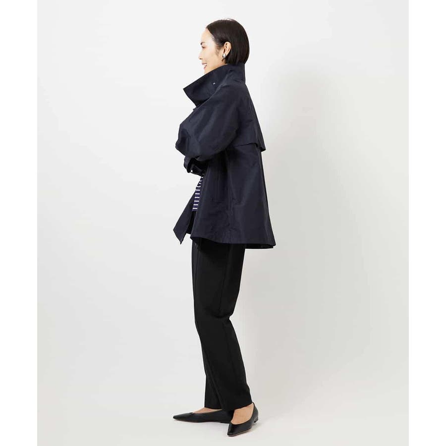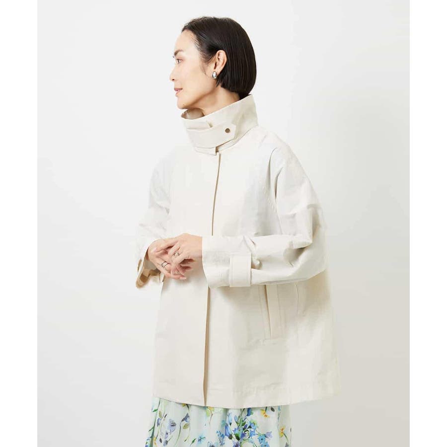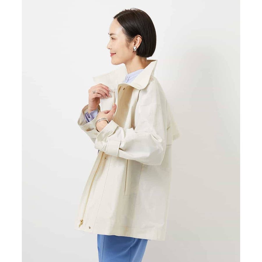 スロートタブのディテールがさりげないアクセントとなる、ミドルレングスのライトアウター。メモリー素材特有のハリとコシを活かし、着るだけで立体感のある美しいフォルムを演出します。衿を立てた際にもメイクが付きにくいよう配慮したパターン設計で、実用性にもこだわりました。袖口のベルトは内側で留める仕様にすることで、自然にボリュームが生まれ、パフスリーブのようなこなれた袖口の表情も楽しめます。軽やかな着心地で、デイリーからきれいめスタイルまで幅広く活躍します。 40サイズは限定店舗展開です。