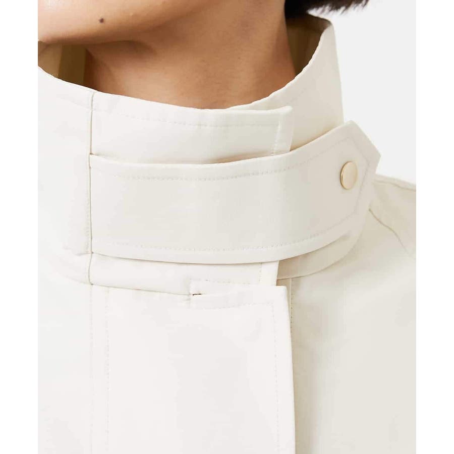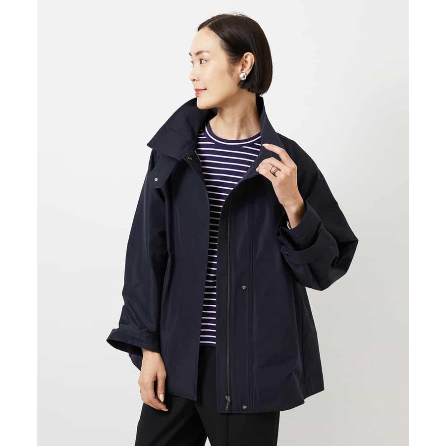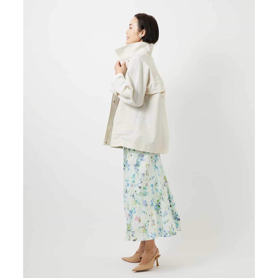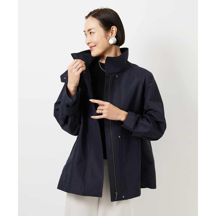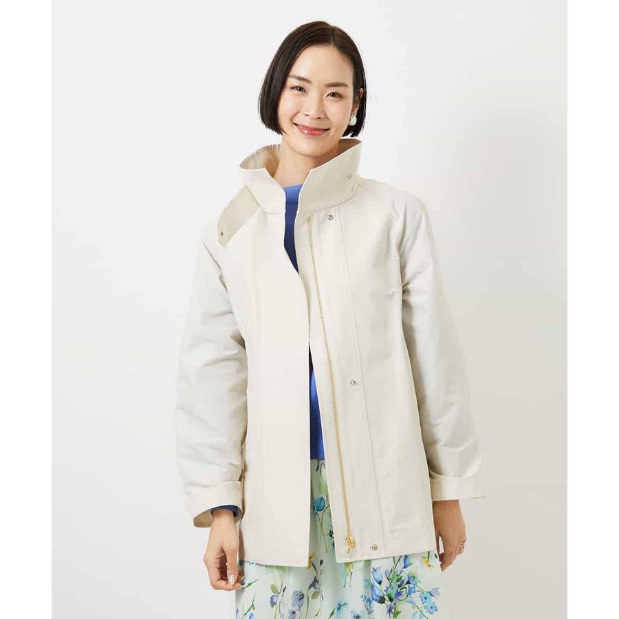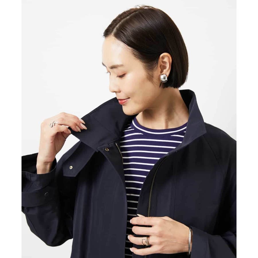 スロートタブのディテールがさりげないアクセントとなる、ミドルレングスのライトアウター。メモリー素材特有のハリとコシを活かし、着るだけで立体感のある美しいフォルムを演出します。衿を立てた際にもメイクが付きにくいよう配慮したパターン設計で、実用性にもこだわりました。袖口のベルトは内側で留める仕様にすることで、自然にボリュームが生まれ、パフスリーブのようなこなれた袖口の表情も楽しめます。軽やかな着心地で、デイリーからきれいめスタイルまで幅広く活躍します。 40サイズは限定店舗展開です。
