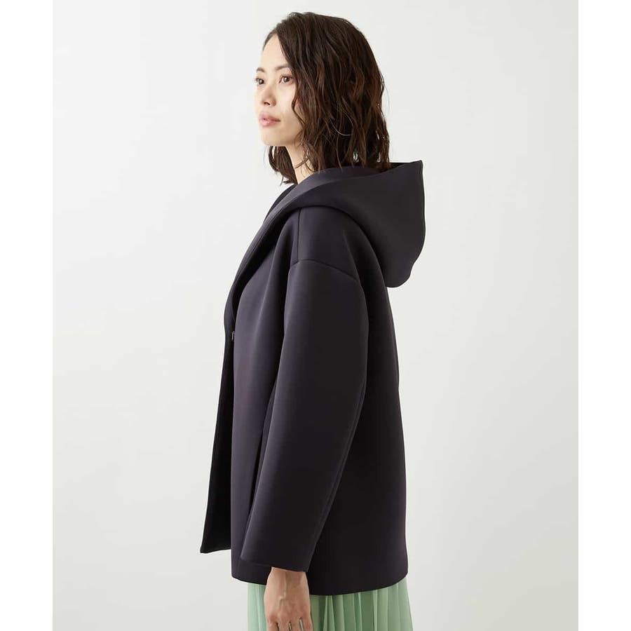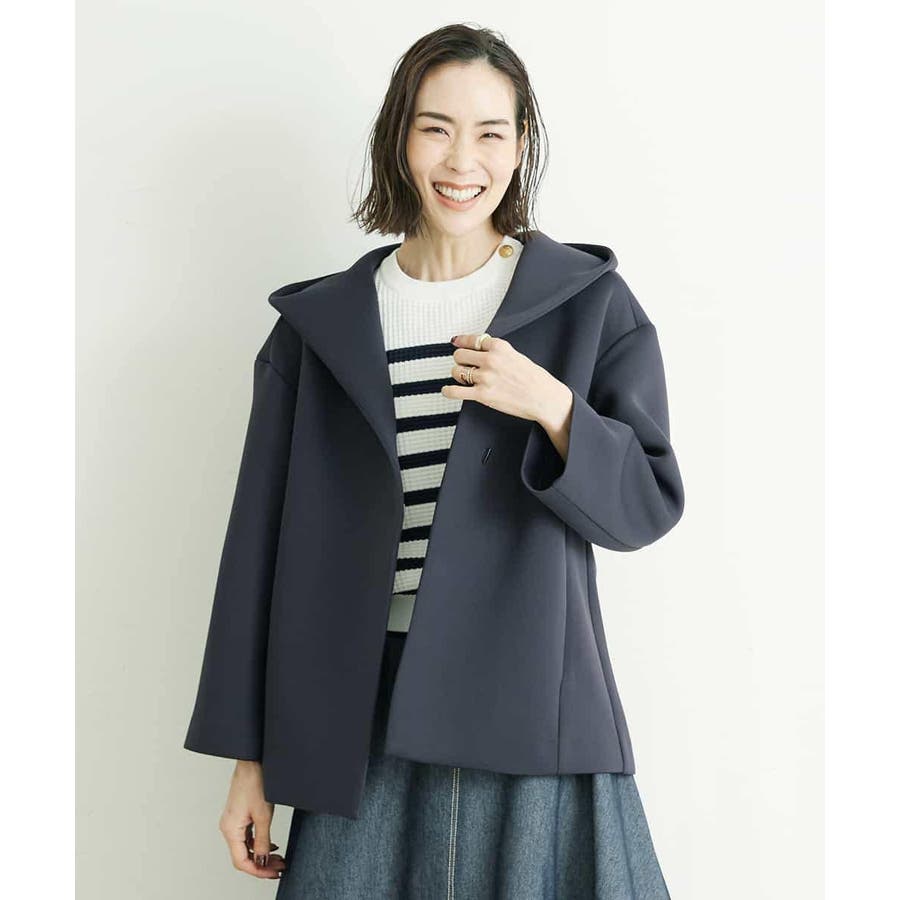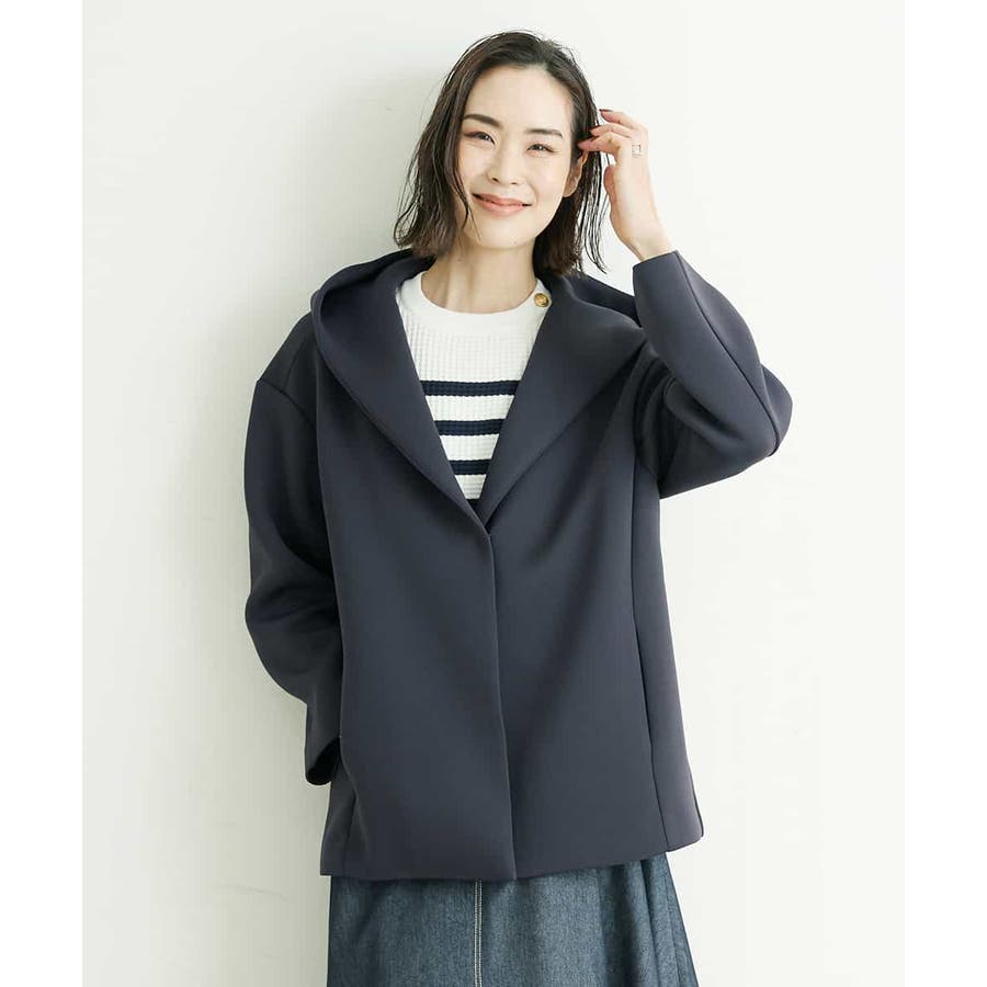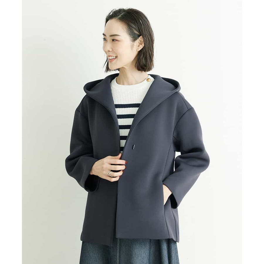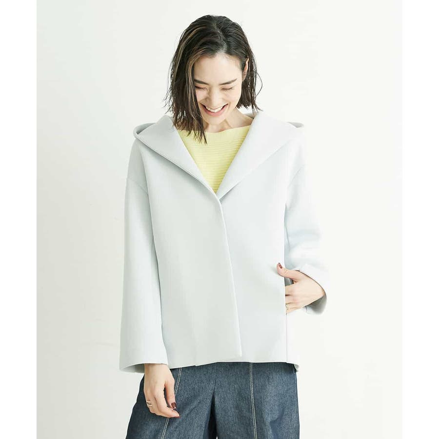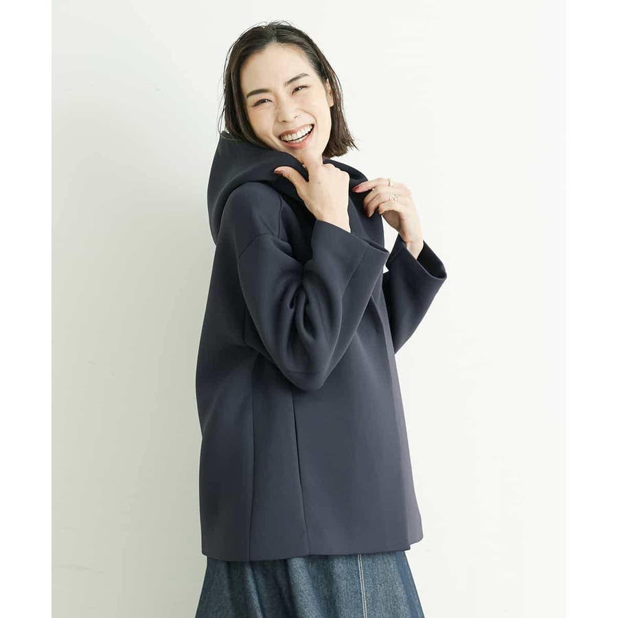 季節の変わりめに着たいライトアウター。ほどよいハリコシを活かした立体的なシルエット。前見頃とフードの接ぎ目を無くしているので、自然にフードが折り返りシルエットをキープします。バランスが取りやすく、腰回りをカバーしてくれる着丈です。40サイズは店舗限定展開です。