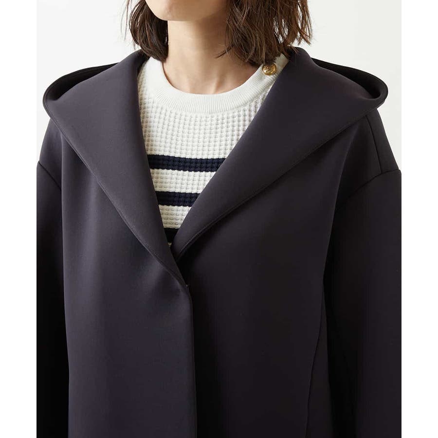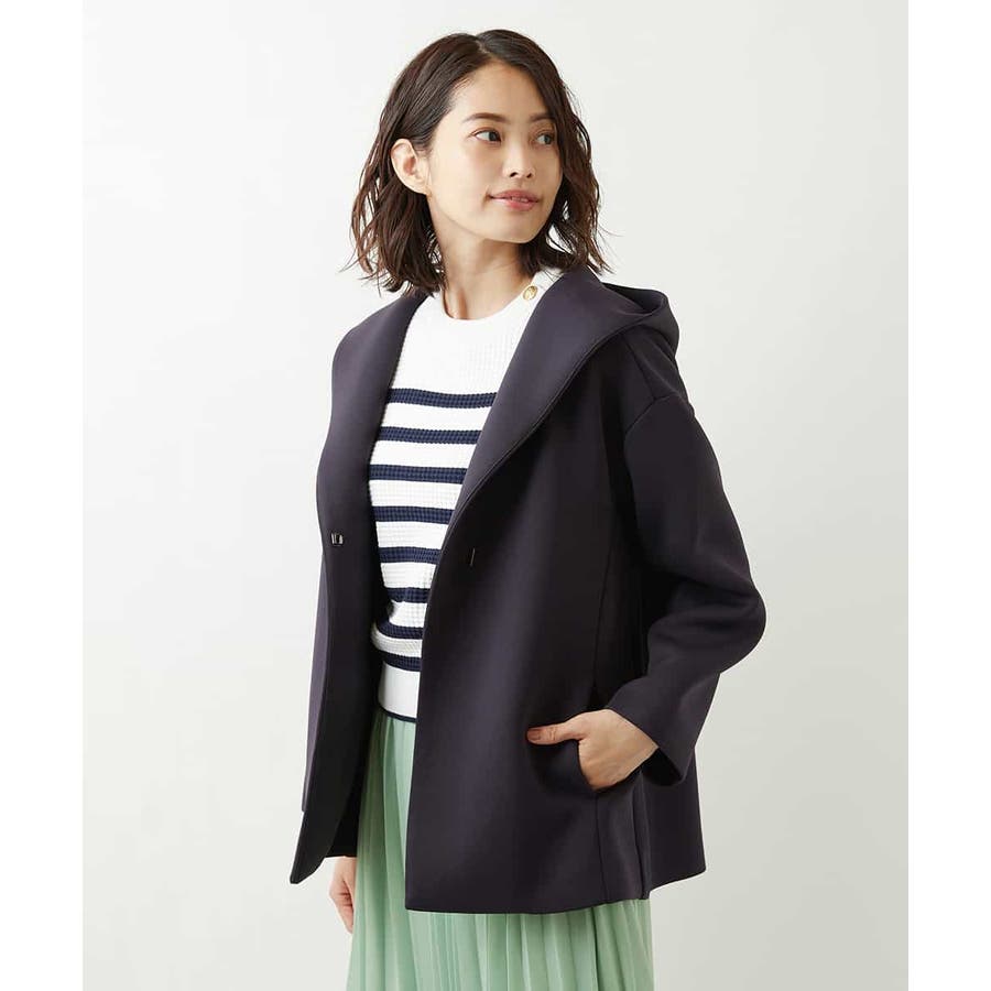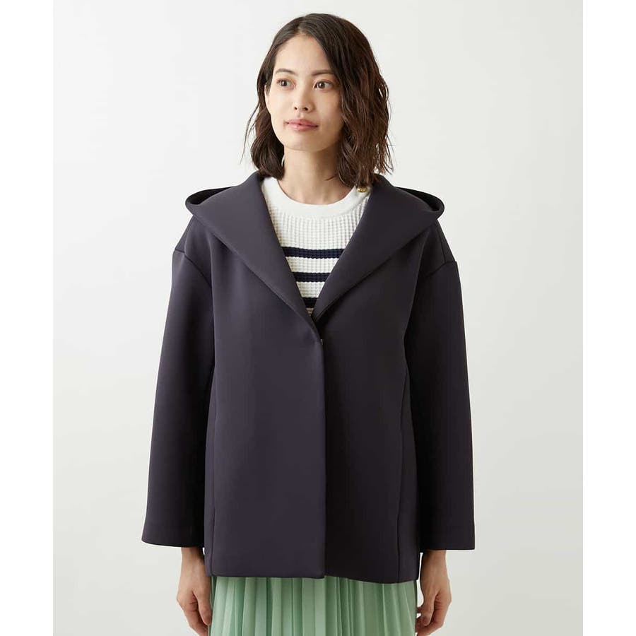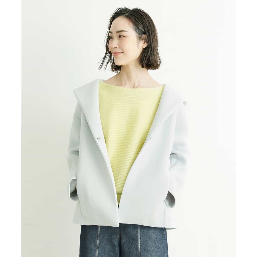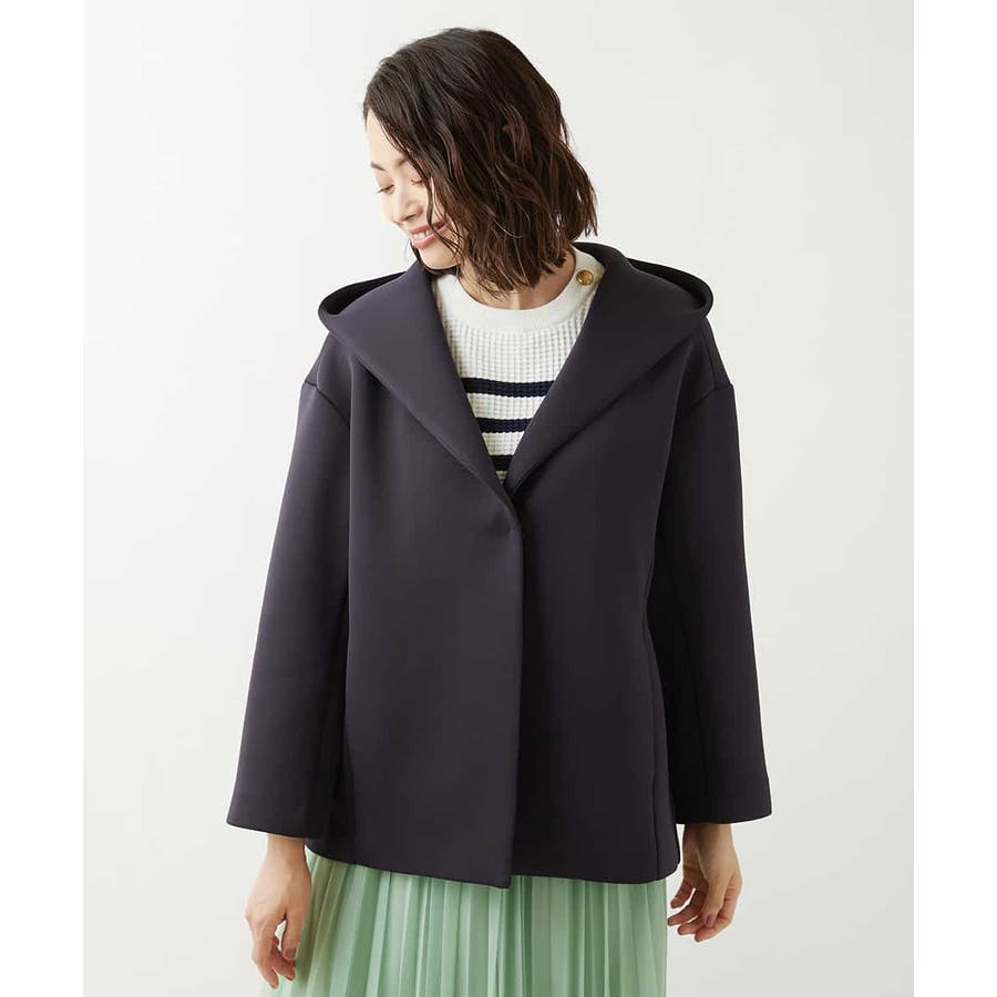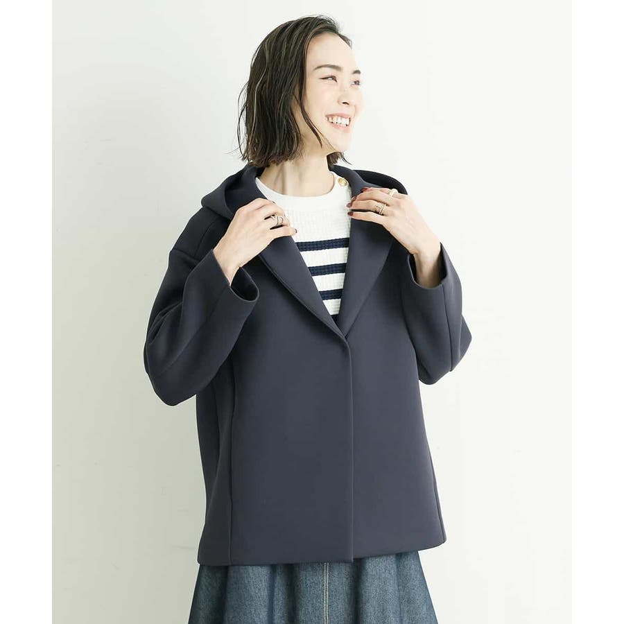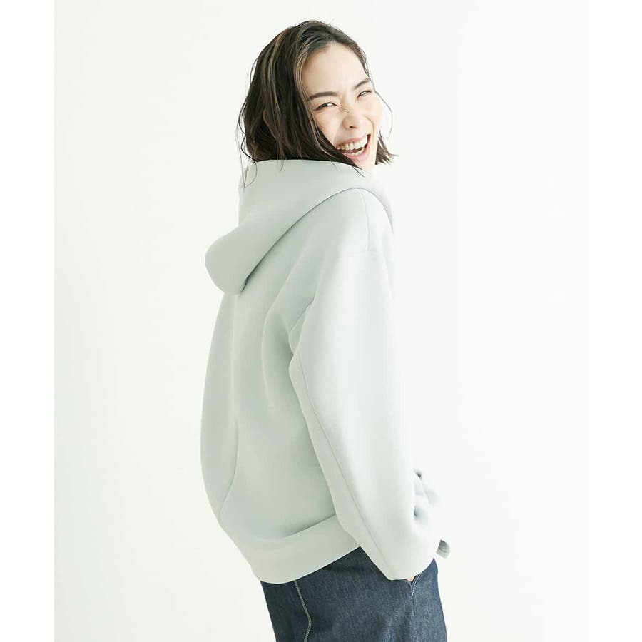 季節の変わりめに着たいライトアウター。ほどよいハリコシを活かした立体的なシルエット。前見頃とフードの接ぎ目を無くしているので、自然にフードが折り返りシルエットをキープします。バランスが取りやすく、腰回りをカバーしてくれる着丈です。40サイズは店舗限定展開です。