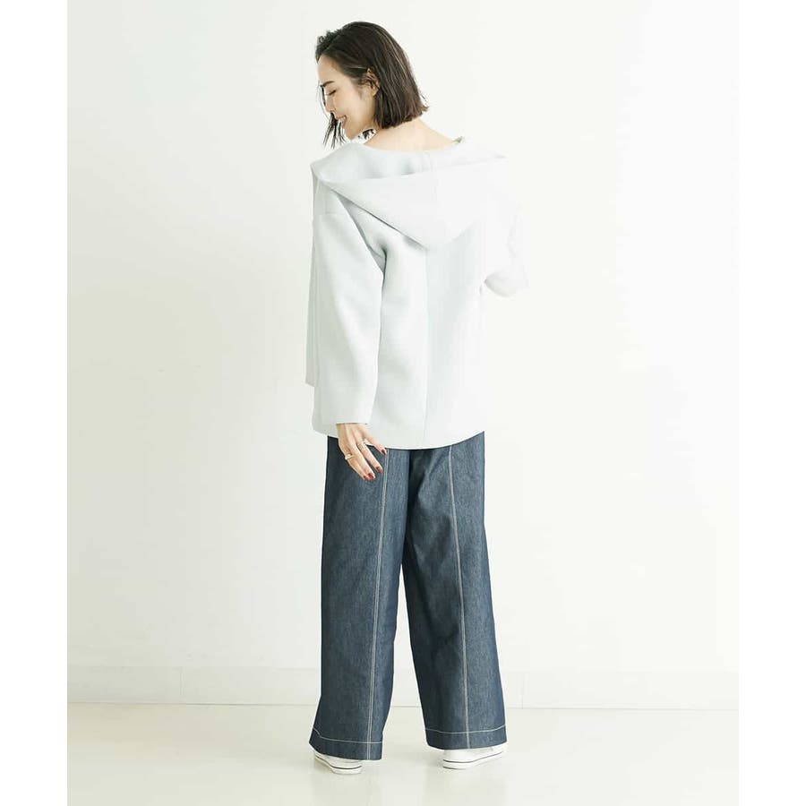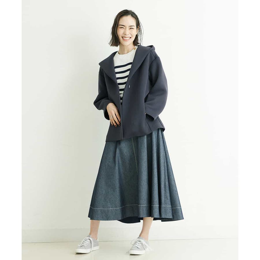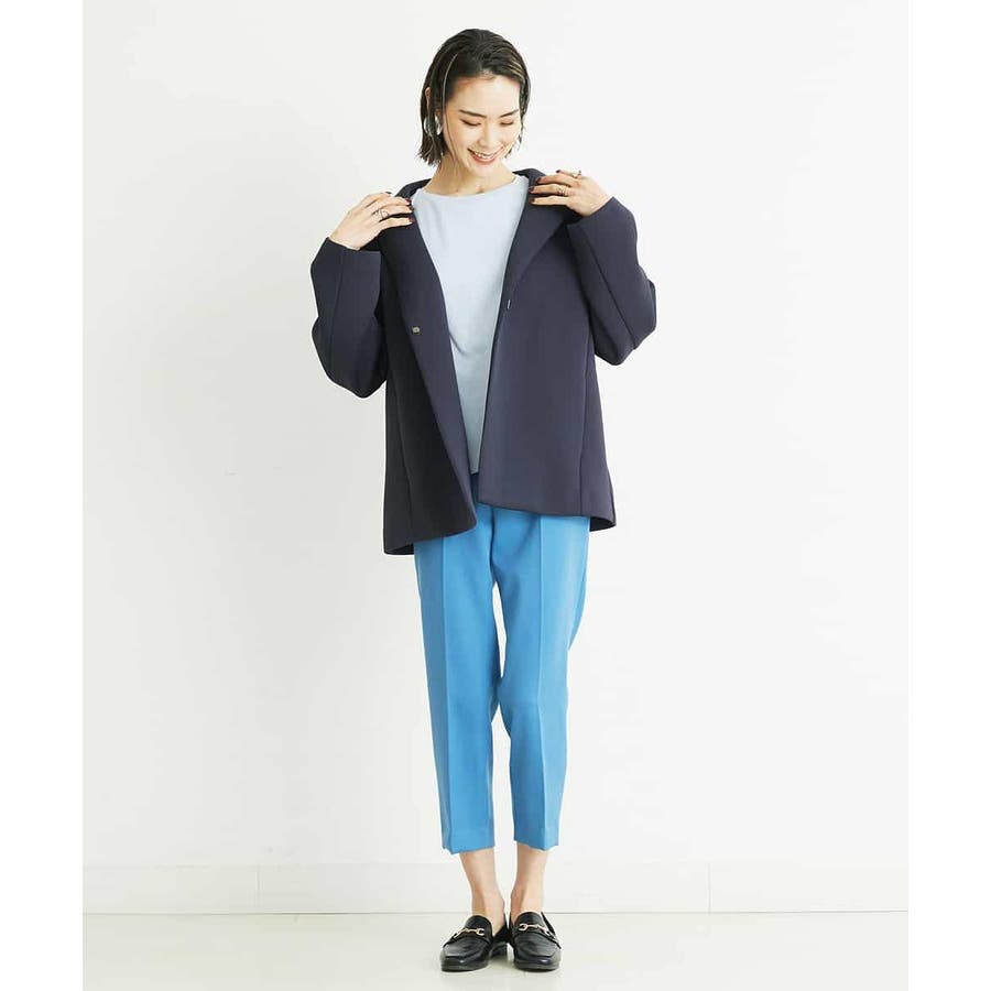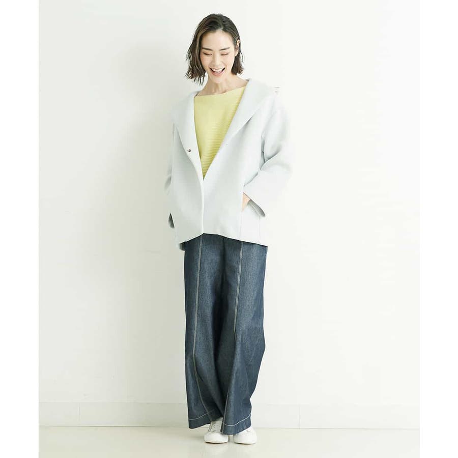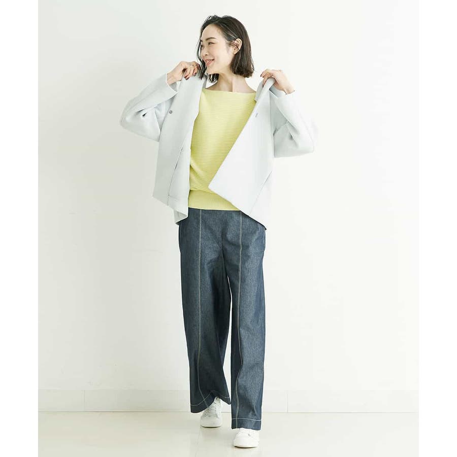 ラフにパンツを合わせてカジュアルなスタイリングに。きれい目な表面感はスカートスタイルにもマッチし、幅広く着用いただけます。