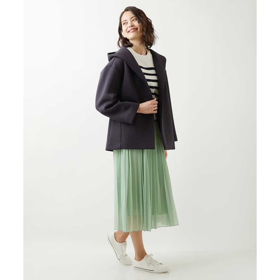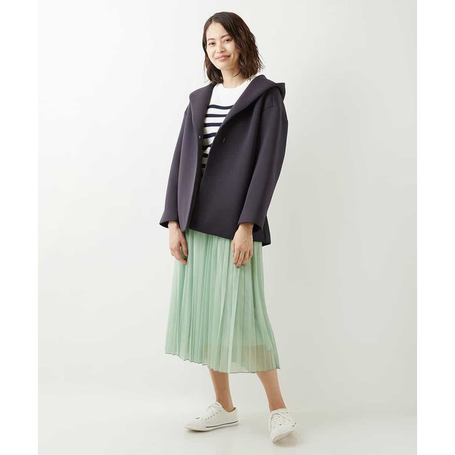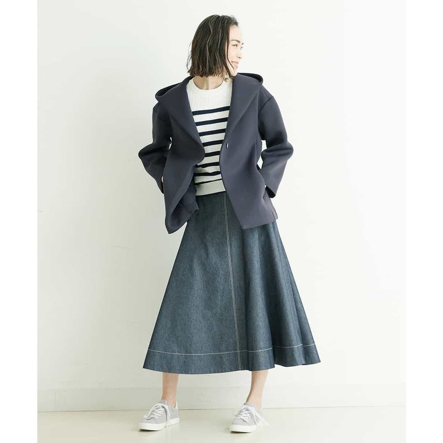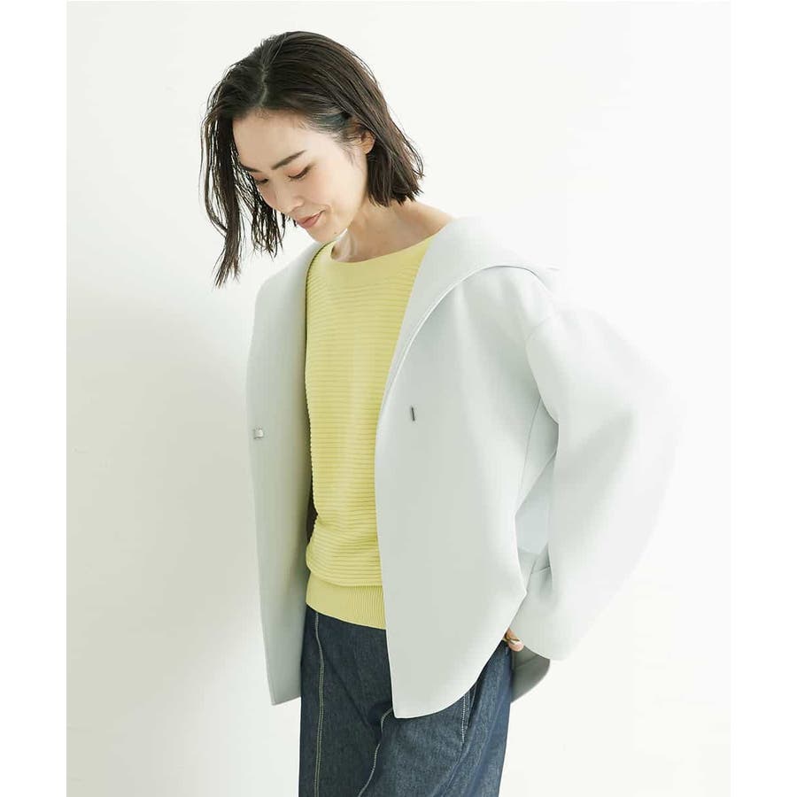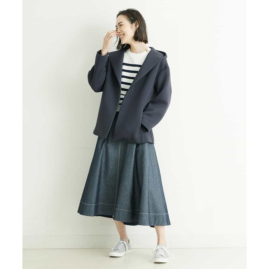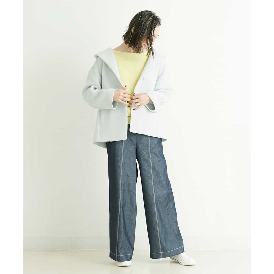 ラフにパンツを合わせてカジュアルなスタイリングに。きれい目な表面感はスカートスタイルにもマッチし、幅広く着用いただけます。
