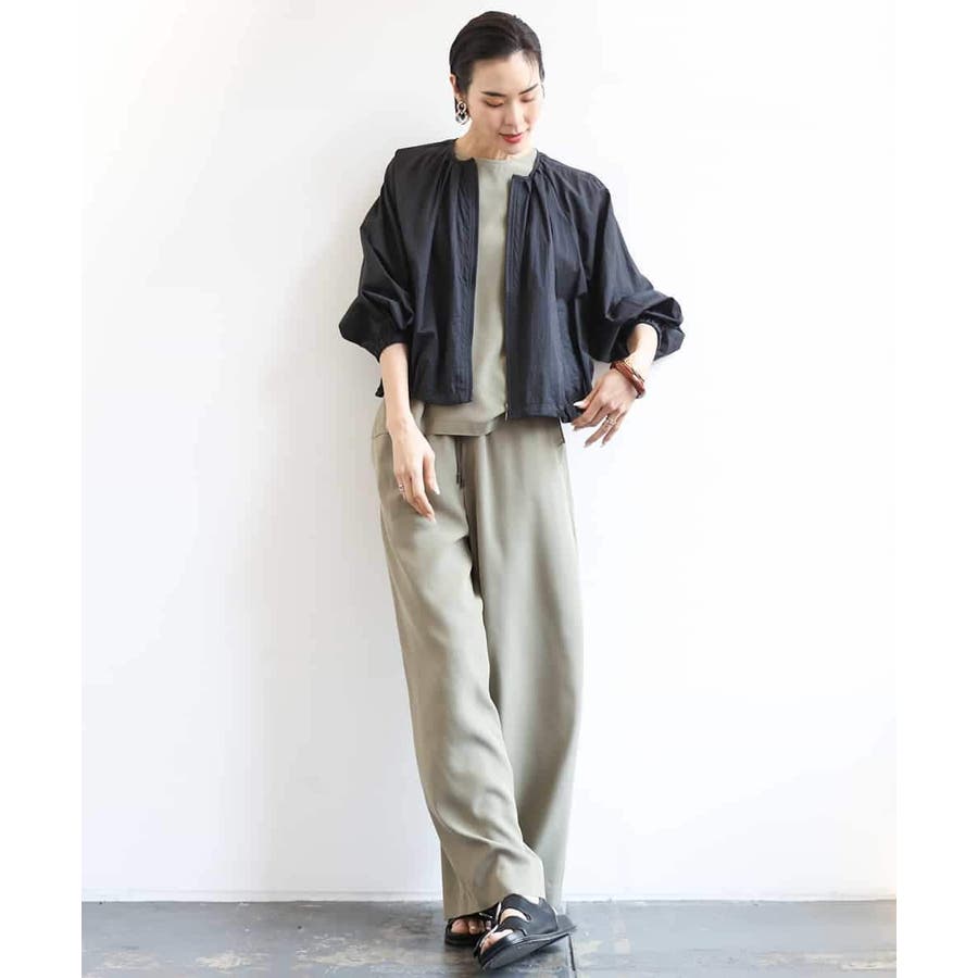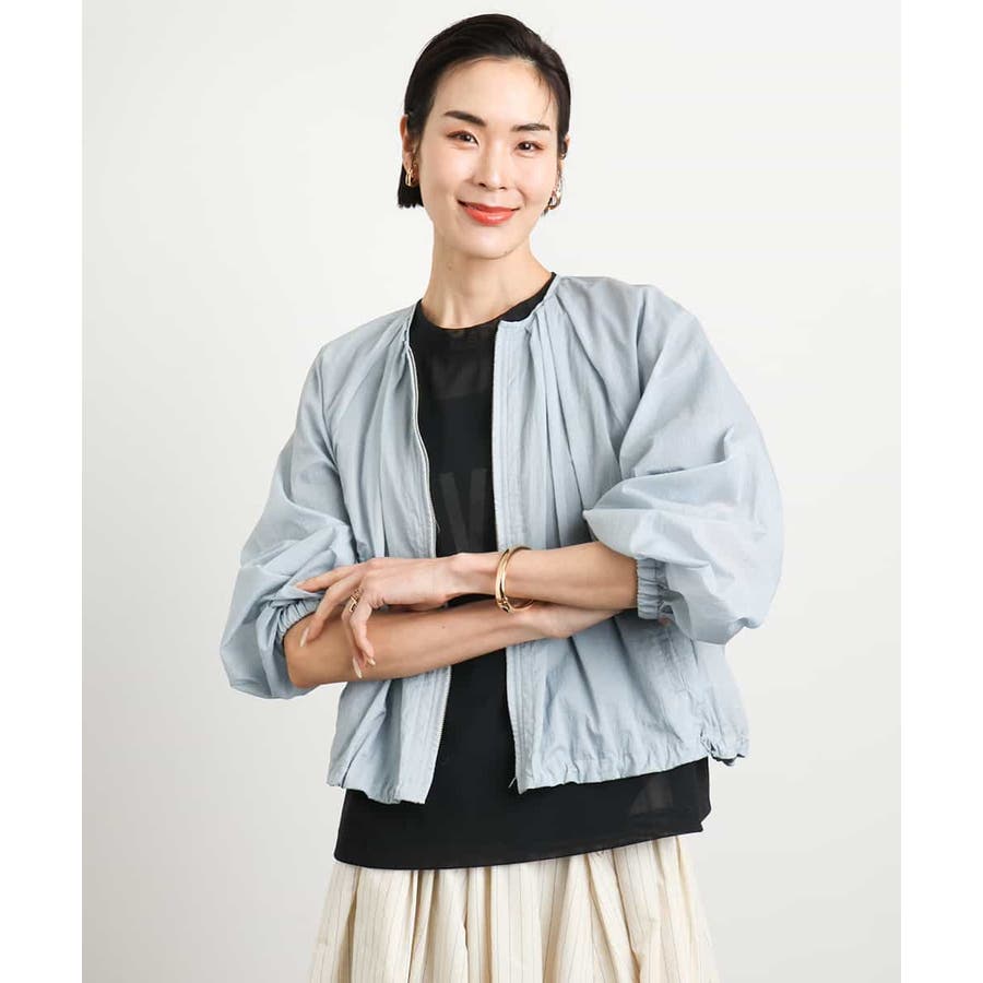 程よいシアー感とタックアップしてもシルエットが決まりやすいパフスリーブデザイン。裾もボリュームの調整ができ、お好みのボリュームで着用いただけます。40サイズは限定店舗展開です。