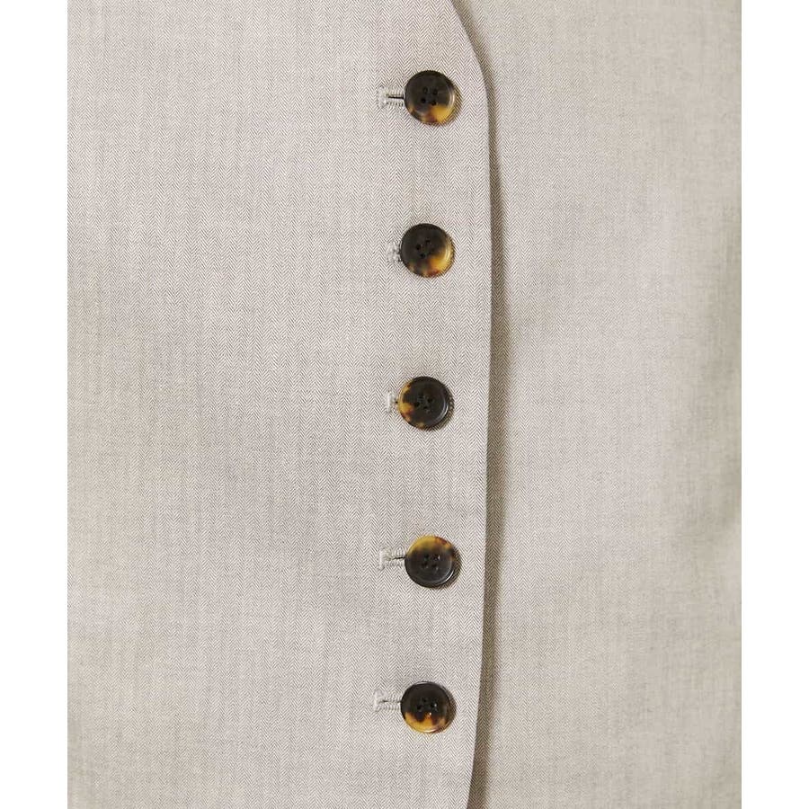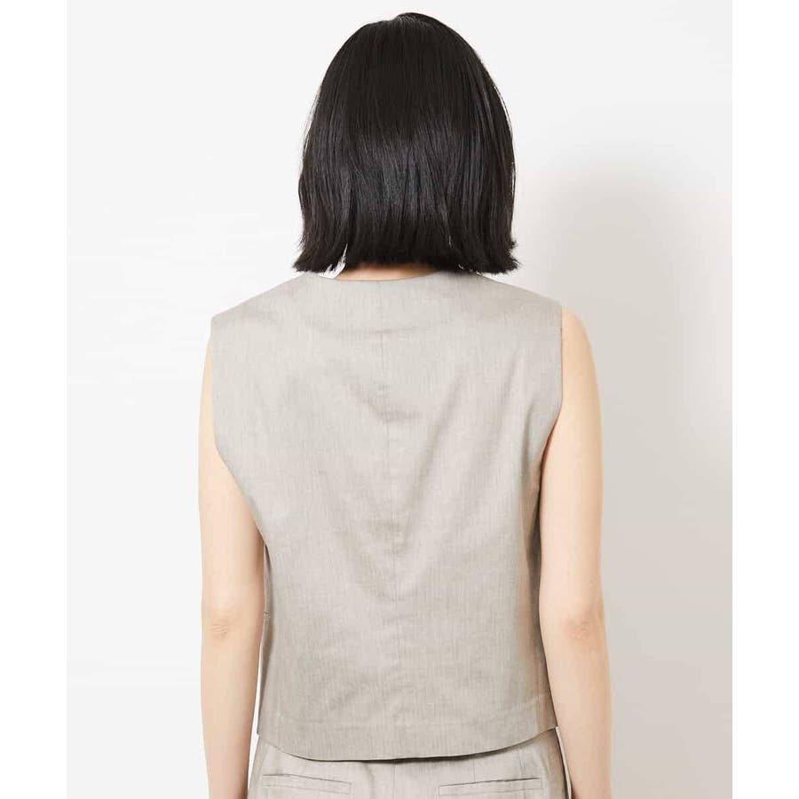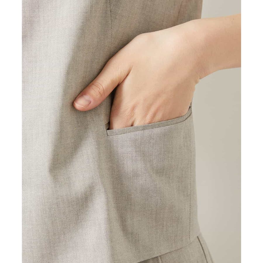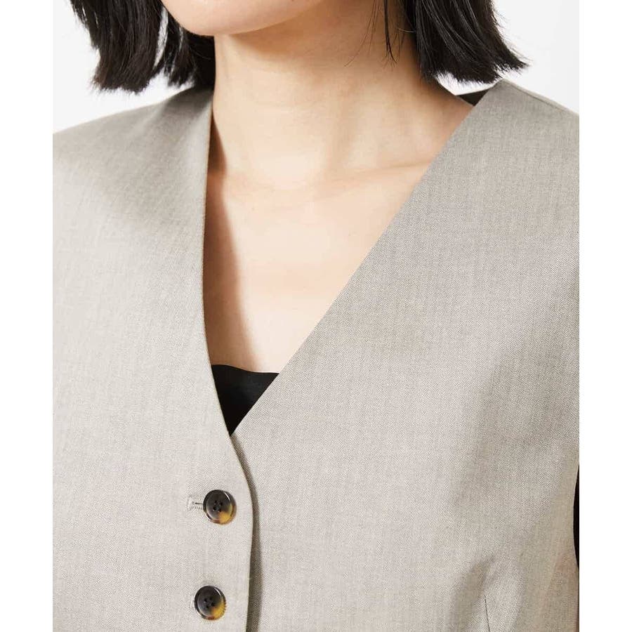 細かなへリンボーン柄が無地ライクで着られるジレベストです。ノーカラーで、首回りをすっきりさせ、暑いシーズンでもお召しいただきやすい一枚です。40サイズは限定店舗展開です。