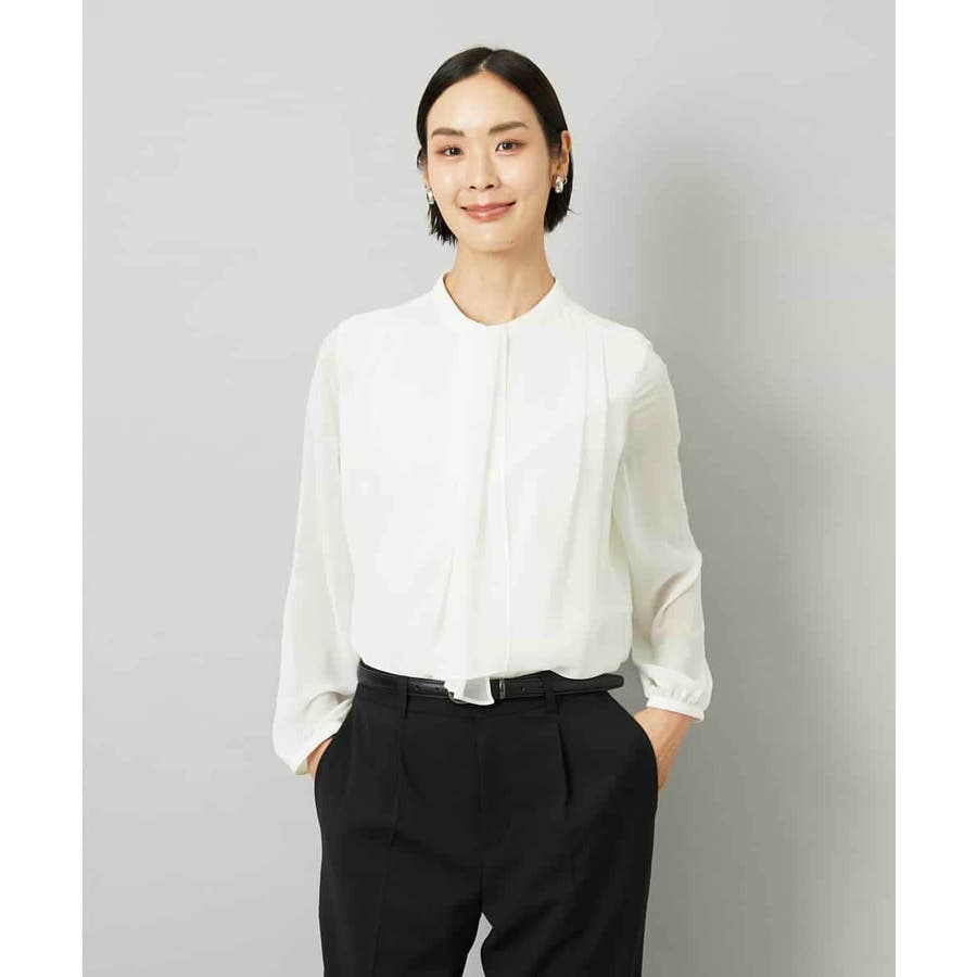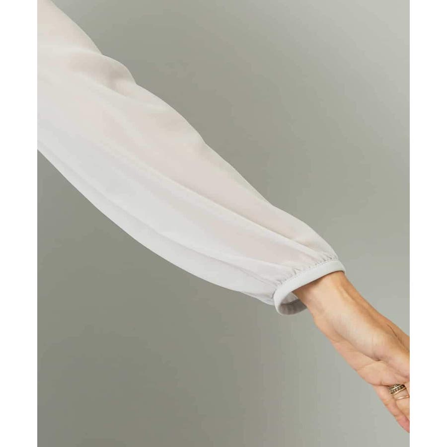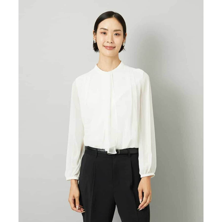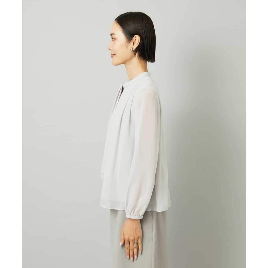 フェミニンさと上品さを兼ねそろえた大人ブラウソ―。一枚着はもちろん、ジャケットのインナーとしてもボウタイが華やかな印象を叶えます。ボウタイが取り外し可能なため、合わせるアイテムで衿元の雰囲気が変えられるのも嬉しいポイント。お出かけ着やオンスタイルのインナーとしても重宝するアイテム。