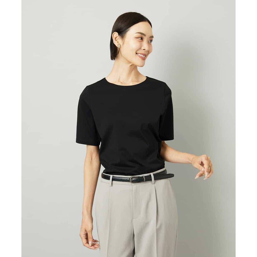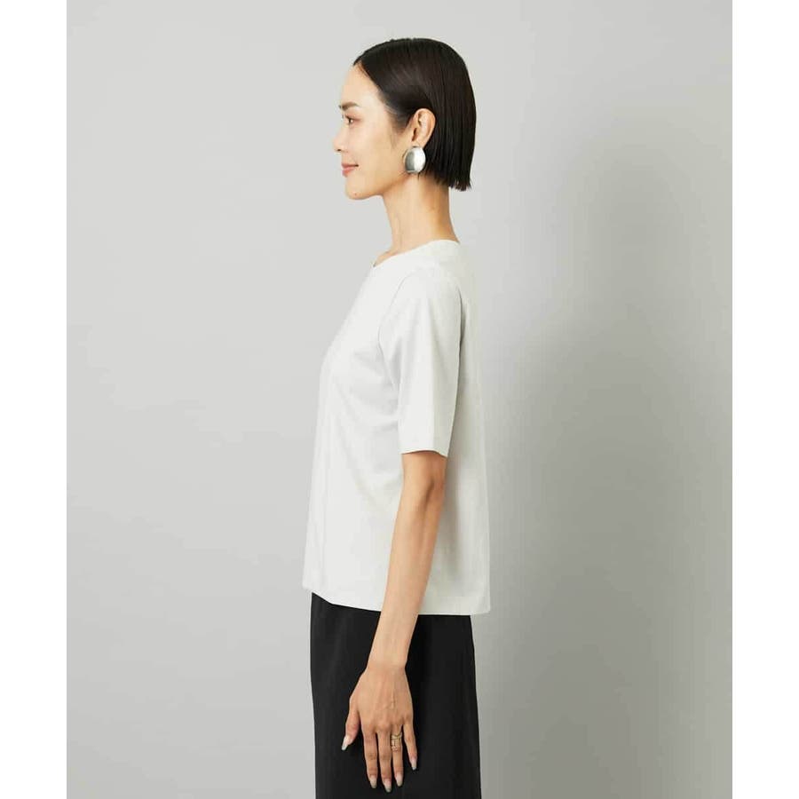 シルクのような艶感とクリアな表面感を持つ、大人のためのきれいめTシャツ。ジャケットのインナーとしても映える上品な一枚です。前身頃は二重仕立てで透け感を抑え、一枚でも着やすく、衿ぐりはステッチを表に出さない仕立て。カットソーでありながら、ブラウスのようなきちんと感を演出します。36・40サイズは限定店舗展開です。