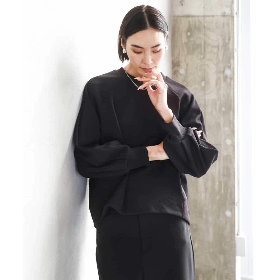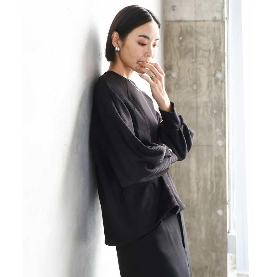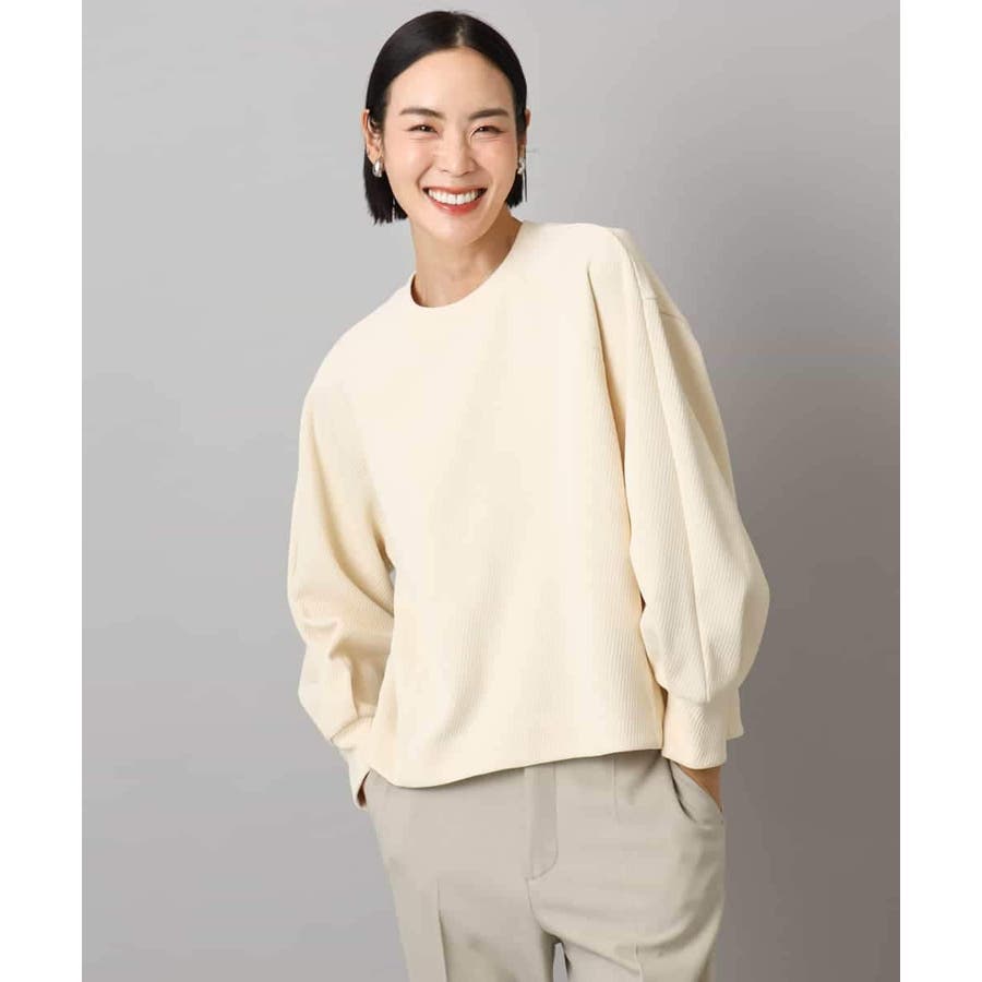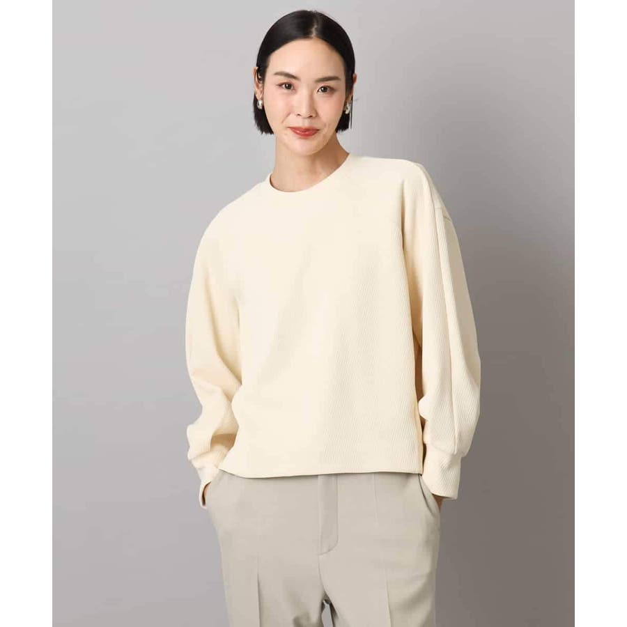 柄感のあるジャージ素材で仕立てたプルオーバー。適度なハリとふくらみがあり、シルエットを美しく保ちます。伸縮性に優れ、快適な着心地をキープ。カジュアルになりすぎず上品な表情で、モード感のある仕上がりです。