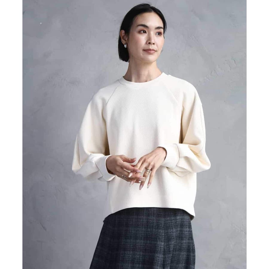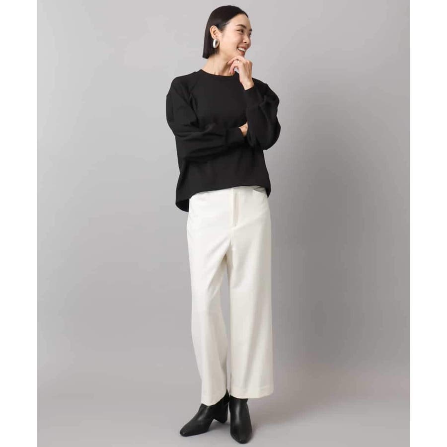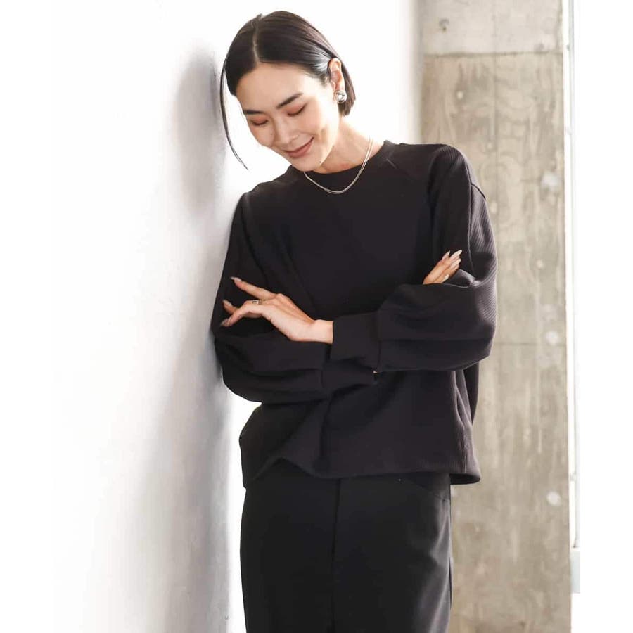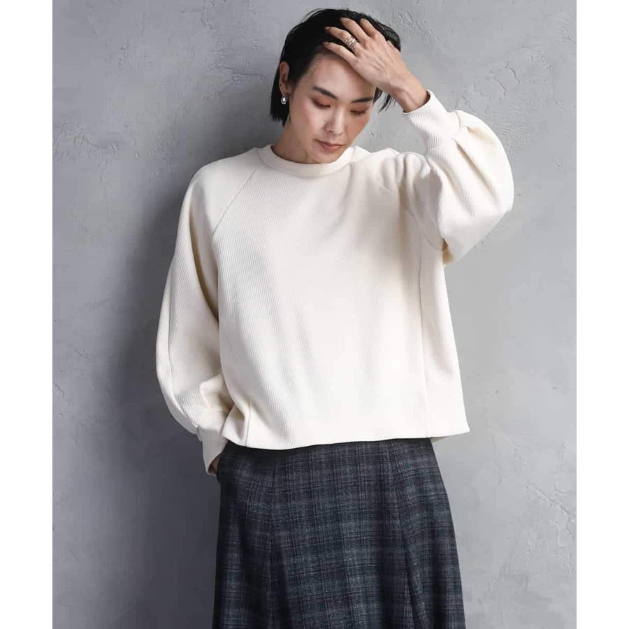 柄感のあるジャージ素材で仕立てたプルオーバー。適度なハリとふくらみがあり、シルエットを美しく保ちます。伸縮性に優れ、快適な着心地をキープ。カジュアルになりすぎず上品な表情で、モード感のある仕上がりです。
