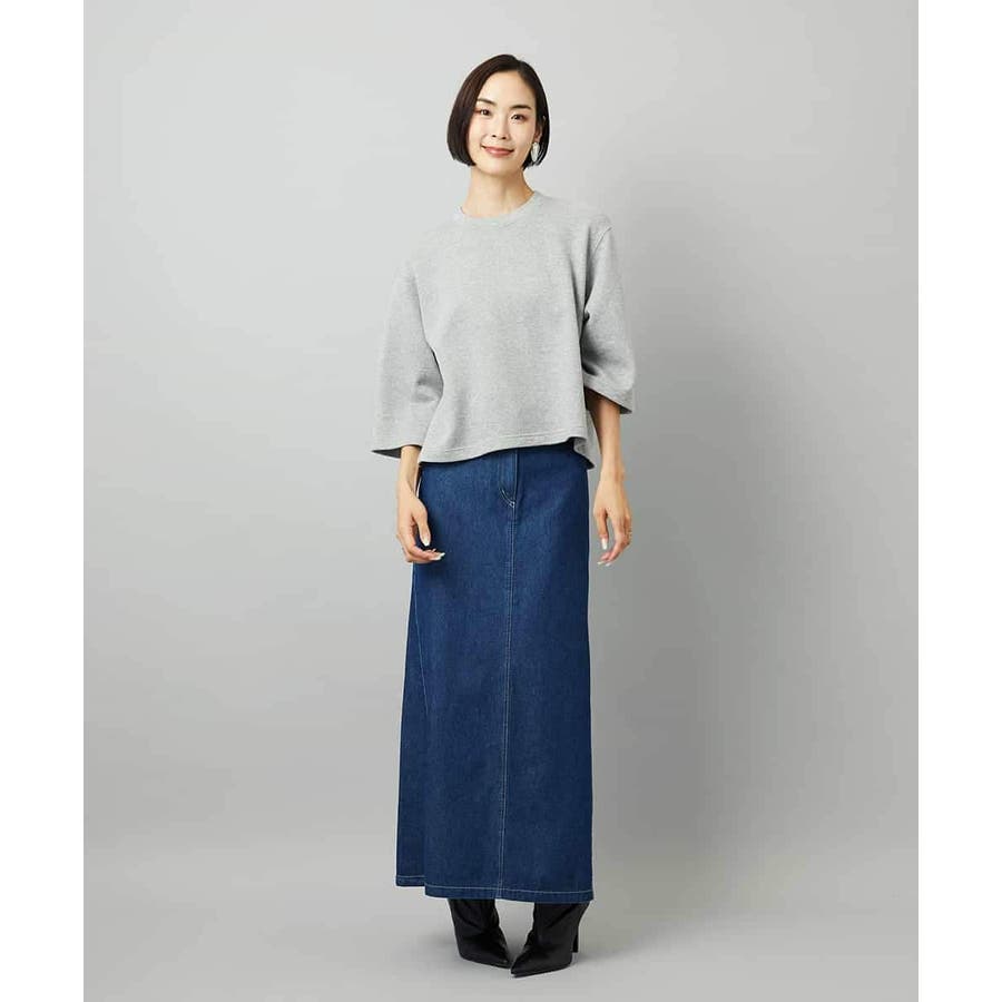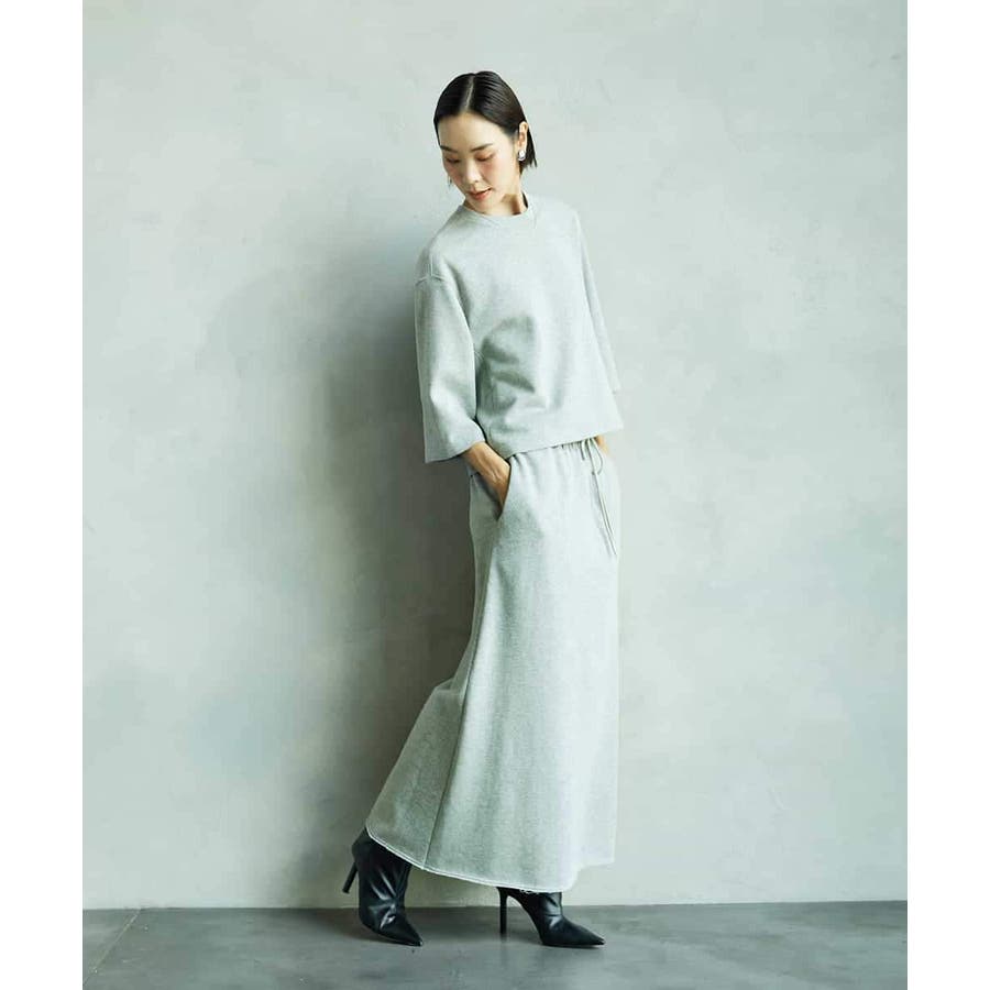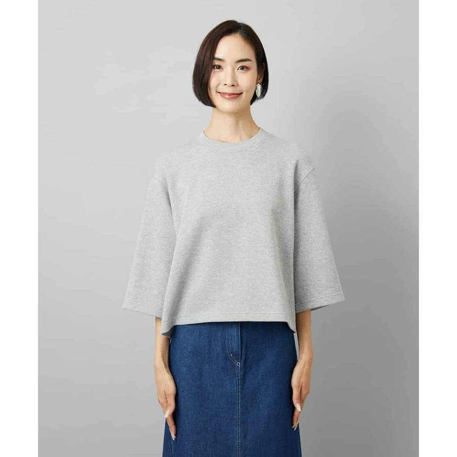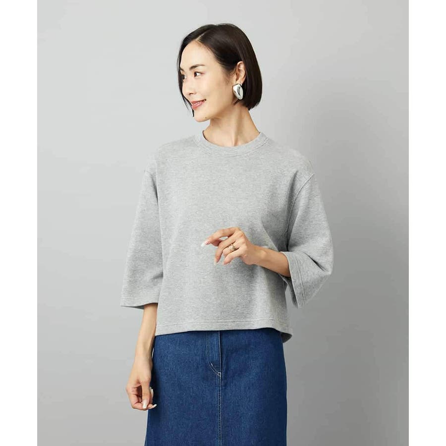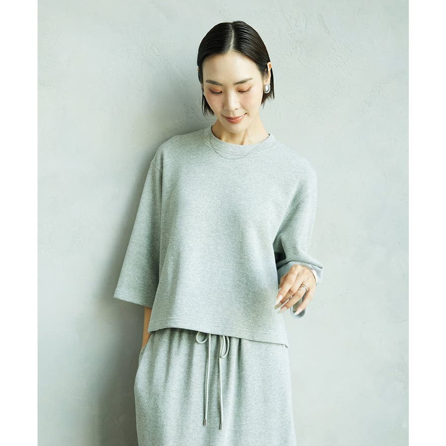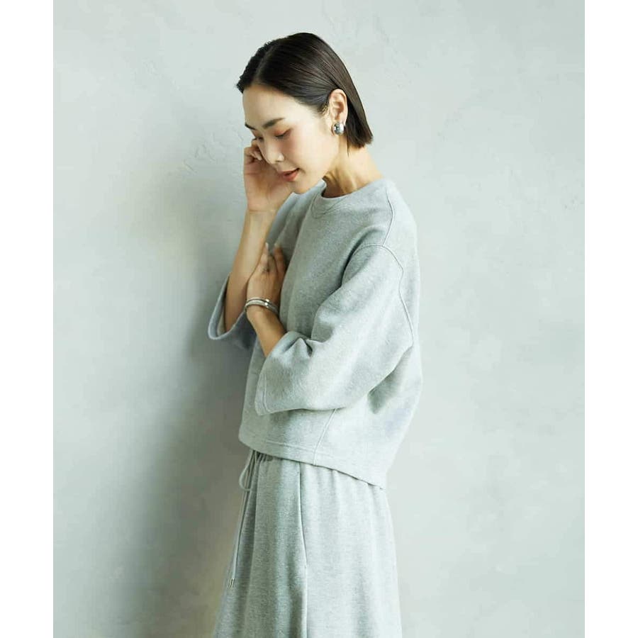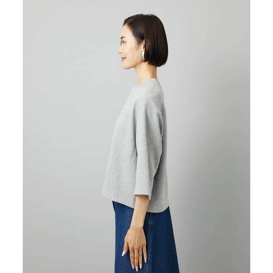 ラメ入り裏毛でカジュアルを格上げしてくれるプルオーバー。オーバーサイズのシルエットは、袖口と裾をカットオフしたトレーナー風のデザインで、半端丈の軽やかなバランスがTシャツ感覚で着られます。