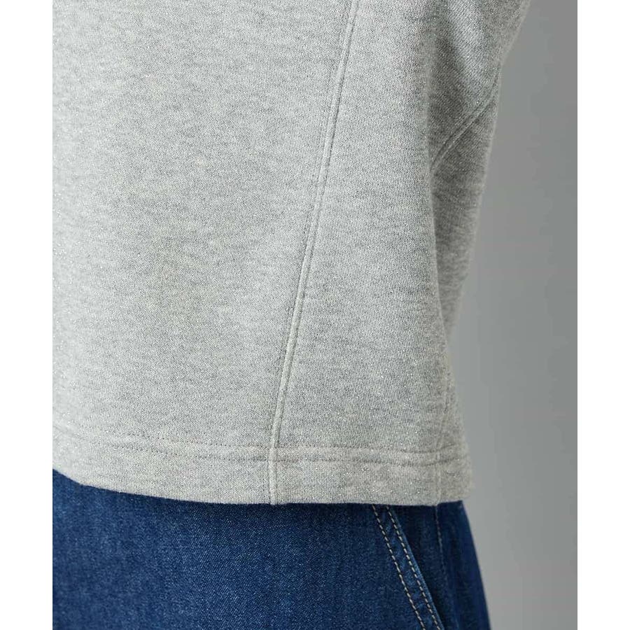 ラメ糸をさりげなく編み込んだ国産の裏毛素材。光を受けるたびにほのかにきらめき、上品で洗練された表情を生み出します。裏側のループまで丁寧に仕立てられ、ふっくらと柔らかい風合いが、快適でリュクスな着心地を叶えます。