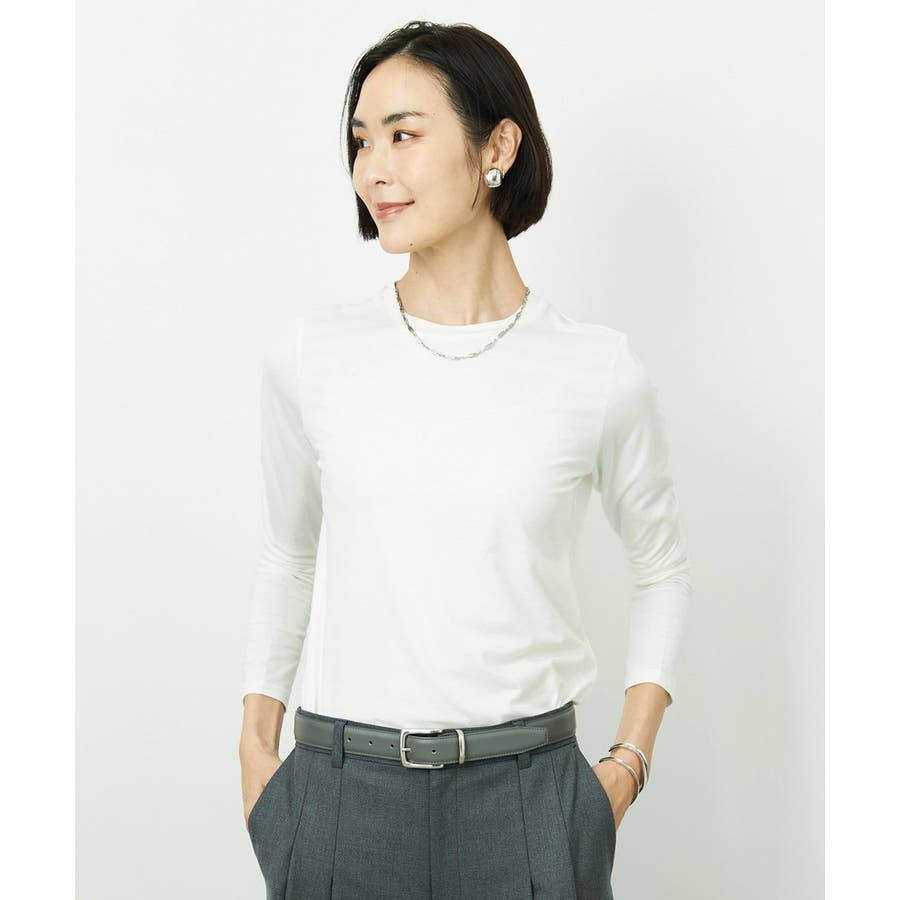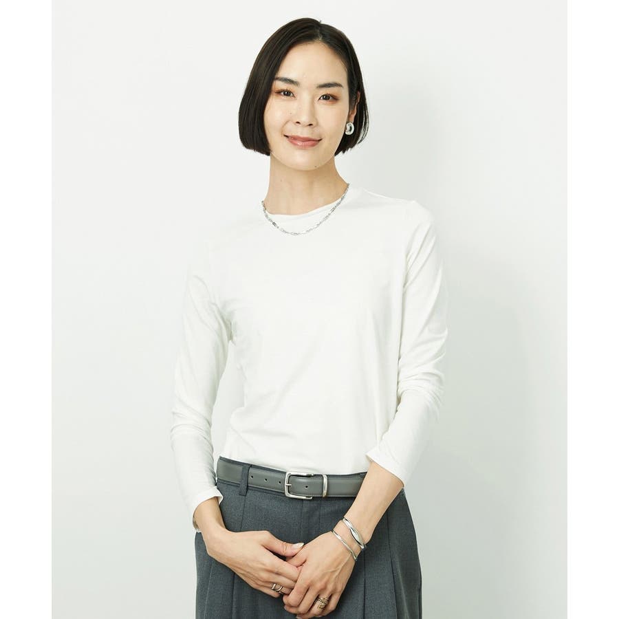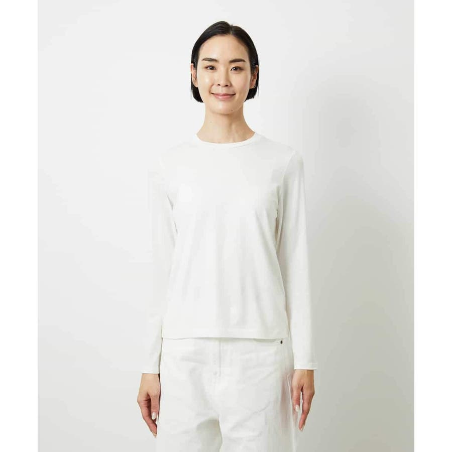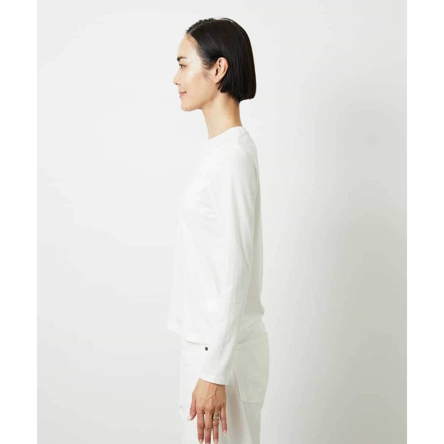 コットンリヨセルの薄手ストレッチ素材を使用した長袖Tシャツ。ほどよく体にフィットするので、冬のニットやスウェットのインナーとしても重ねやすく、レイヤードスタイルにぴったりです。衿元や裾を少し見せるだけで、さりげなくおしゃれな印象に。シンプルながら着心地の良さと上品さを兼ね備えた、一枚あると重宝するベーシックアイテムです。40サイズは限定店舗展開です。