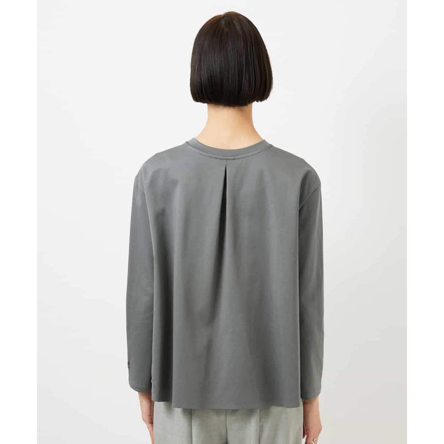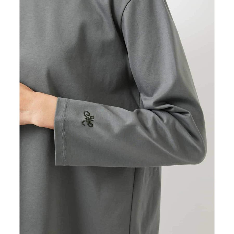 程よい厚みのあるポンチ素材を使用したデザインカットソー。インナーとしても使いやすく、バックにフレアを入れることで一枚着でも表情のあるデザインに仕上げています。袖口には、さりげなくアクセントになるイニシャル刺繍が施されています。40サイズは限定店舗展開です。