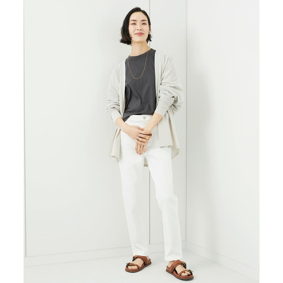 シンプルなデザインでカジュアルにもきれいめにも着こなせる汎用性の高さが魅力。フレアスカートやきれいめワイドパンツをあわせてオフィスシーンに、プリントスカートやデニムパンツを合わせたカジュアルスタイルもおすすめ。同デザインのボーダー柄[FMKGA10140]もご用意しております。