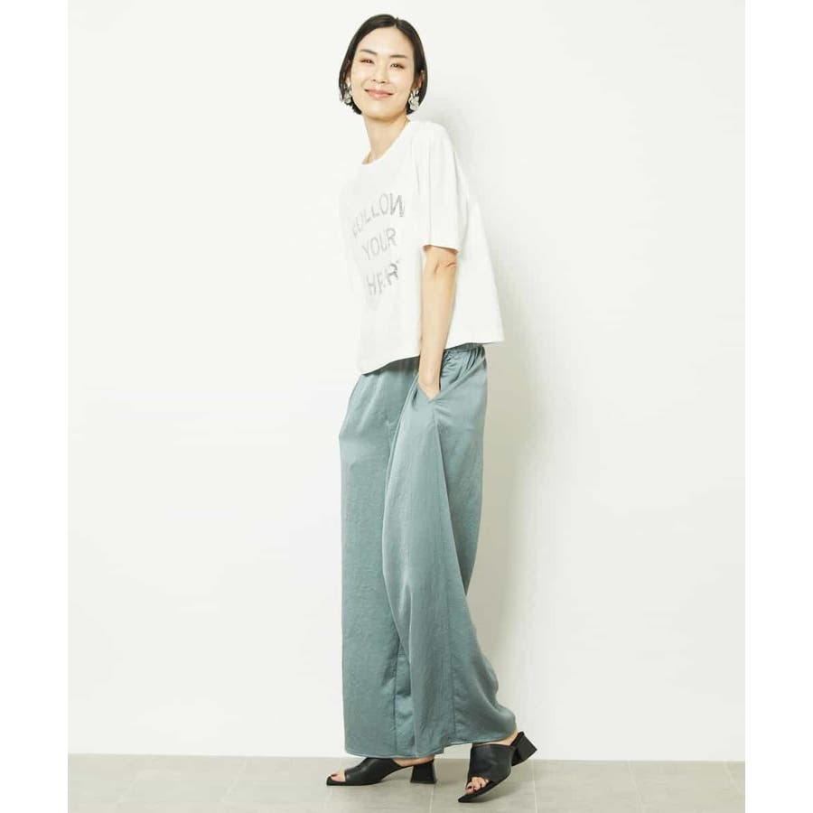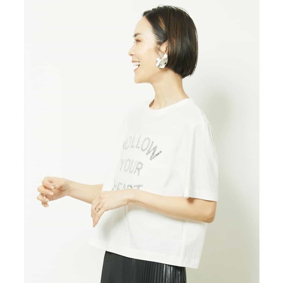 ロゴを裏からプリントしてプリント部分が杢調に見せるテクニックのTシャツ。通常のロゴTと違い主張せず大人っぽく仕上げました。ロゴの意味は「あなたの心の思う方向へ進もう」変わりゆくライフスタイルのなかでミッシェルクランからのひっそりとしたメッセージです。二の腕がカバーできるすこし長めの袖感もうれしいポイント。40サイズは限定店舗展開です。
