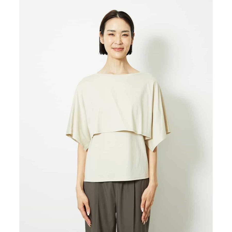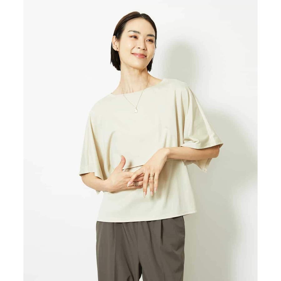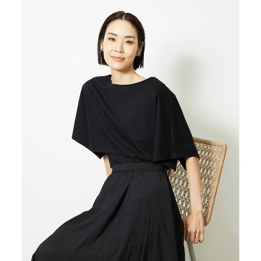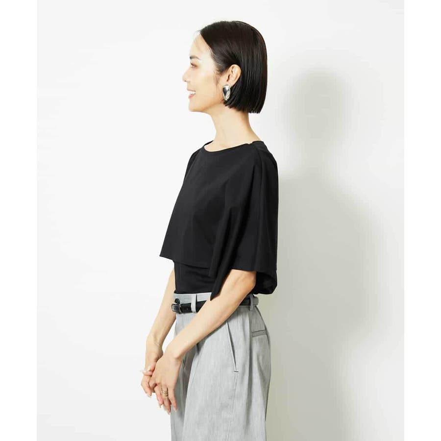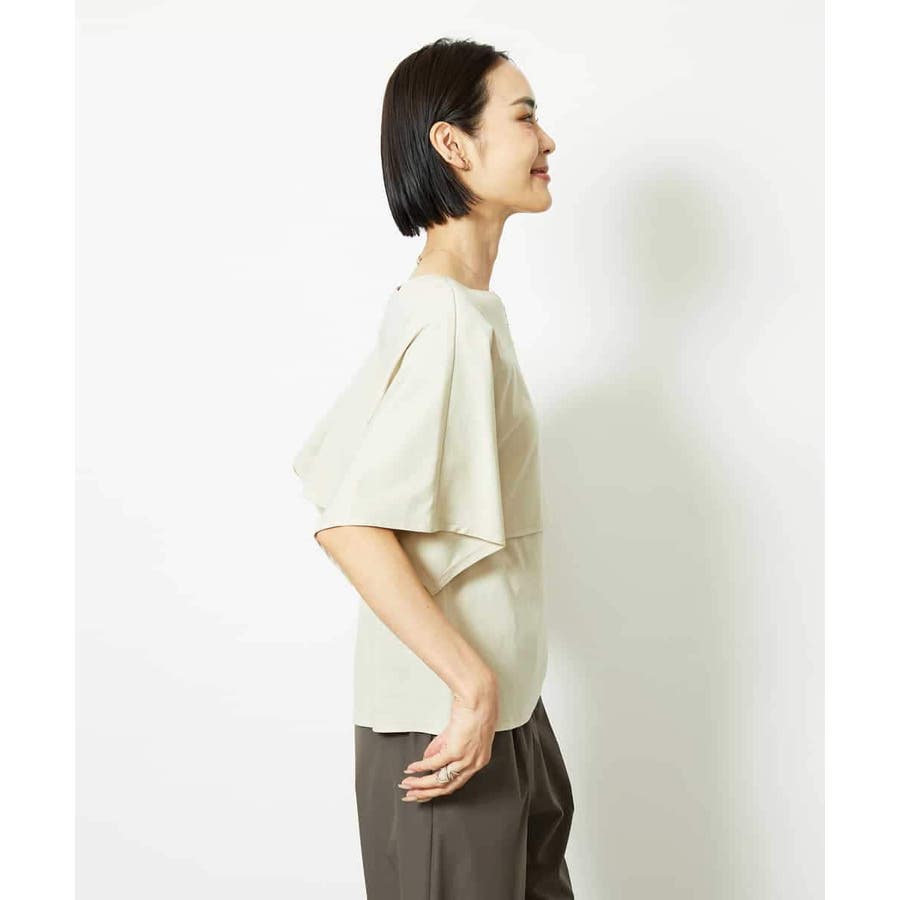 動きのあるケープ風スリーブが、さりげなく二の腕をカバーしてくれるデザインカットソー。パンツと合わせるときは裾をアウトでリラックス感を、スカートと合わせるときはインにしてレディライクな着こなしがおすすめ。一枚で着映えもスタイルアップが叶う、主役トップスです。