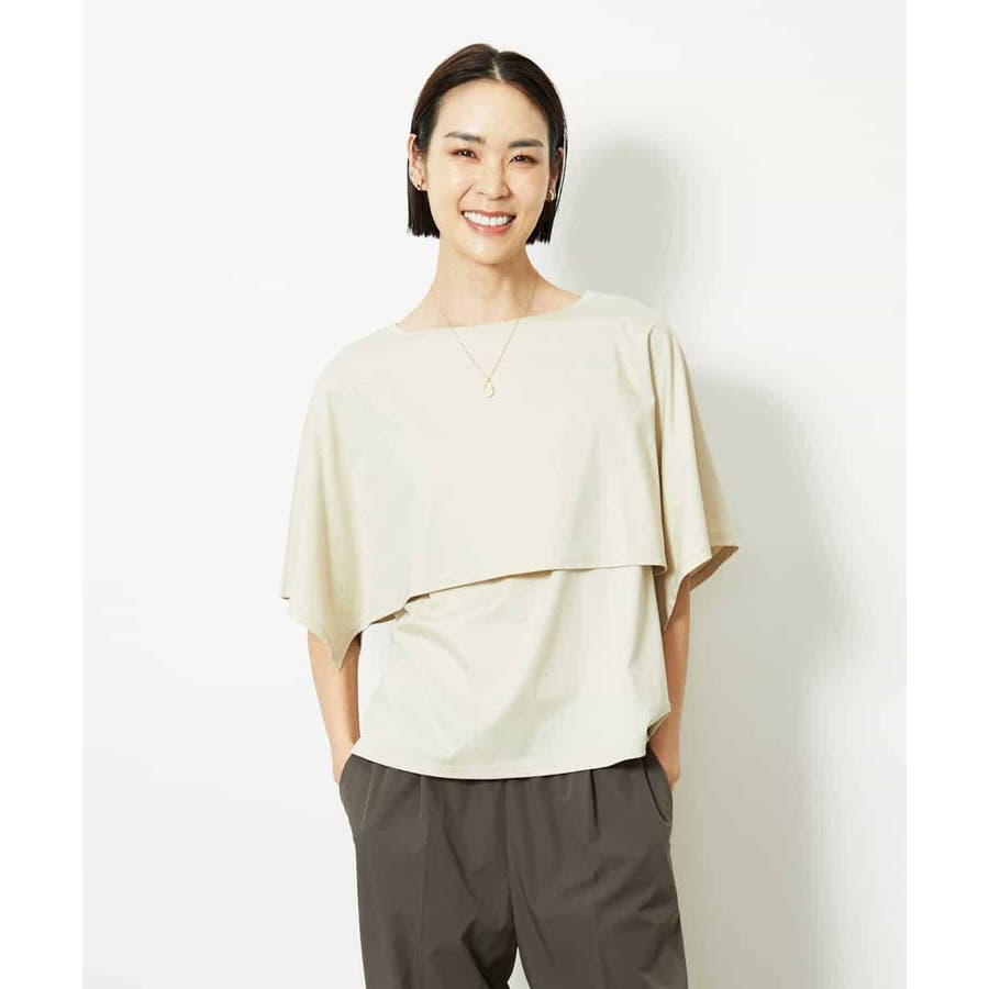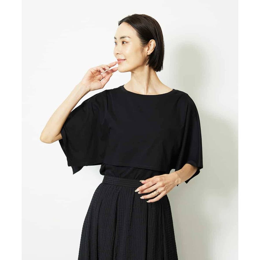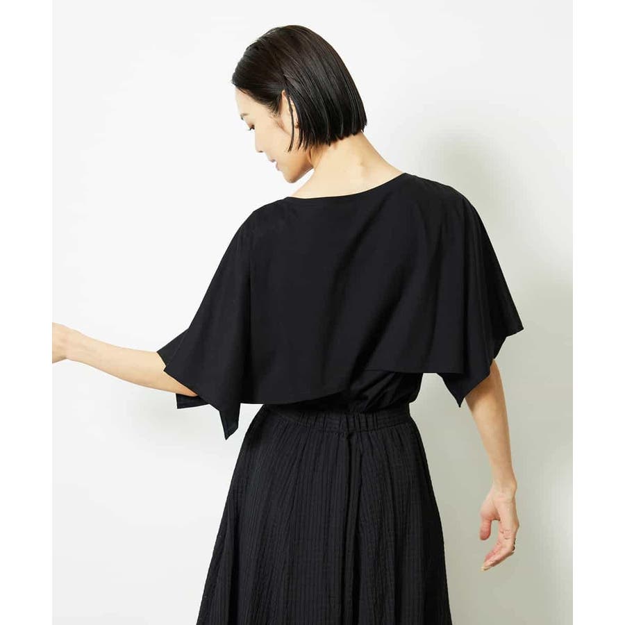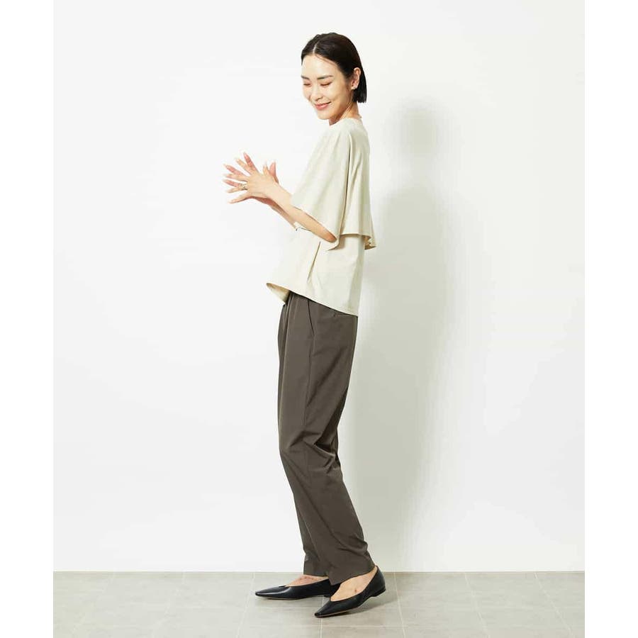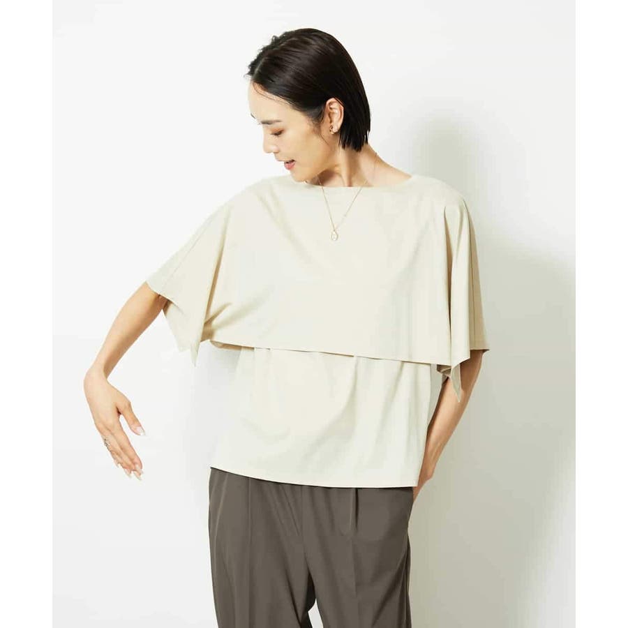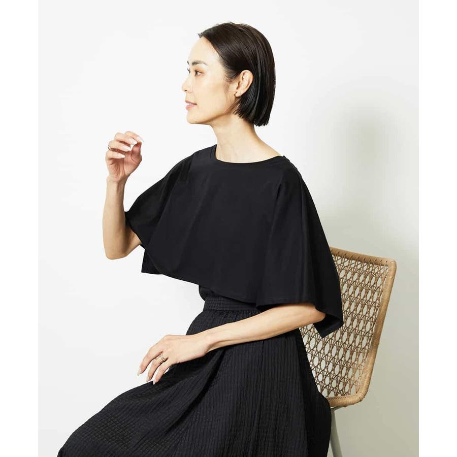 動きのあるケープ風スリーブが、さりげなく二の腕をカバーしてくれるデザインカットソー。パンツと合わせるときは裾をアウトでリラックス感を、スカートと合わせるときはインにしてレディライクな着こなしがおすすめ。一枚で着映えもスタイルアップが叶う、主役トップスです。