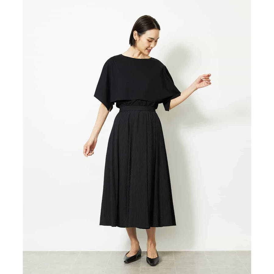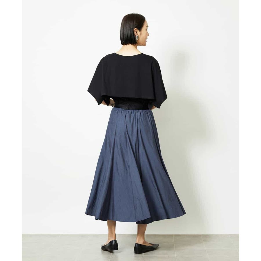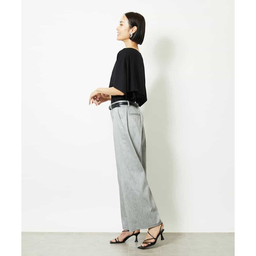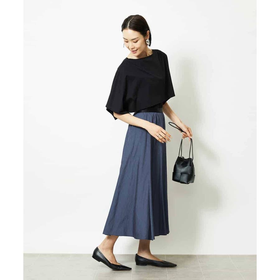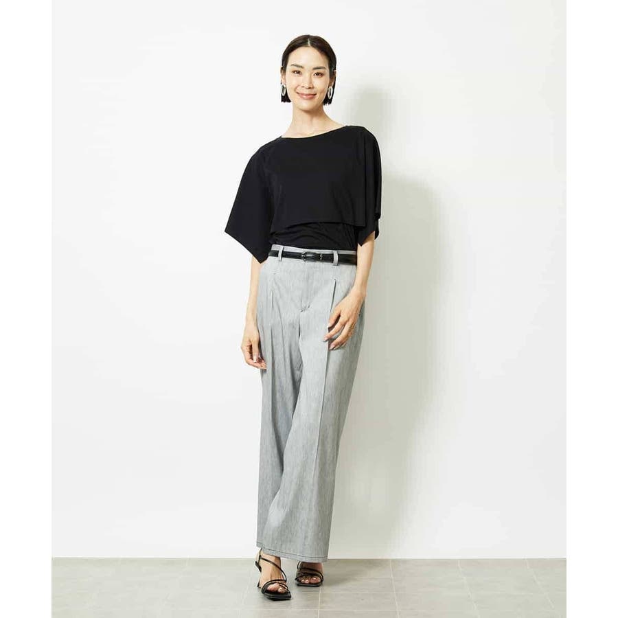 動きのあるケープ風スリーブが、さりげなく二の腕をカバーしてくれるデザインカットソー。パンツと合わせるときは裾をアウトでリラックス感を、スカートと合わせるときはインにしてレディライクな着こなしがおすすめ。一枚で着映えもスタイルアップが叶う、主役トップスです。