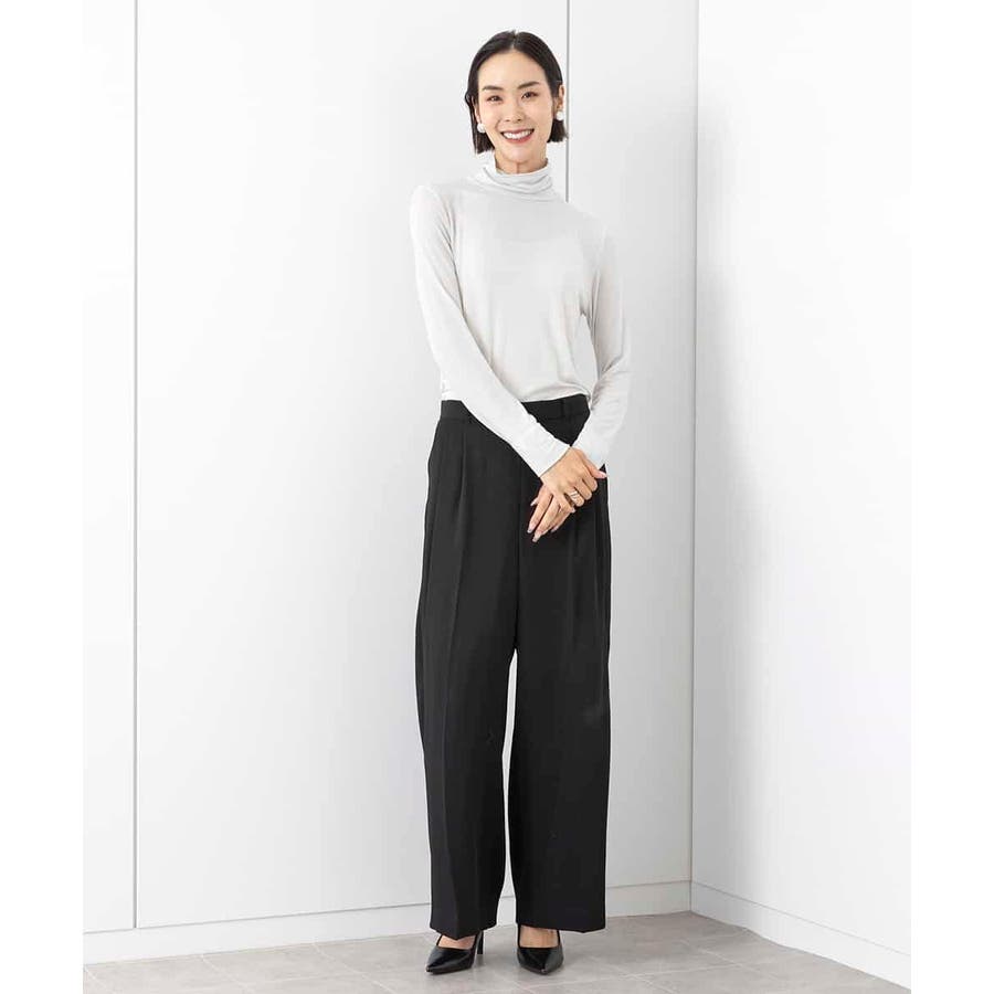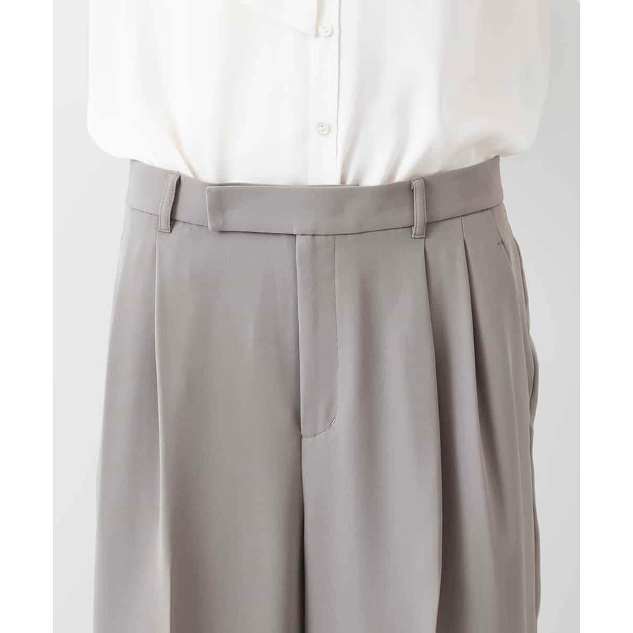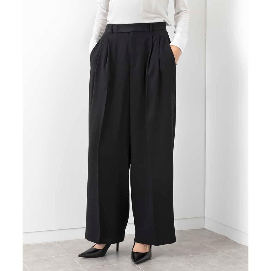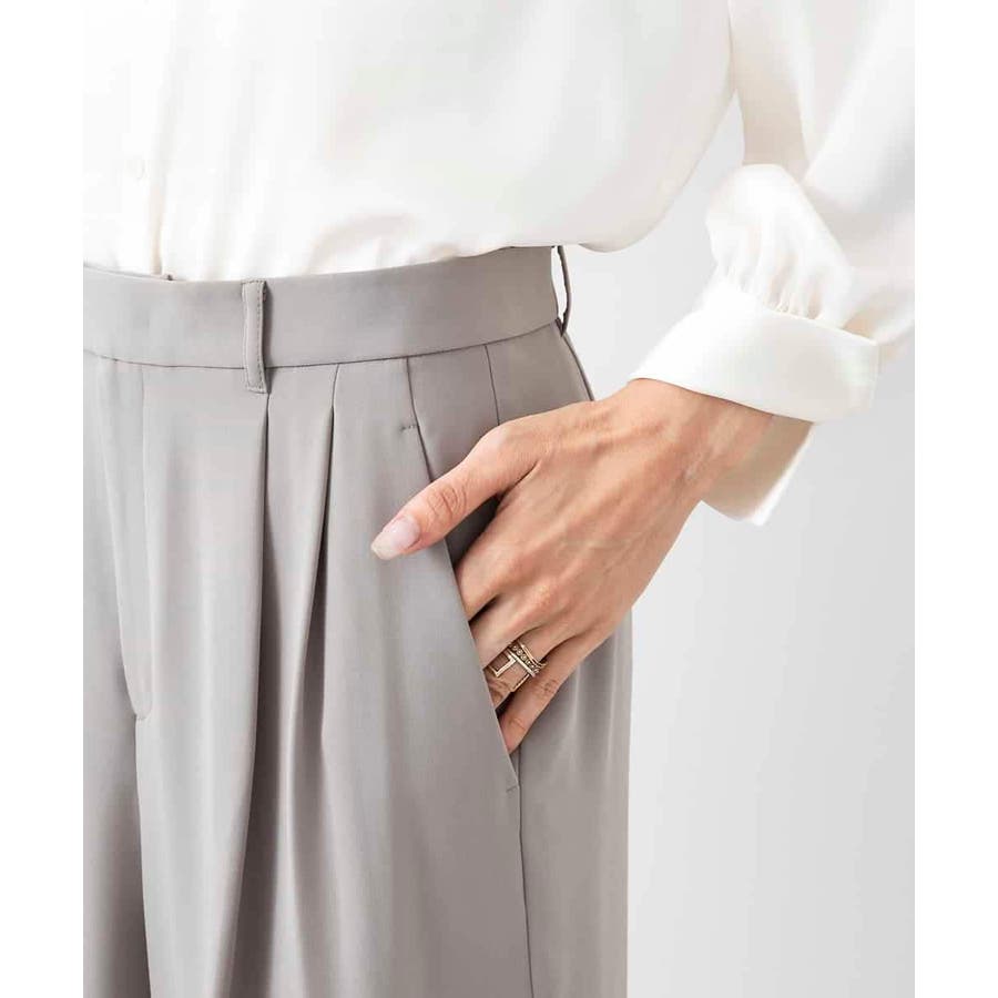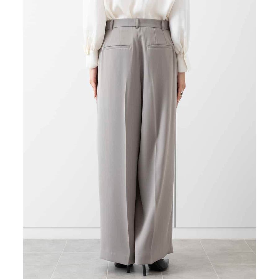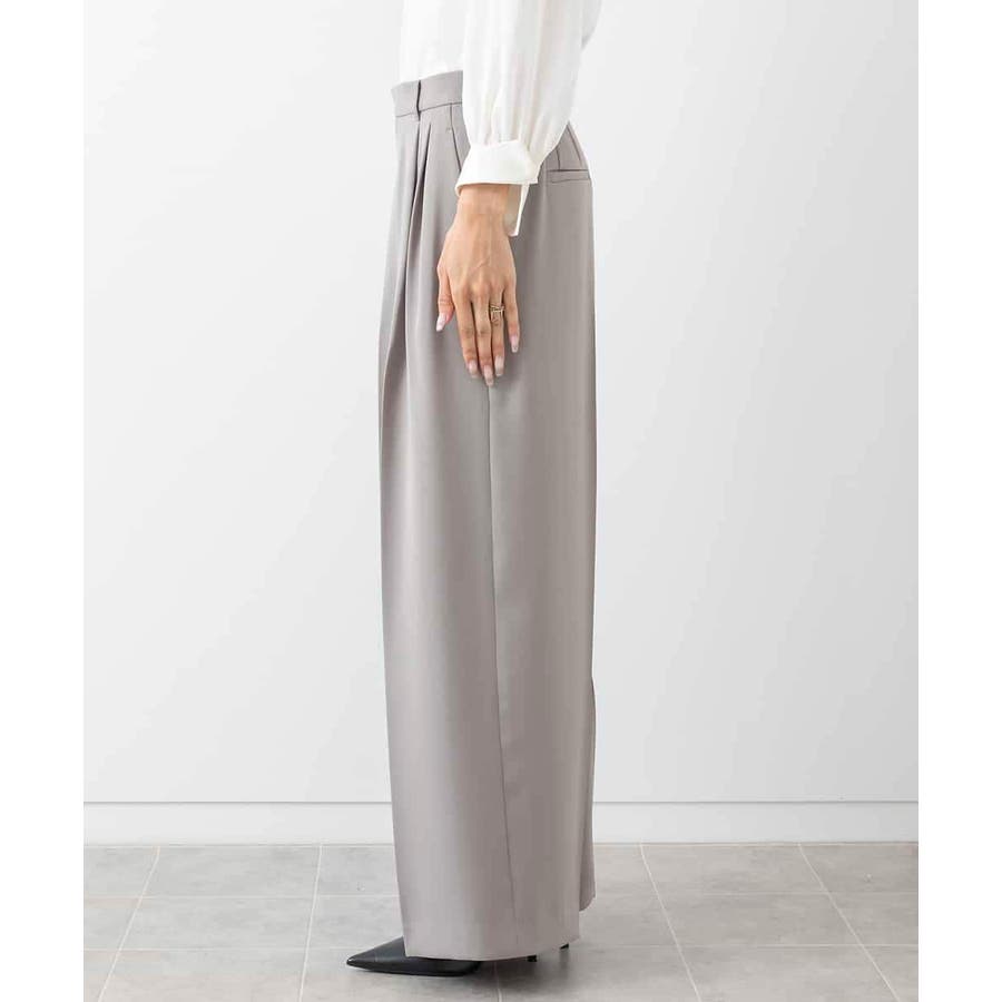 素材のしなやかな落ち感を活かしたワイドパンツ。タック分量は抑えめに、すっきりとしたシルエットが特徴です。2本タックのワイド型で少し落として腰で履く設定になっており、腰回りの丸みが目立ちません。40サイズは限定店舗展開です。