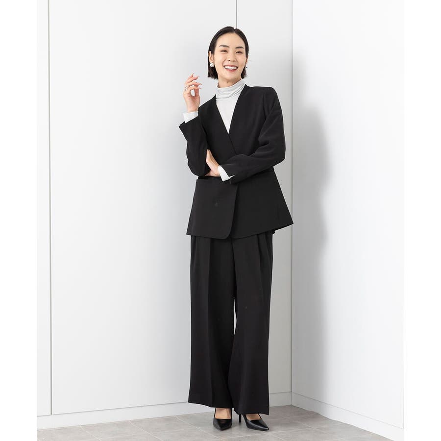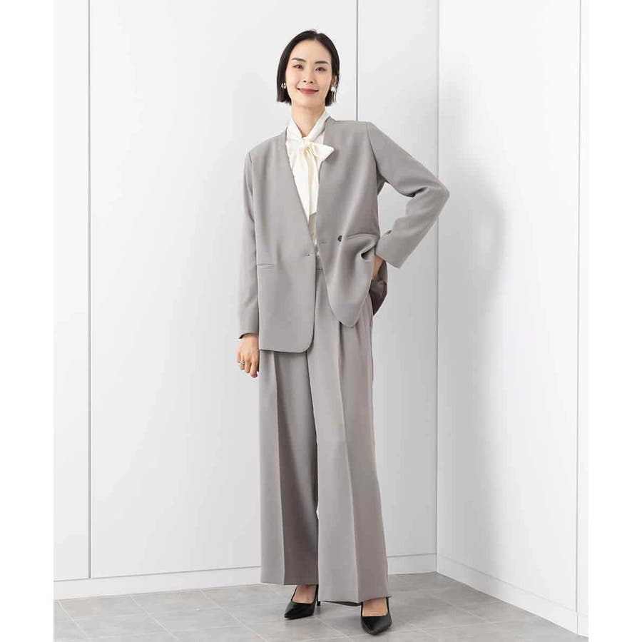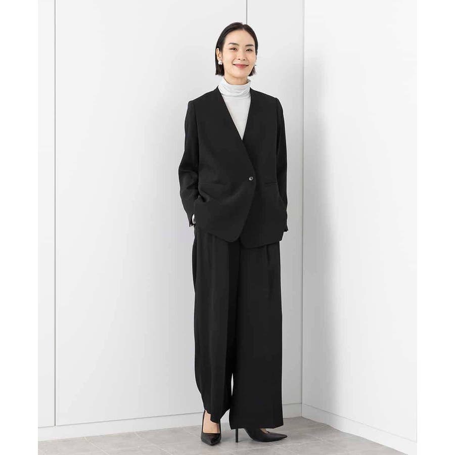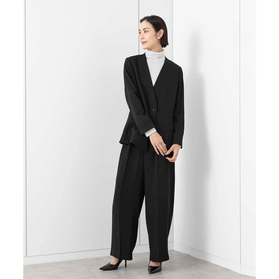 同素材ノーカラージャケット[FMDAA02380]とセットアップで着用するのにベストマッチなデザイン設定。シンプルな美脚パンツはオンシーンに単品使いもおすすめです。同素材ワンピース[FMEAA02360]もご用意いたしております。