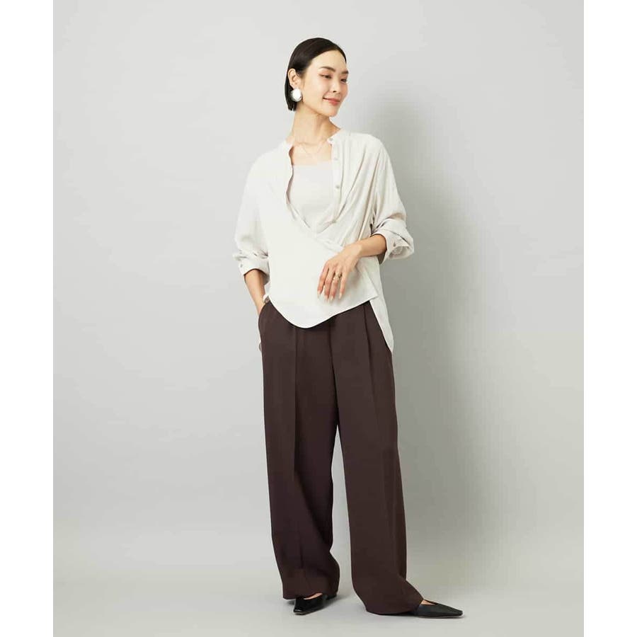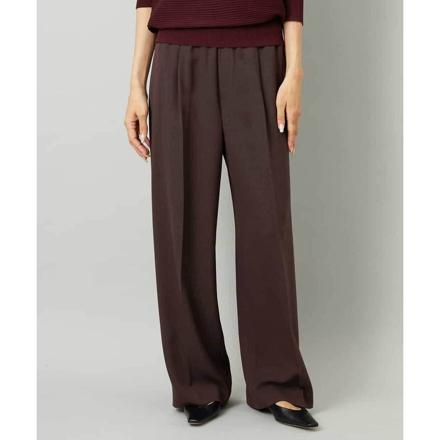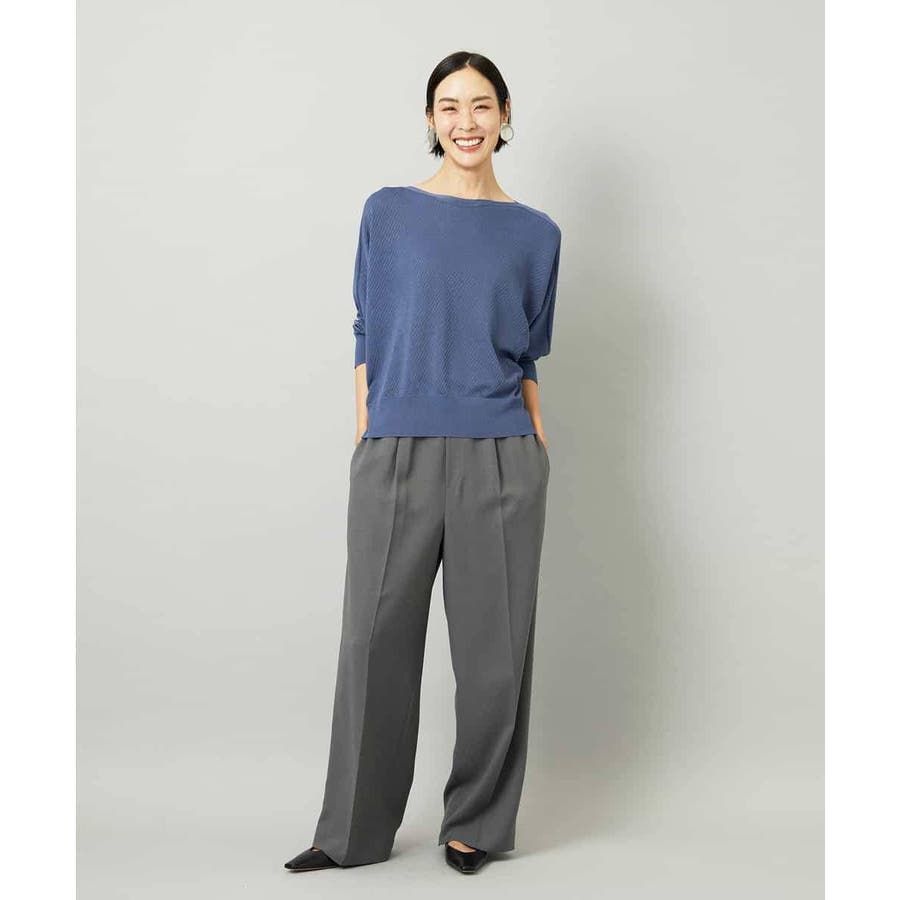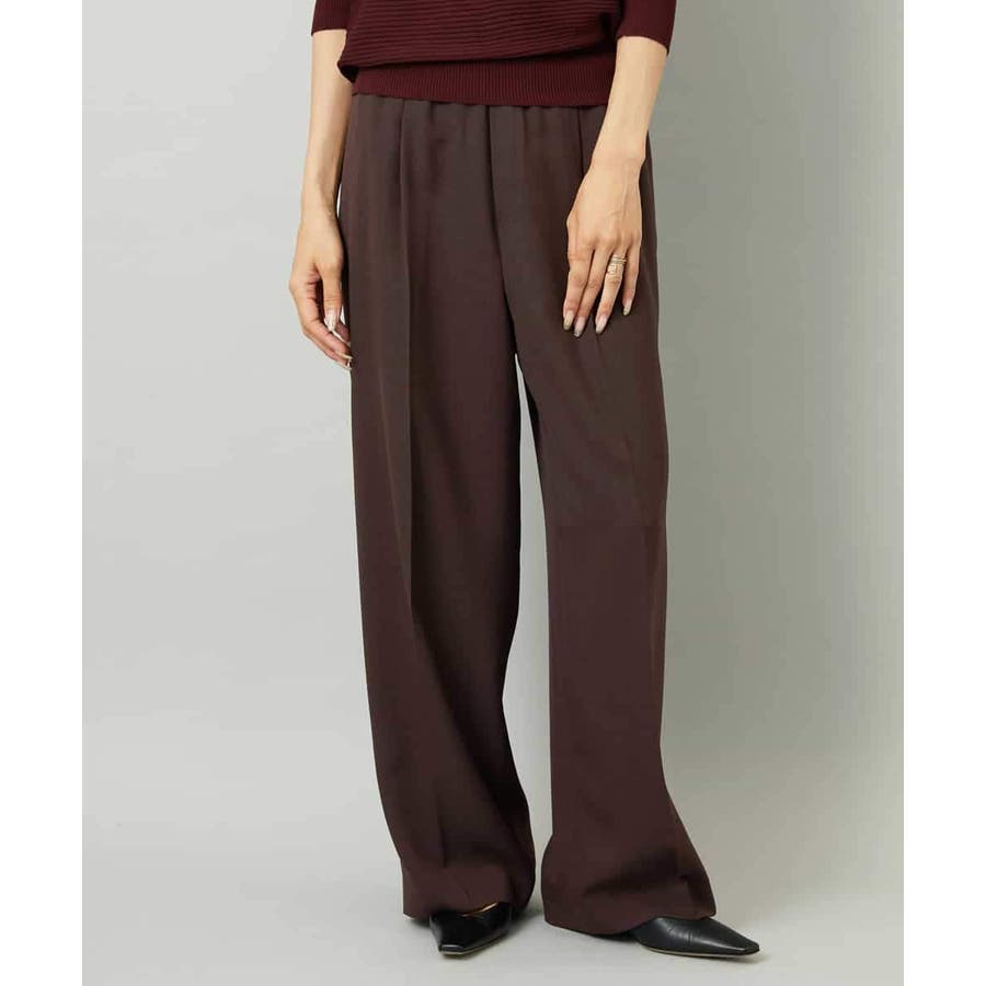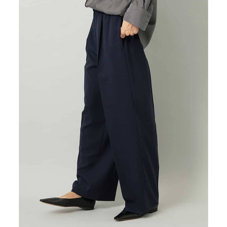 コージーな穿き心地ながらも、きちんと感のある表情でオフィススタイルに最適なワイドパンツ。Tシャツやスウェットを合わせれば大人カジュアルに、ブラウスやジャケットと合わせればきれいめにと、様々なシーンで活躍します。リラクシーさときれい見えを兼ね備えた、汎用性の高い一本です。