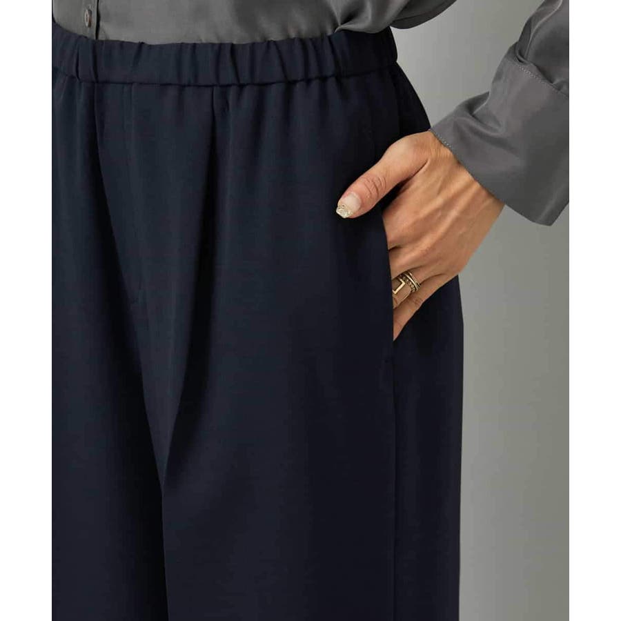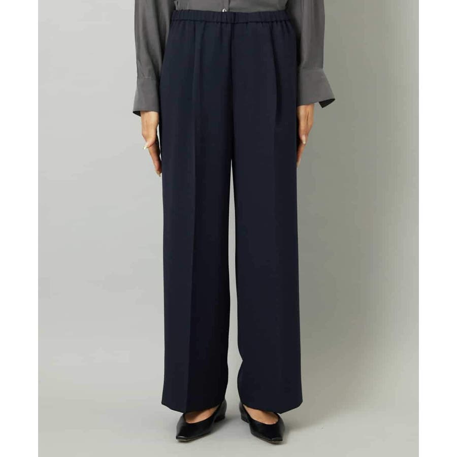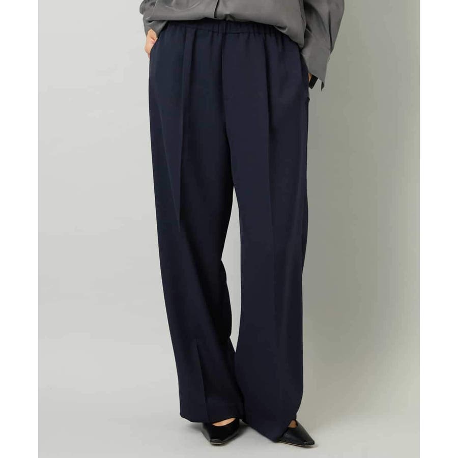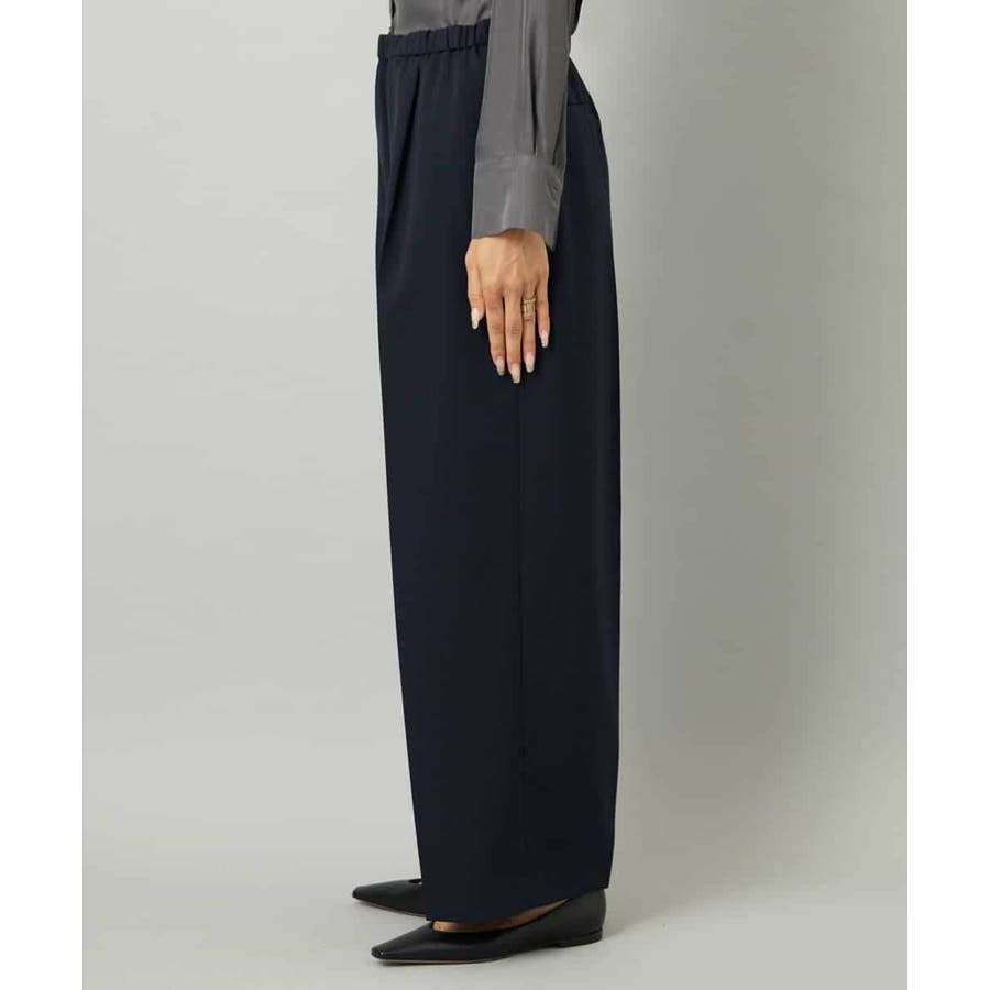 素材の特性を活かした、さらっとした風合いと程よい落ち感が特徴のワイドパンツ。プルオン仕様にドローストリングを備え、イージーな着用感とサイズ調整を両立。ストレートに近いすっきりとしたワイドシルエットで、きちんと感とコンフォートを兼ね備え、デイリーからオフィスまで幅広く活躍します。36・40サイズは限定店舗展開です。