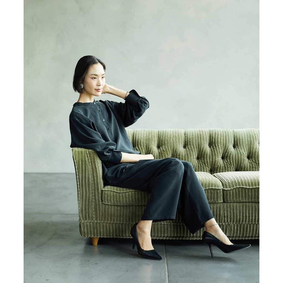 同素材のブラウスとのセットアップがおすすめです。