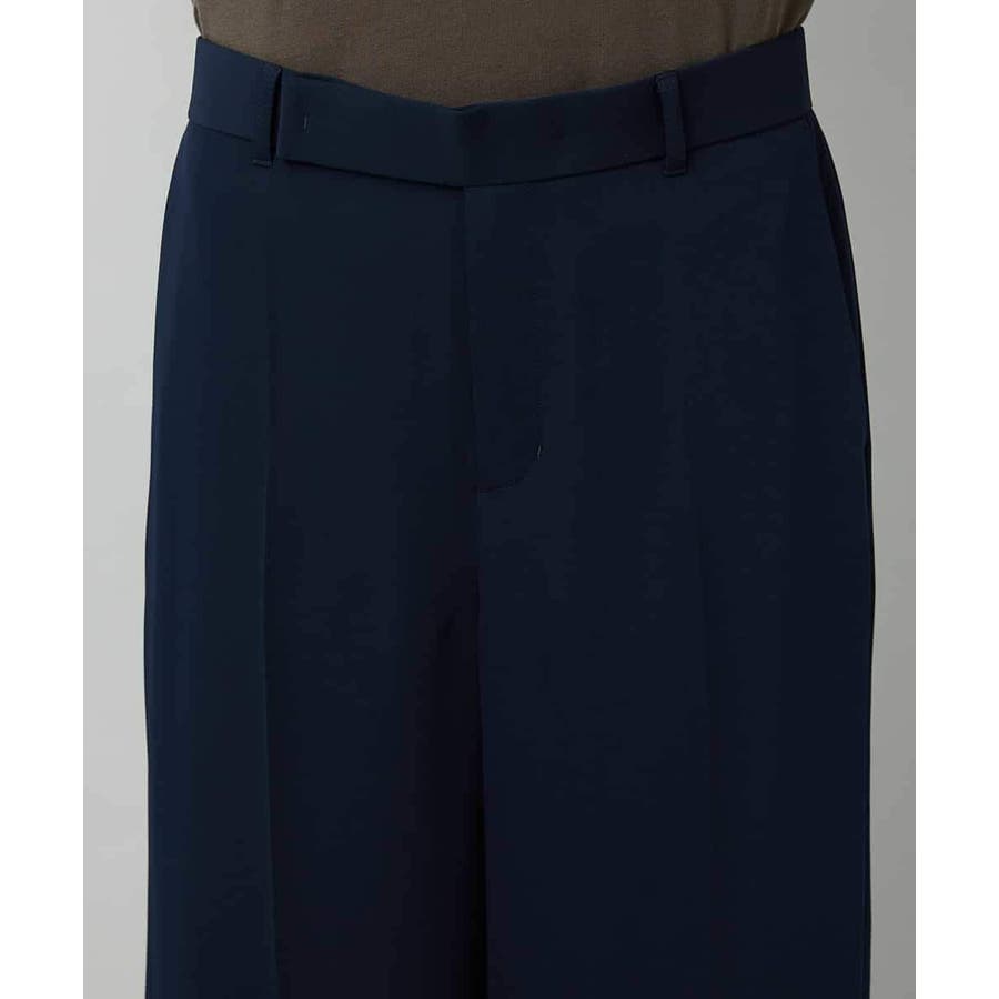 落ち感のある素材を使用したワイドパンツ。ゆったりとしたサイズ感でも、素材の落ち感により着用時のシルエットが美しく決まります。同素材のノーカラージャケットやプルオーバーと合わせれば、セットアップとしても着回せるアイテムです。36・40サイズは限定店舗展開です。