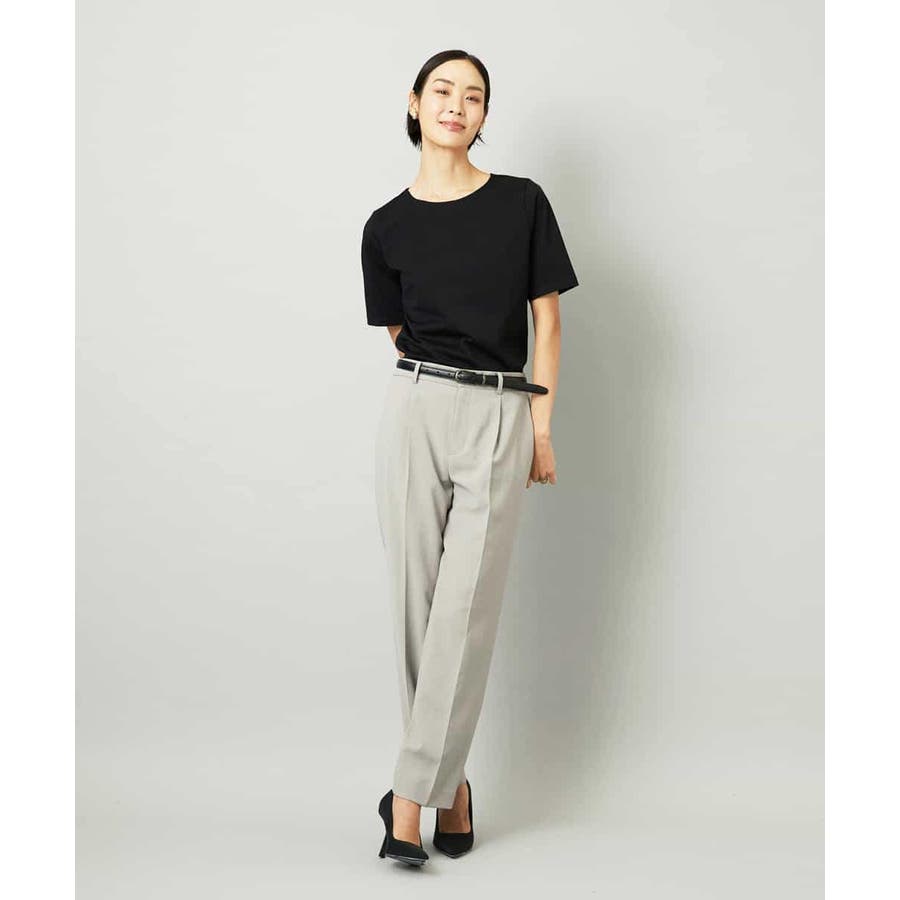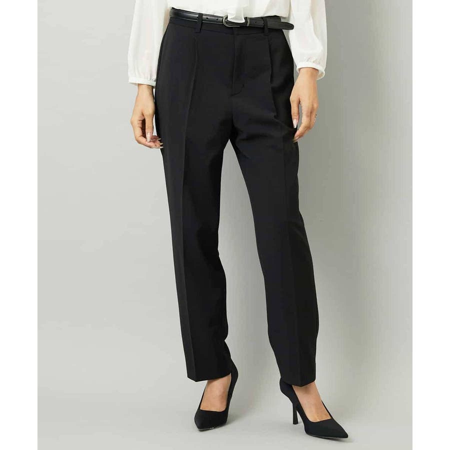 細身でスッキリとした印象に加え、センタープレスがきちんと感とスタイルアップを叶えるテーパードシルエットのパンツです。