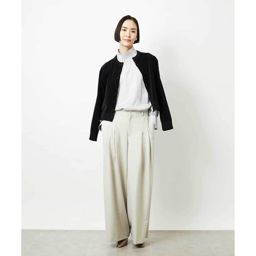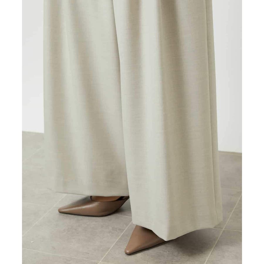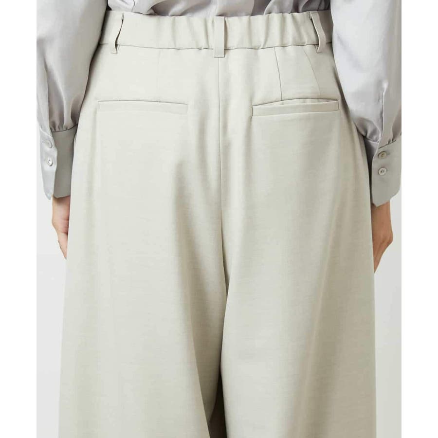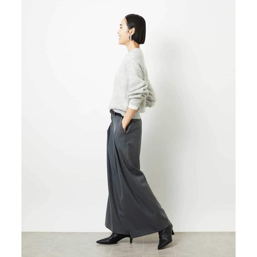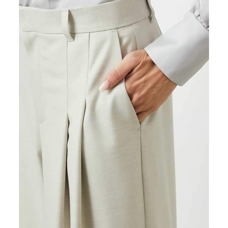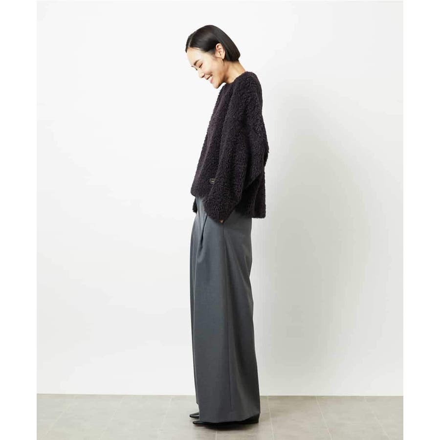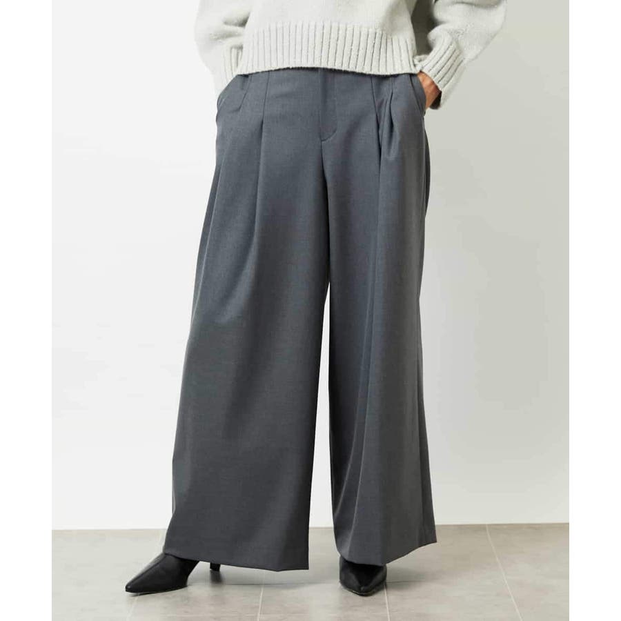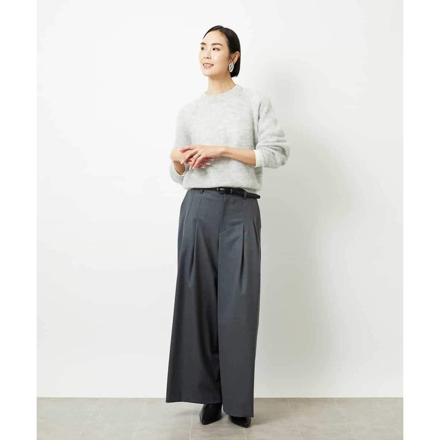 裏側は微起毛で暖かく、表面はすっきりとした素材感のワイドパンツ。縦のラインを強調するタックとセンタープレスがメリハリのあるシルエットを作り、落ち着いた印象と脚長効果を演出します。メンズパンツのようなストレートベルトデザインで、腰まわりがカービーにならずすっきり見える仕上がりになっています。36・40サイズは限定店舗展開です。