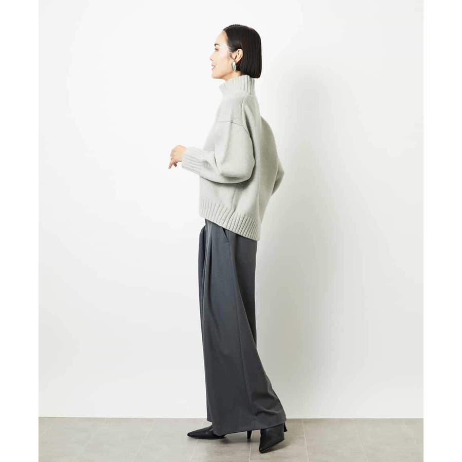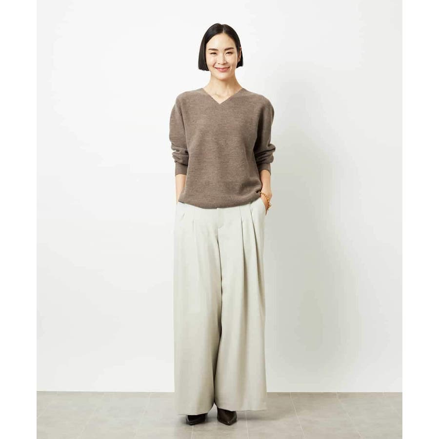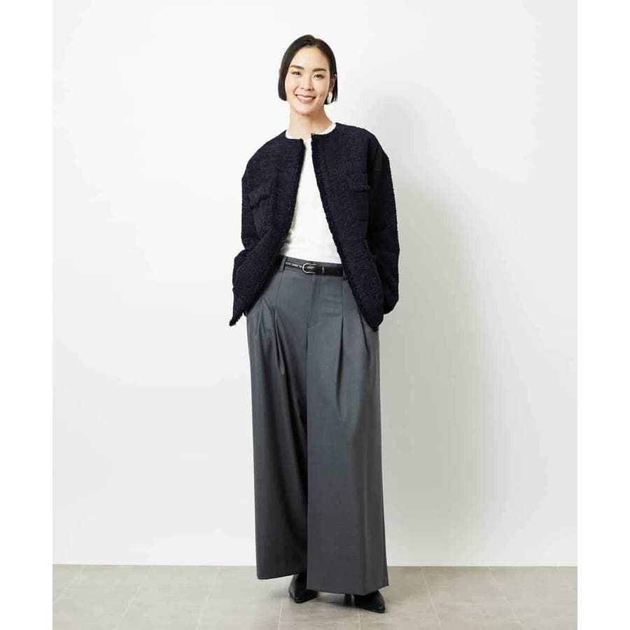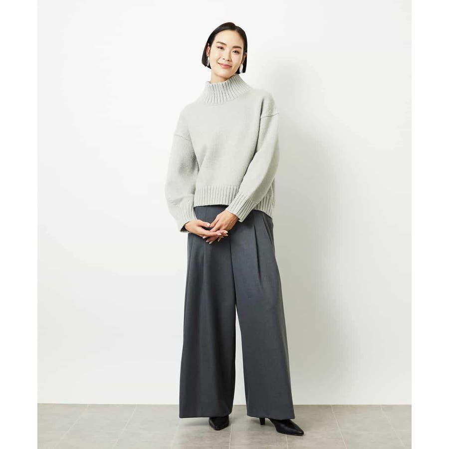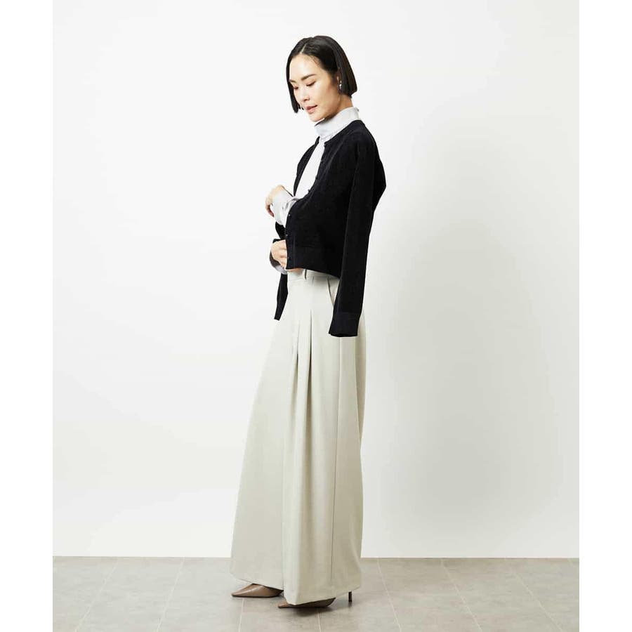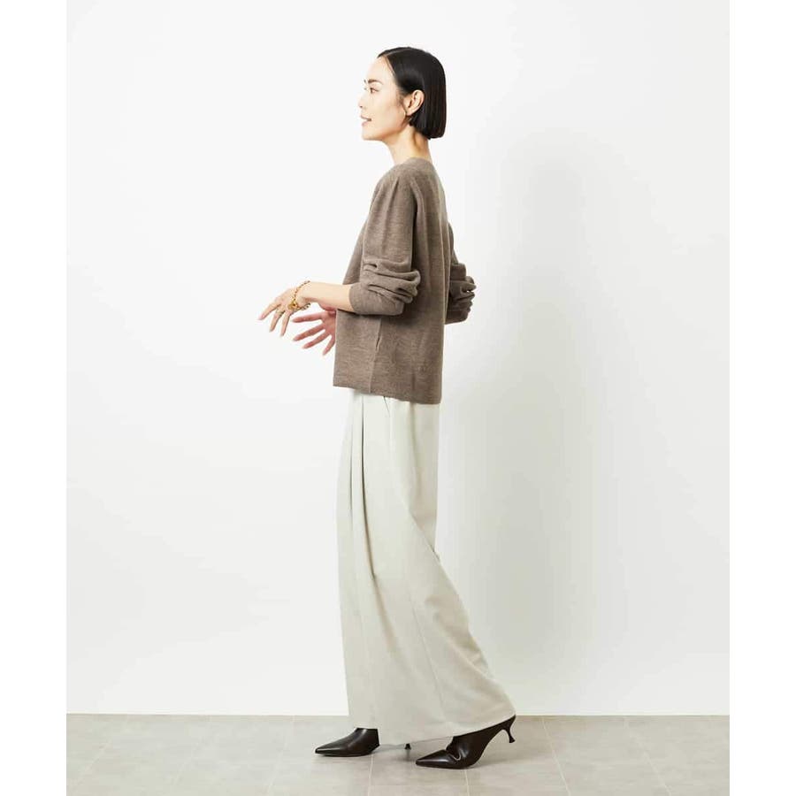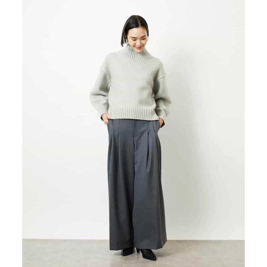 裏側は微起毛で暖かく、表面はすっきりとした素材感のワイドパンツ。縦のラインを強調するタックとセンタープレスがメリハリのあるシルエットを作り、落ち着いた印象と脚長効果を演出します。メンズパンツのようなストレートベルトデザインで、腰まわりがカービーにならずすっきり見える仕上がりになっています。36・40サイズは限定店舗展開です。