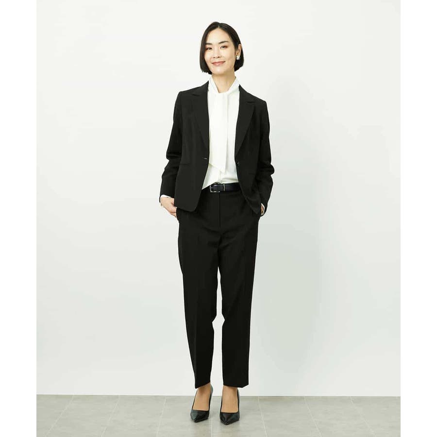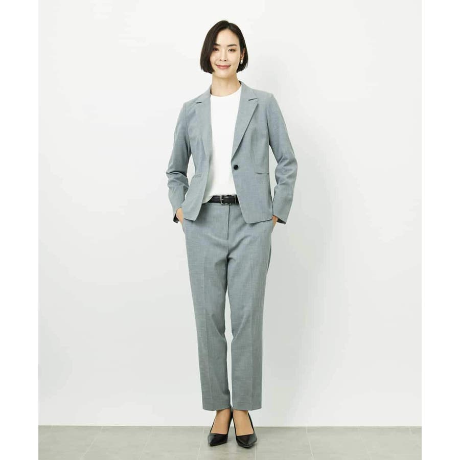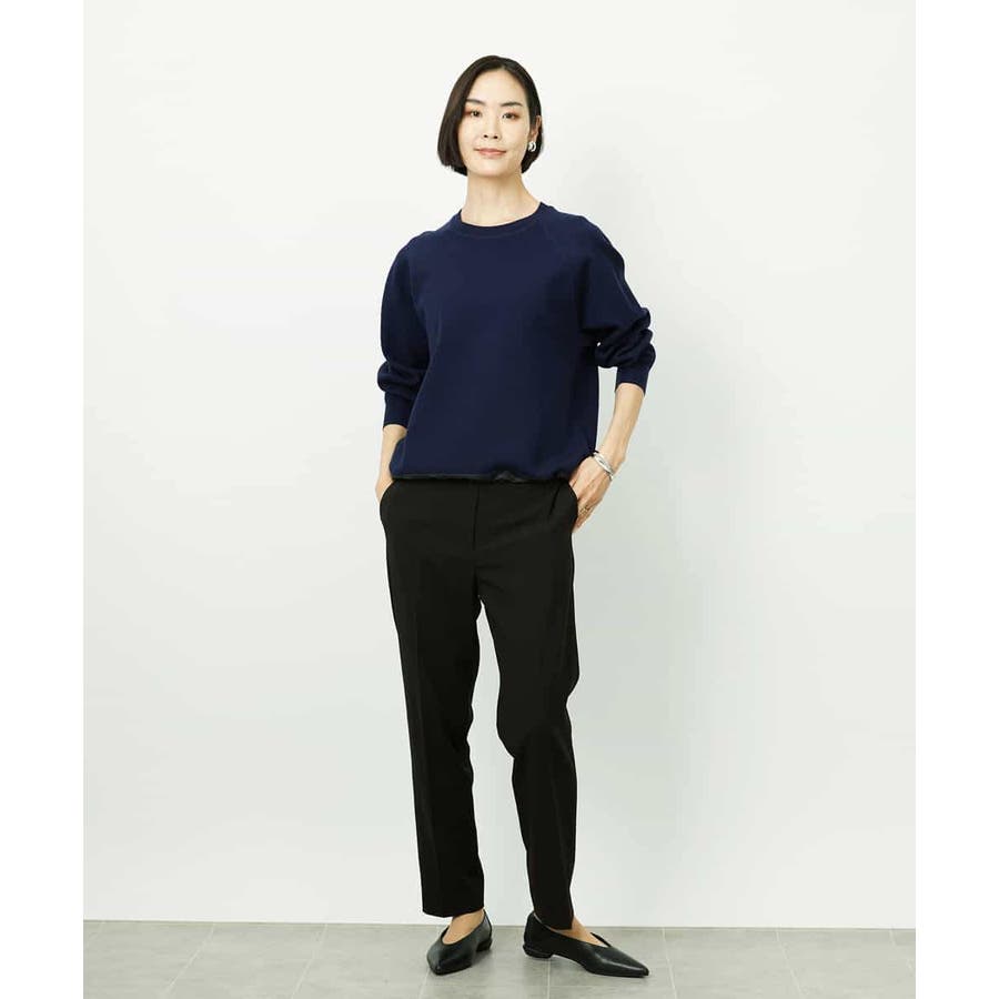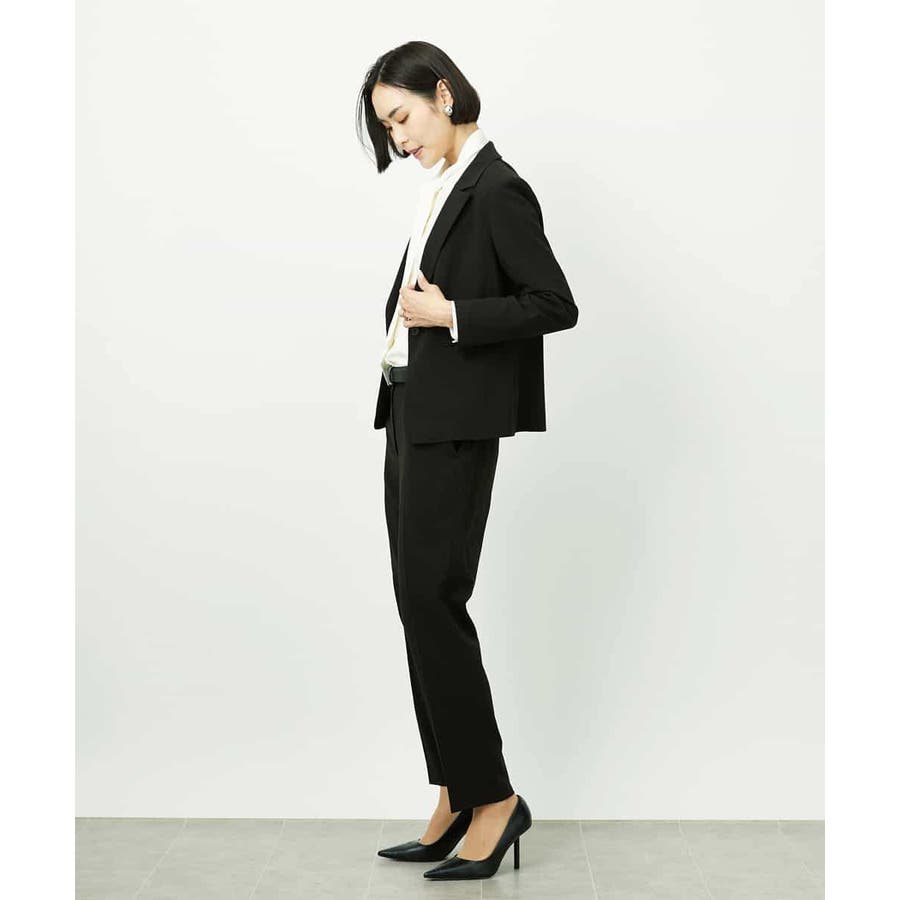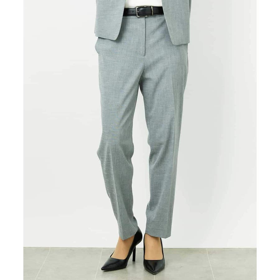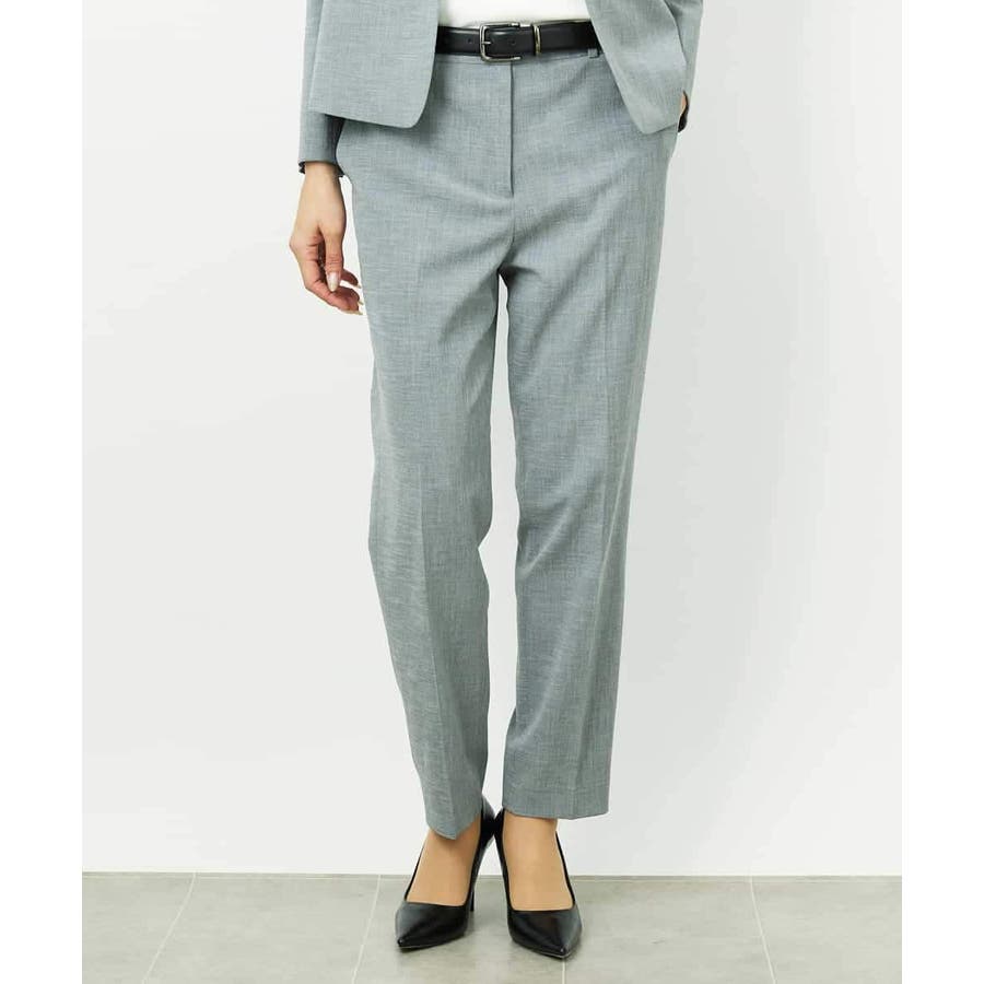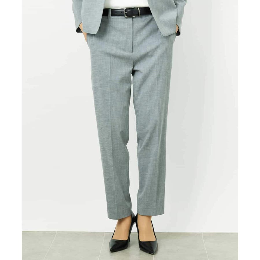 同素材のジャケットと合わせたセットアップスタイルがおすすめです。統一感のある着こなしで、より洗練された通勤スタイルになります。単品使いでもトップスを選ばず、デイリーなシンプルコーデにも自然に馴染み、パンツのの美しいシルエットが際立つ上品な印象に。