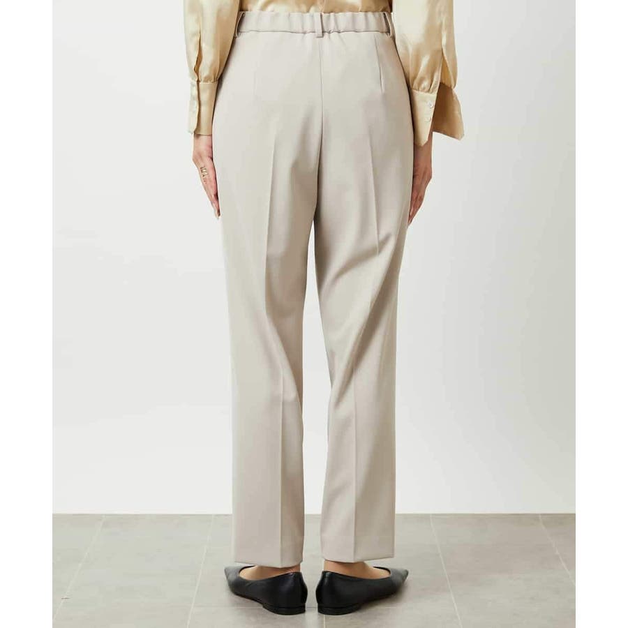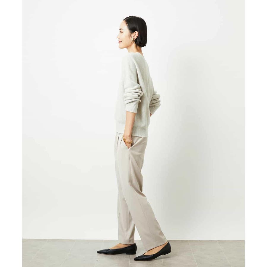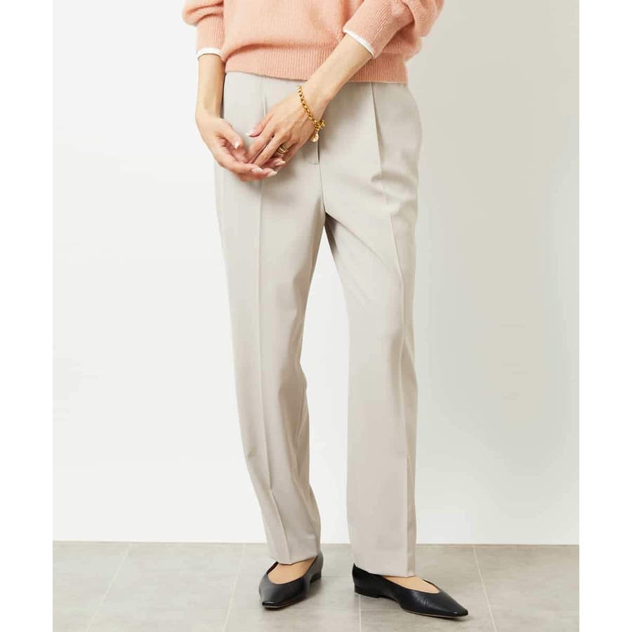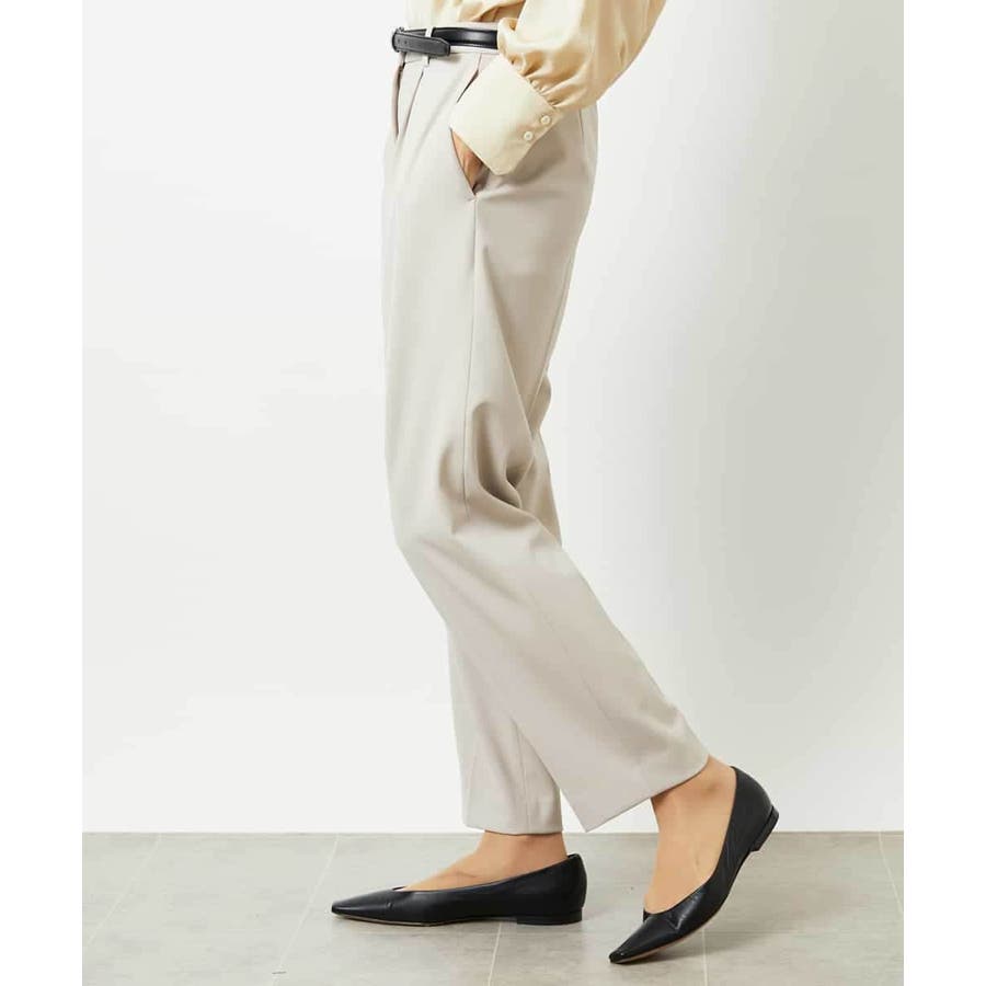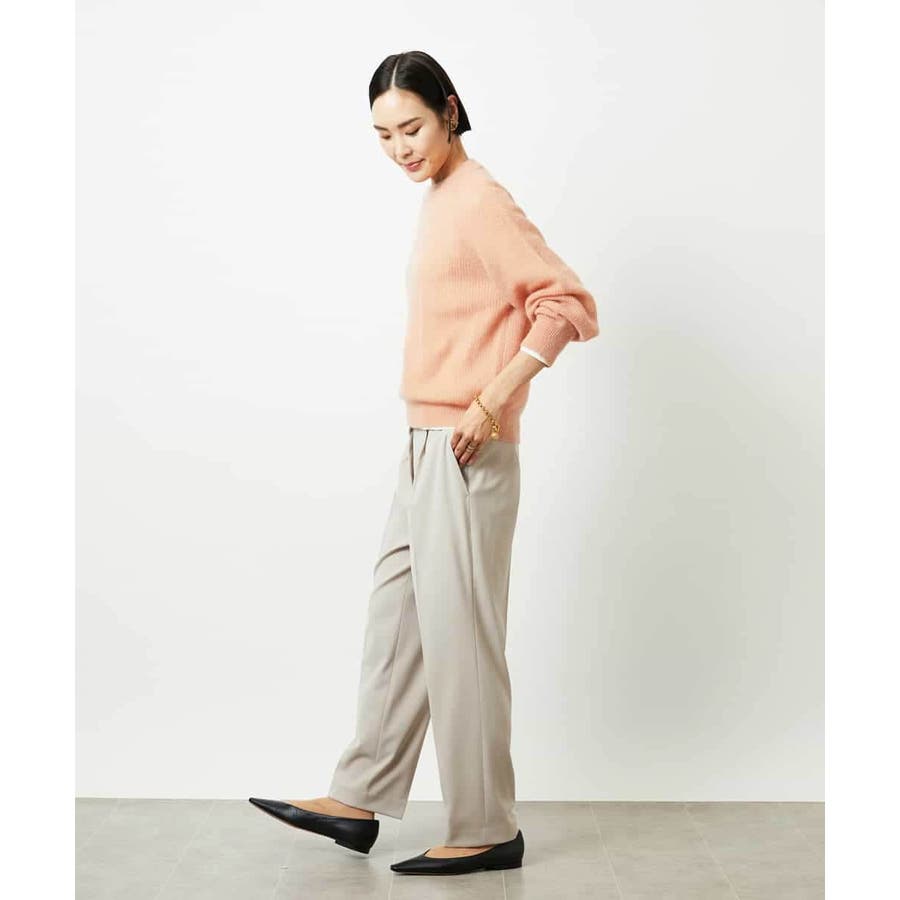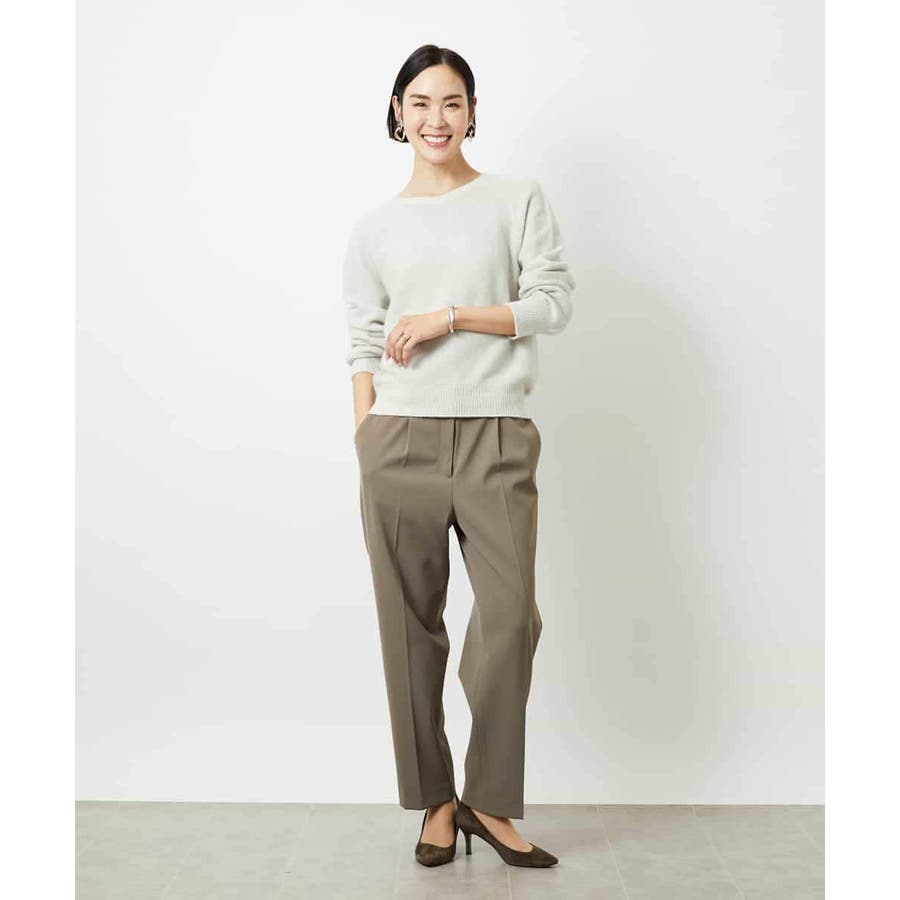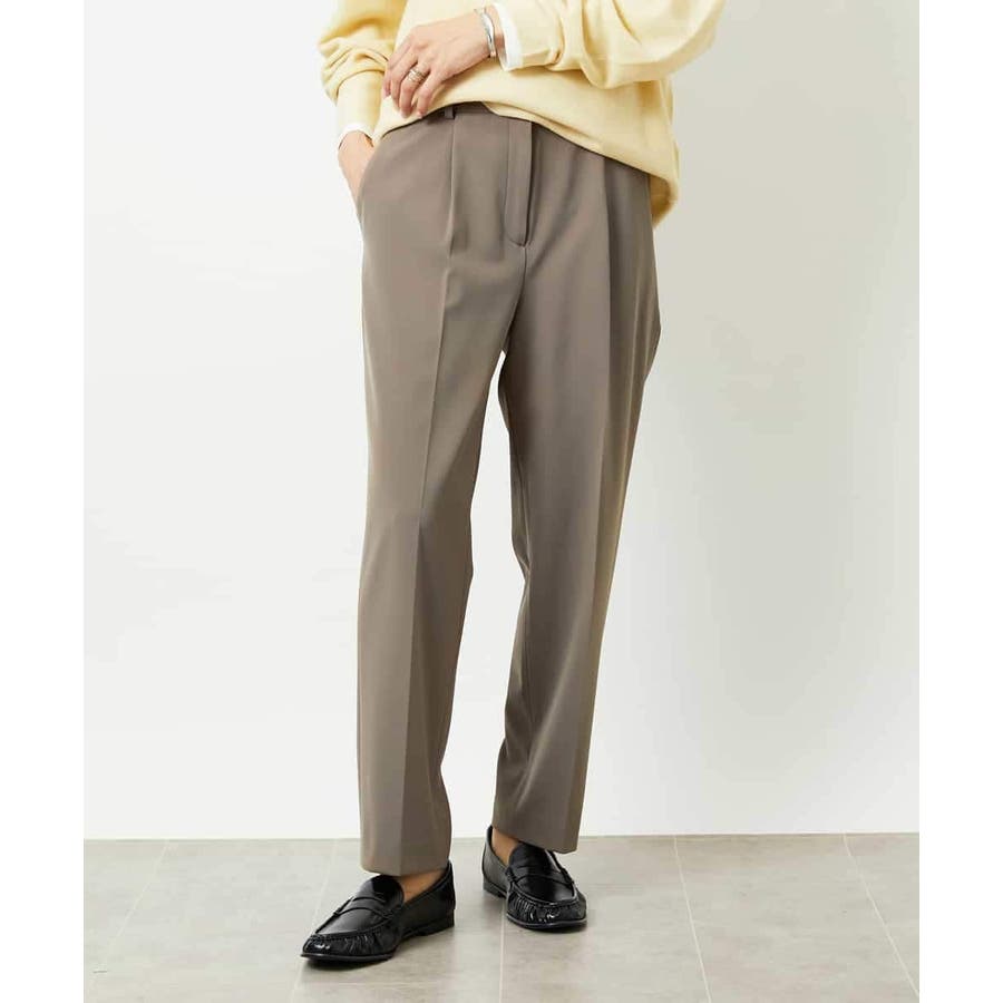 すっきりとしたテーパードシルエットのパンツなので、ボリュームニットと合わせてカジュアルに、きれいめトップスと合わせてオフィススタイルにと、幅広く着回せます。フラットシューズはもちろん、ブーツインでも足元の変化を楽しめます。