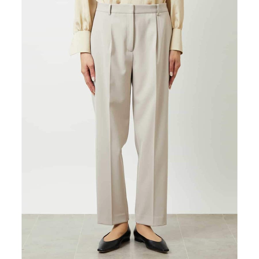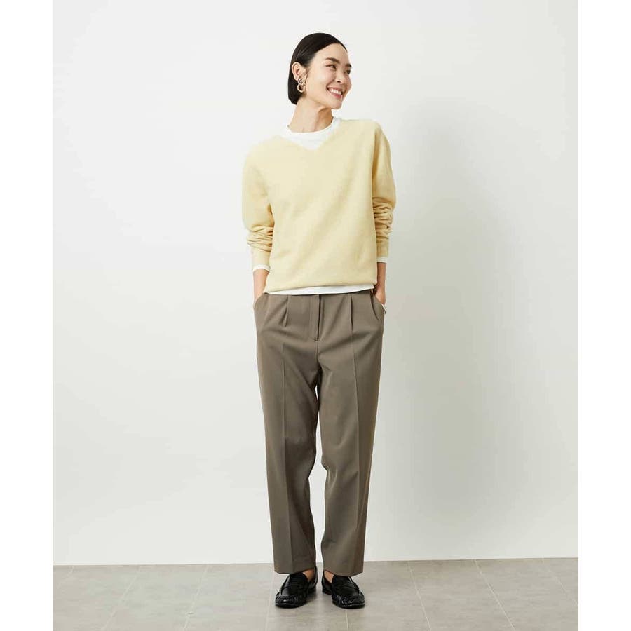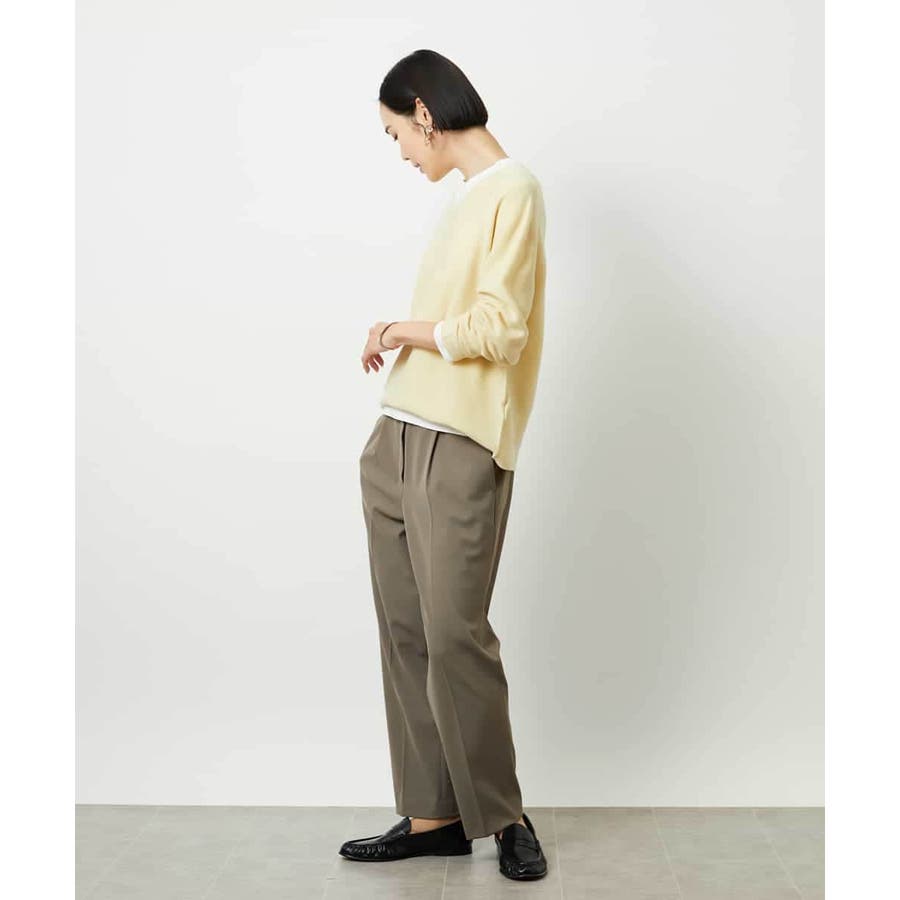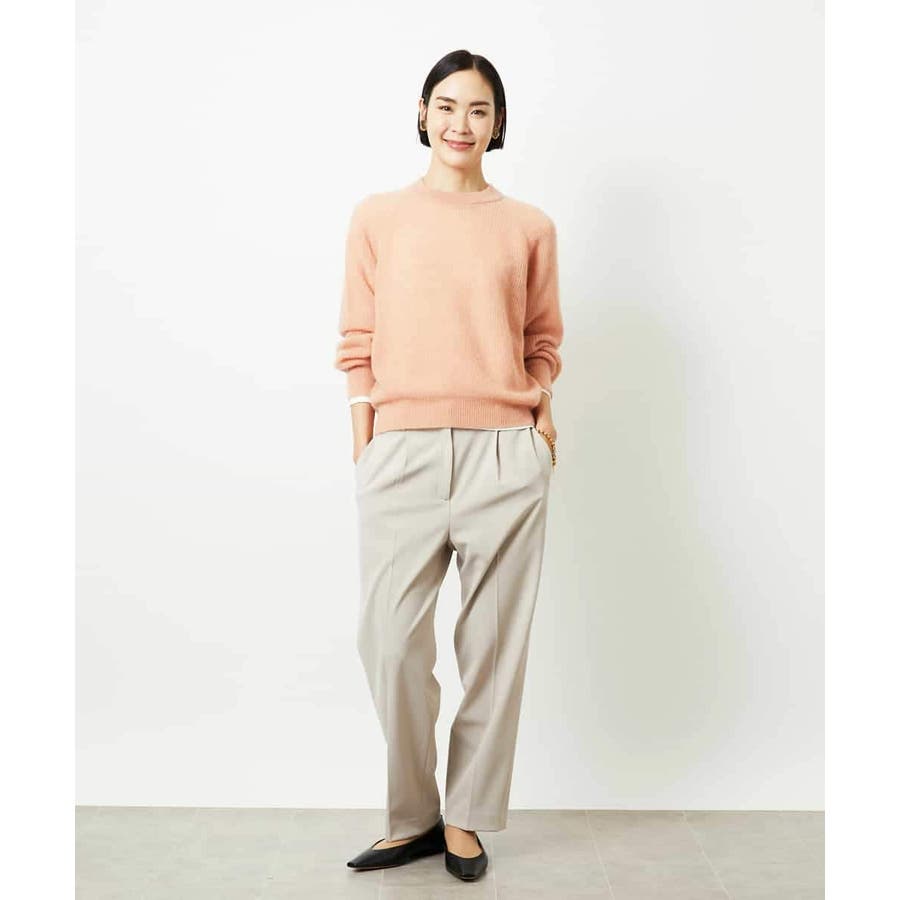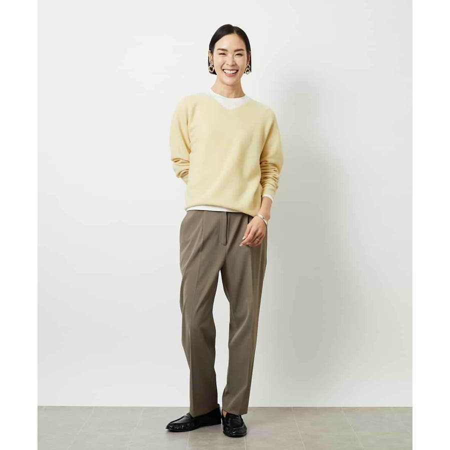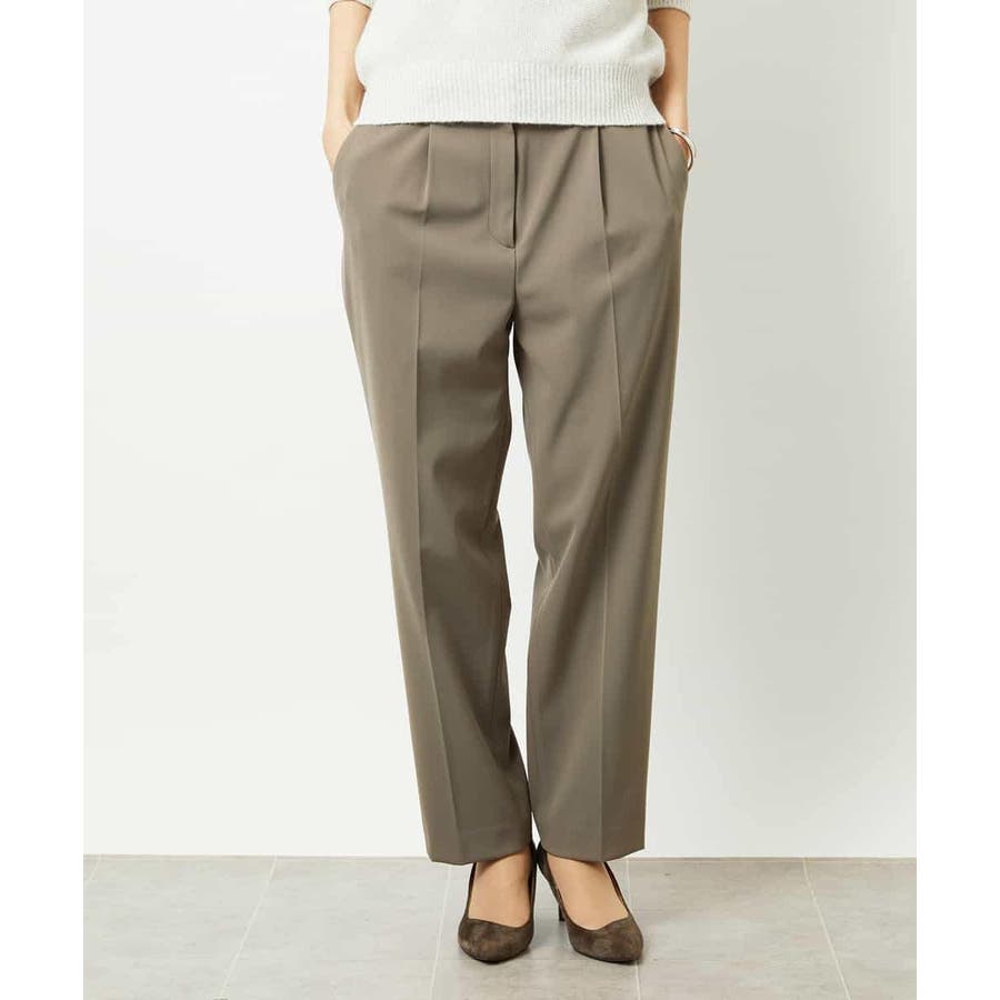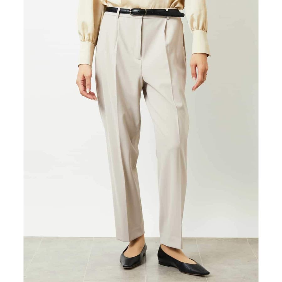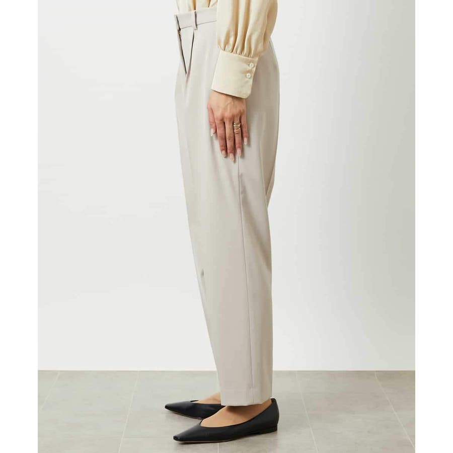 すっきりとしたテーパードシルエットのパンツなので、ボリュームニットと合わせてカジュアルに、きれいめトップスと合わせてオフィススタイルにと、幅広く着回せます。フラットシューズはもちろん、ブーツインでも足元の変化を楽しめます。