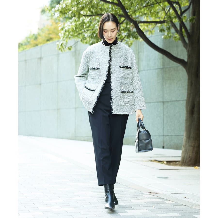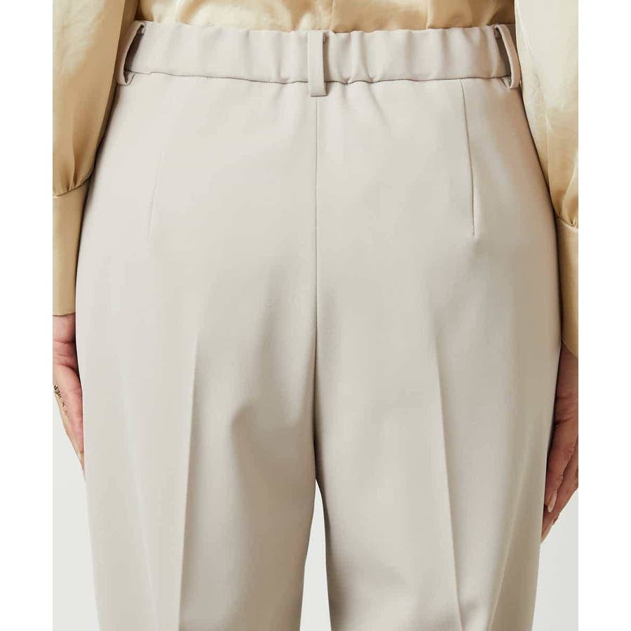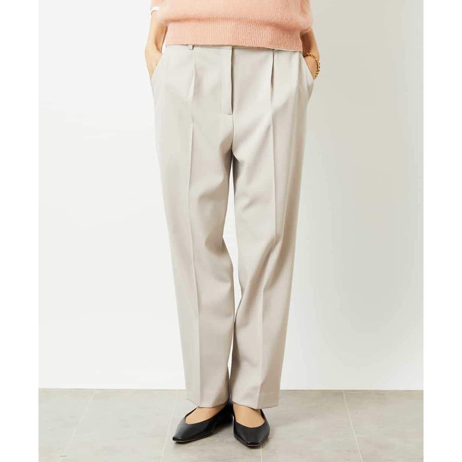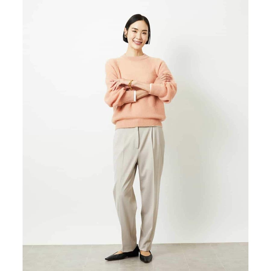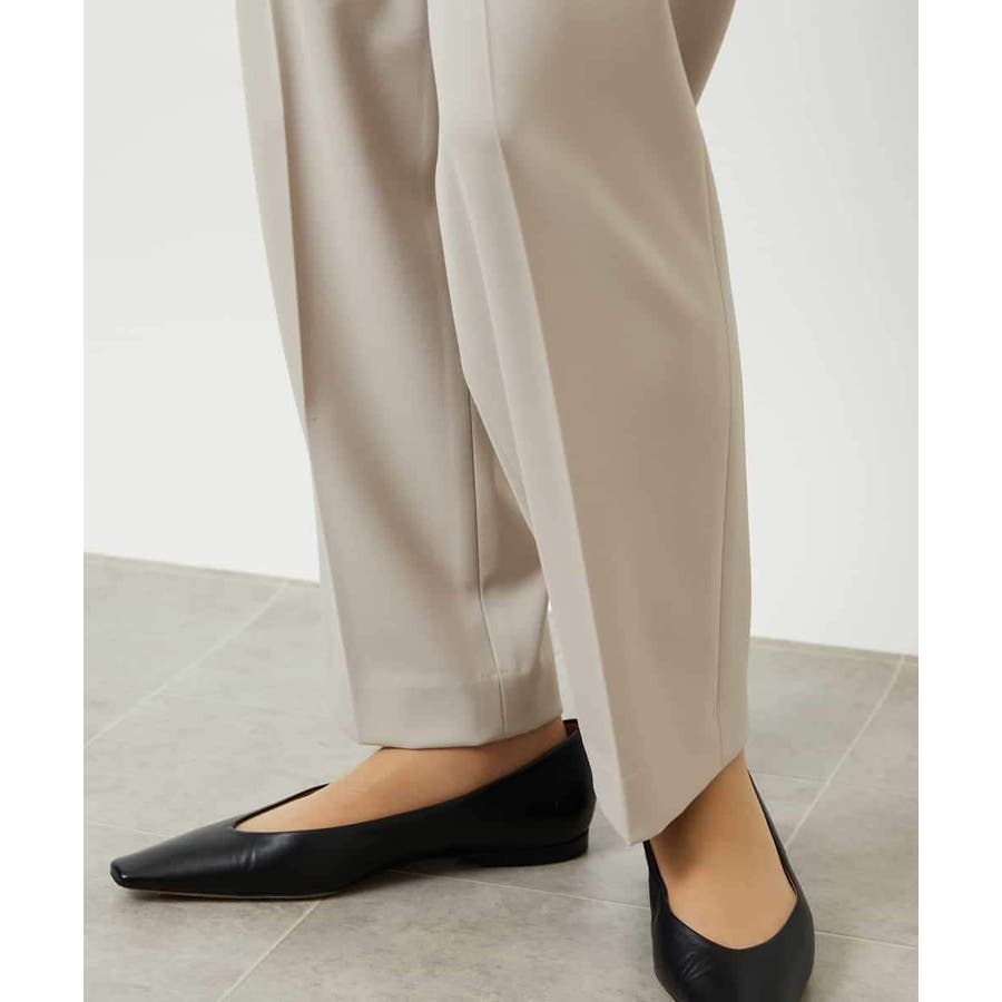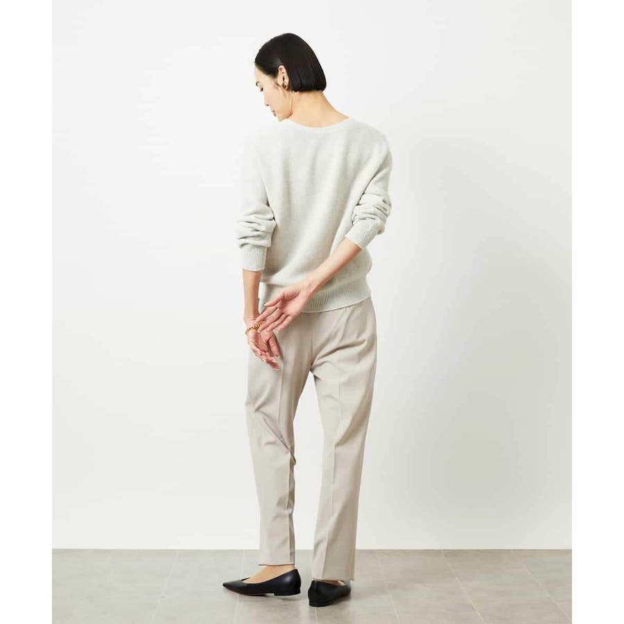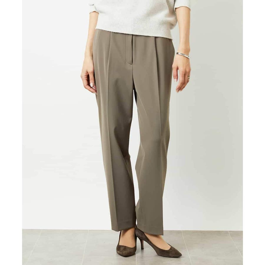 すっきりとしたテーパードシルエットのパンツなので、ボリュームニットと合わせてカジュアルに、きれいめトップスと合わせてオフィススタイルにと、幅広く着回せます。フラットシューズはもちろん、ブーツインでも足元の変化を楽しめます。