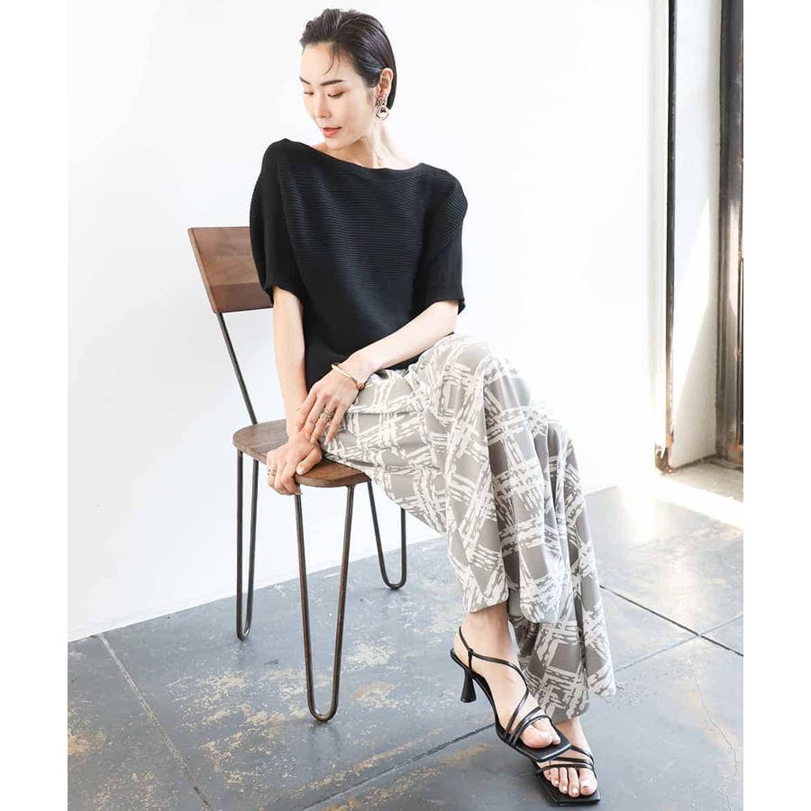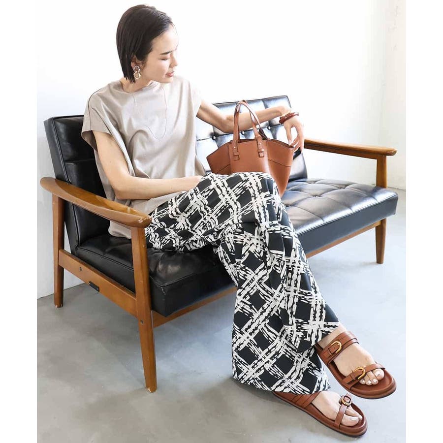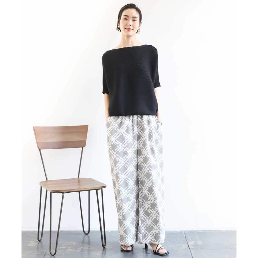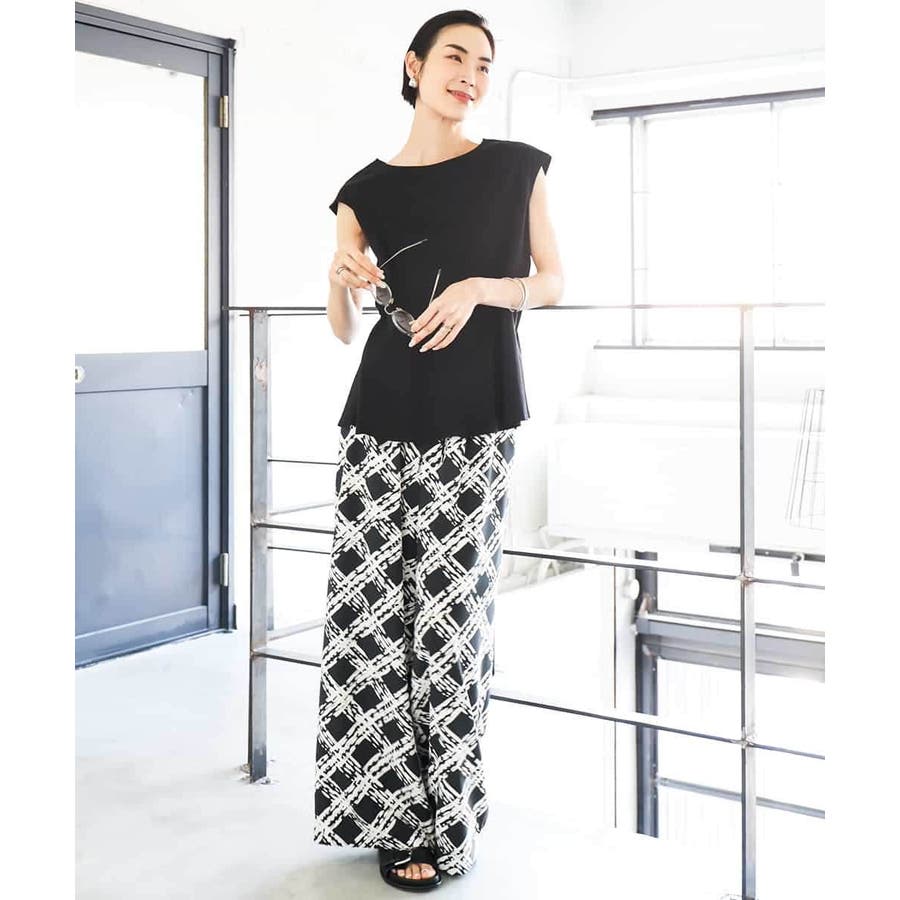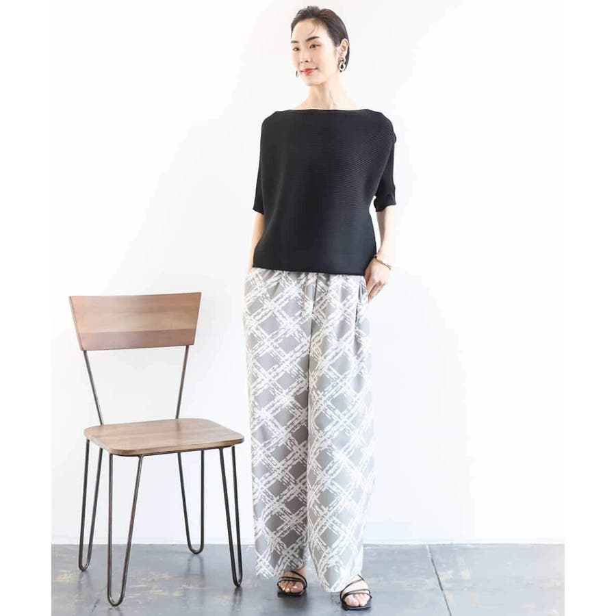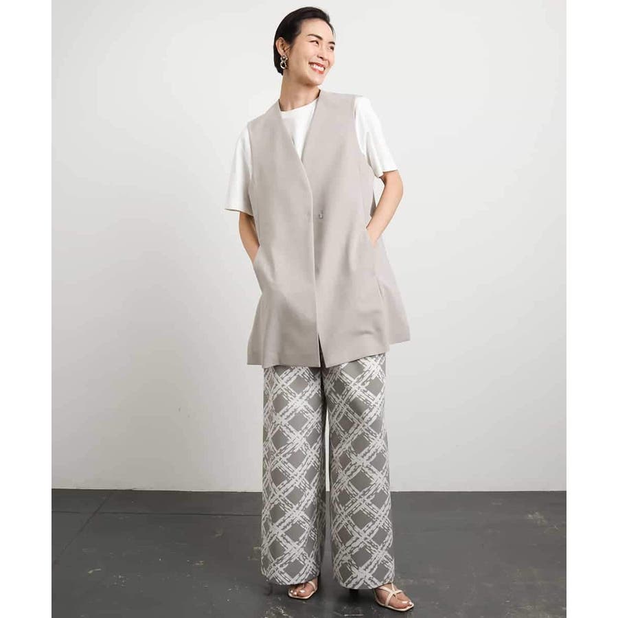 パンツを主役にトップスはシンプルがおすすめ。モノトーンや同色系のカラーでコーディネートがまとまります。ジレを合わせて大人スタイルに、カットソーを合わせてカジュアルに。足元をサンダルにしてリゾートスタイルとしてもお召しいただけます。
