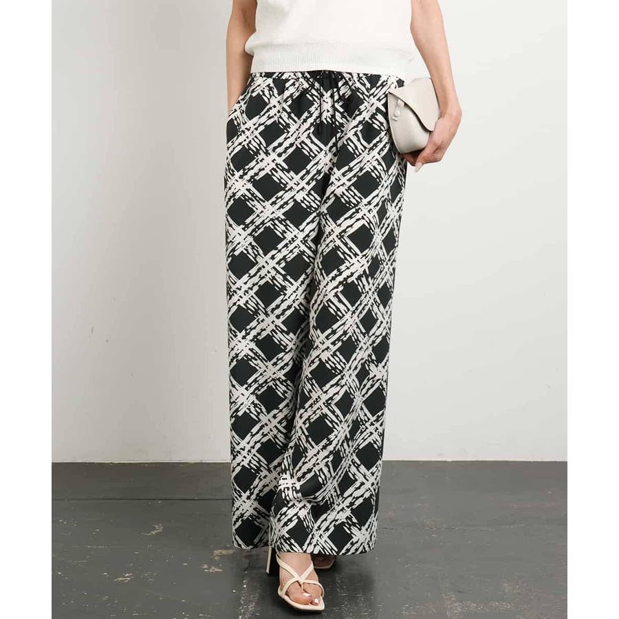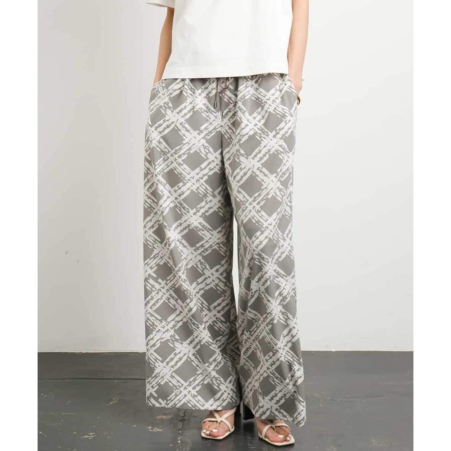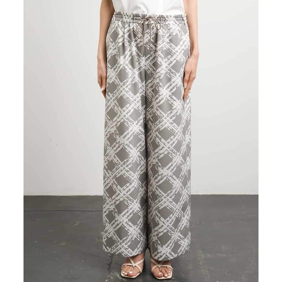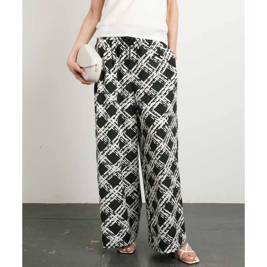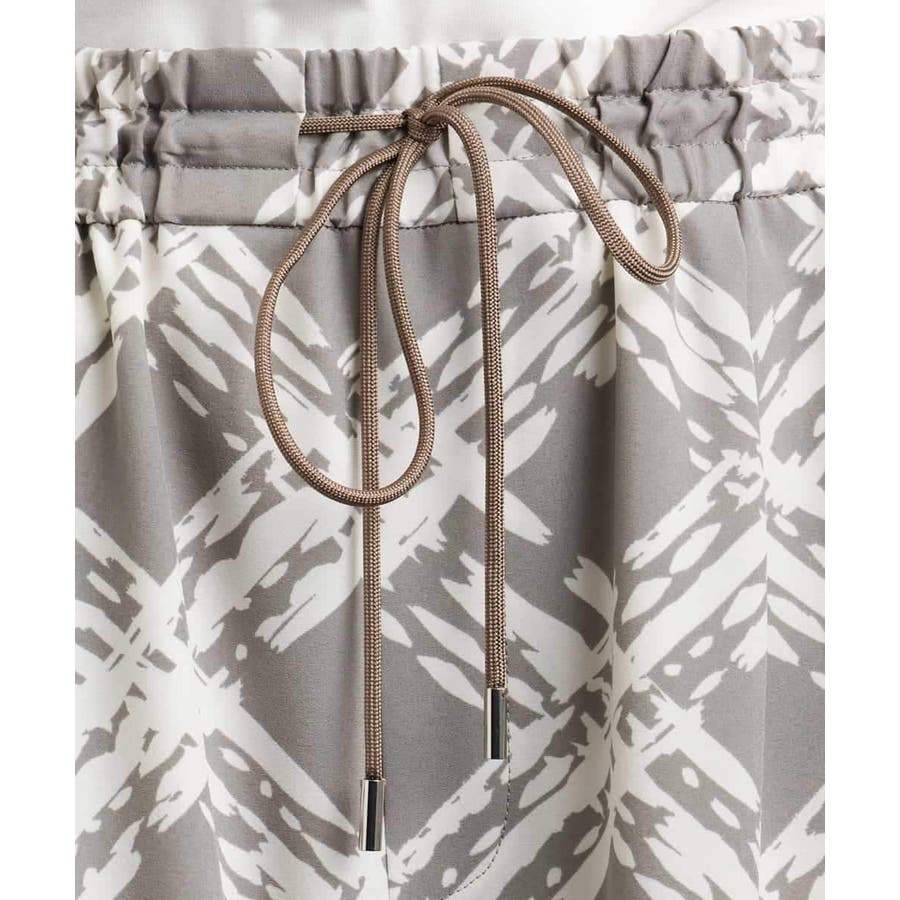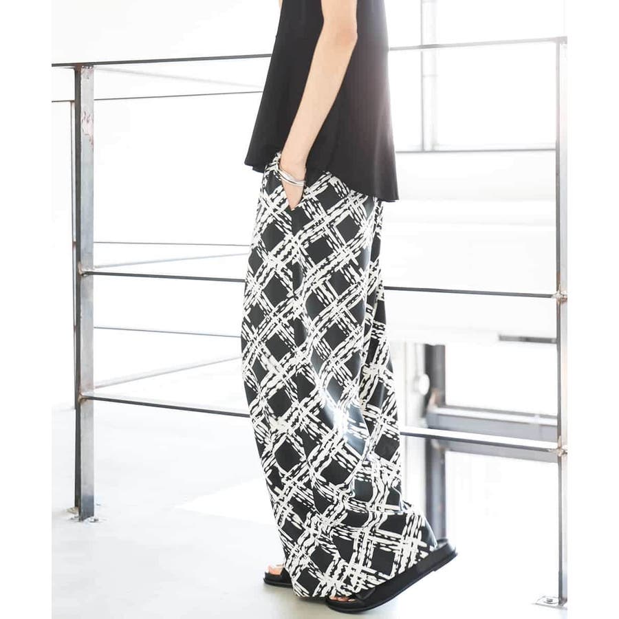 大胆なグラフィックのワイドパンツ。調節のきくドロスト仕様でコージーな着心地。インパクトのある柄ボトムはシンプルなトップスと好相性◎。40サイズは限定店舗展開です。