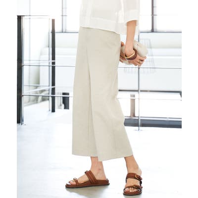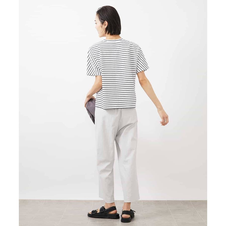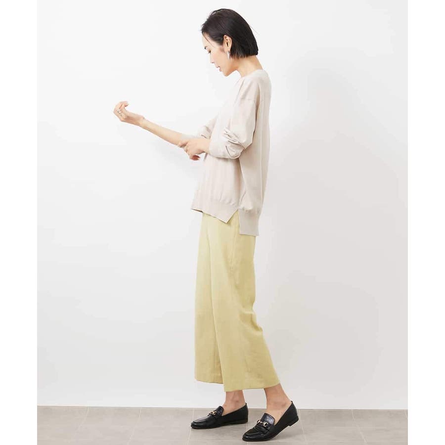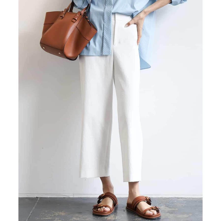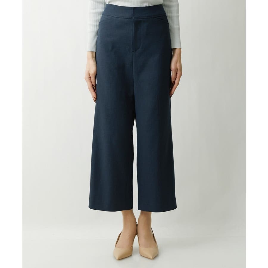 ミッシェルクラン定番のクロップド丈ワイドパンツ、ナチュラル見えするサラッとした麻混の素材感とストレッチが効いているので履き心地が良く楽に着用できます。