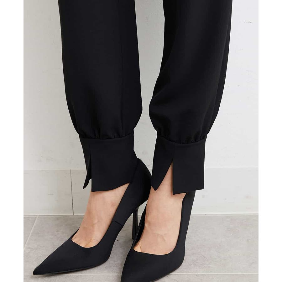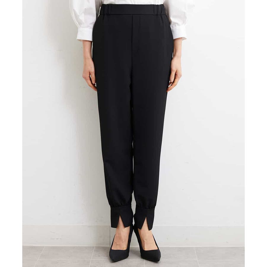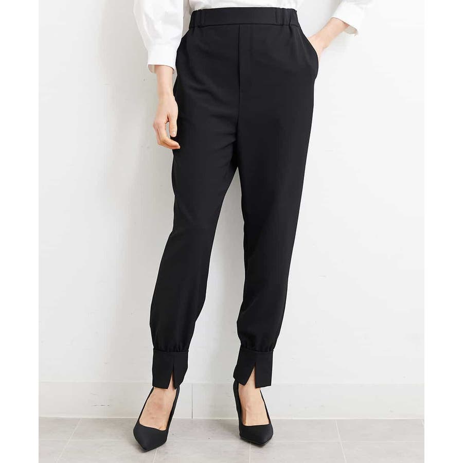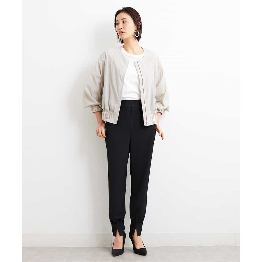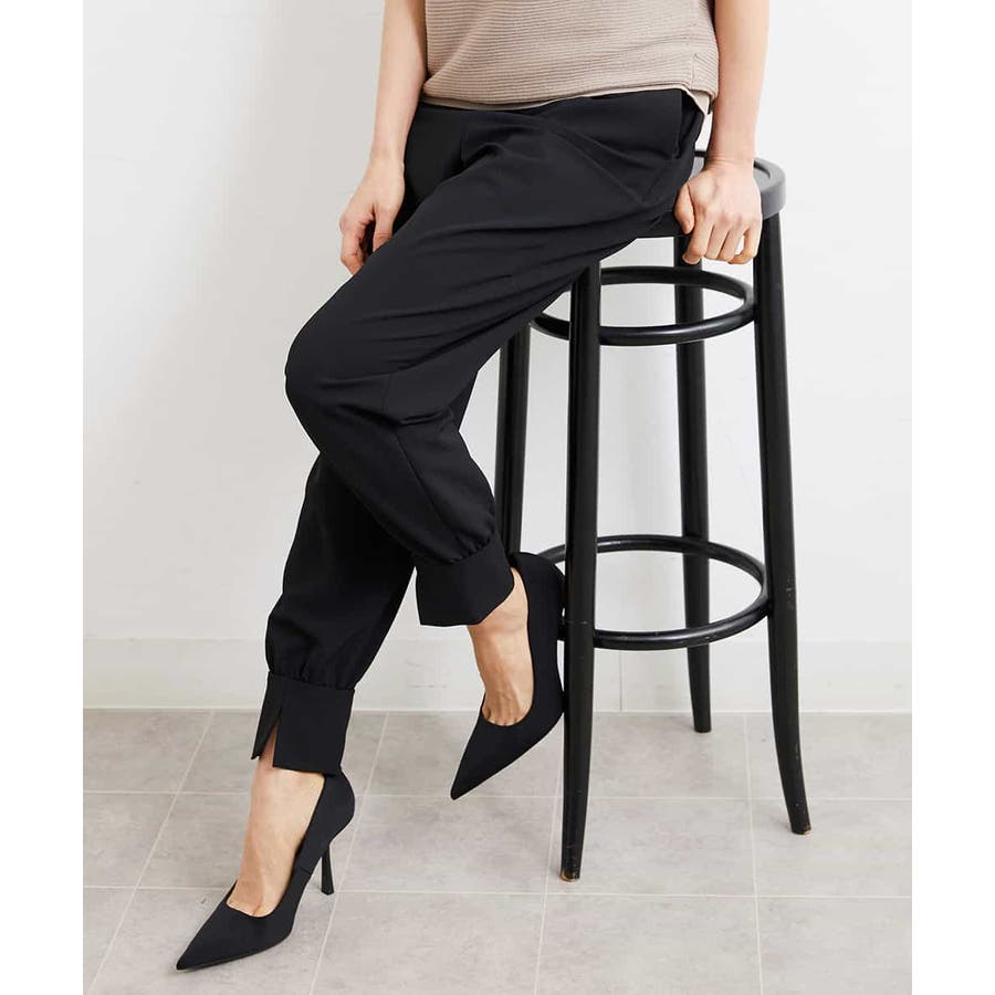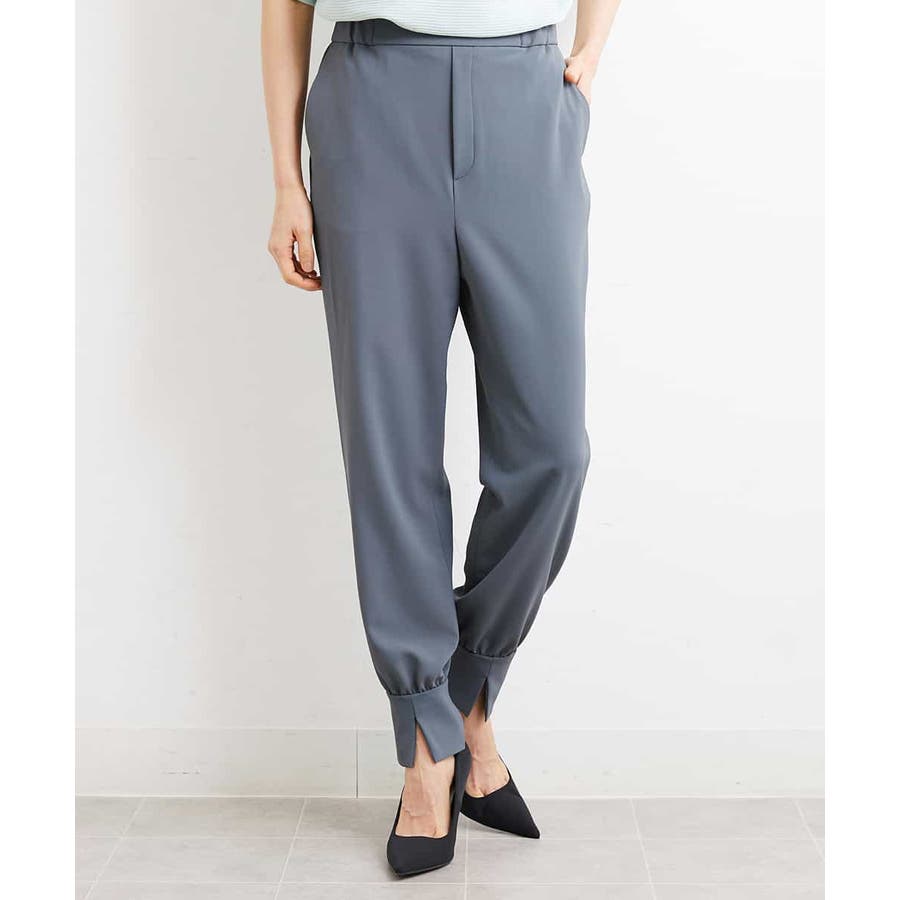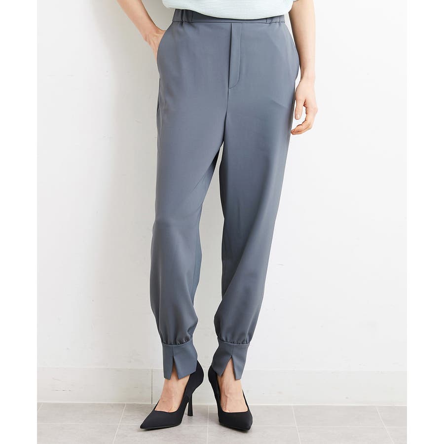 カジュアルになり過ぎずキレイ見えするジョガーパンツ。裾スリットが、足首を ほっそり見せしてくれます。脇ファスナーで着脱するため、腰回りの分量を少なく作っているので、ウェストギャザーパンツでもすっきりと着用していただけます。40サイズは限定店舗展開です。