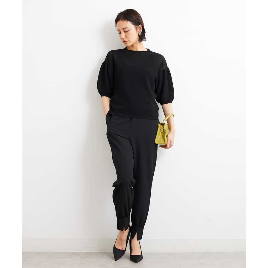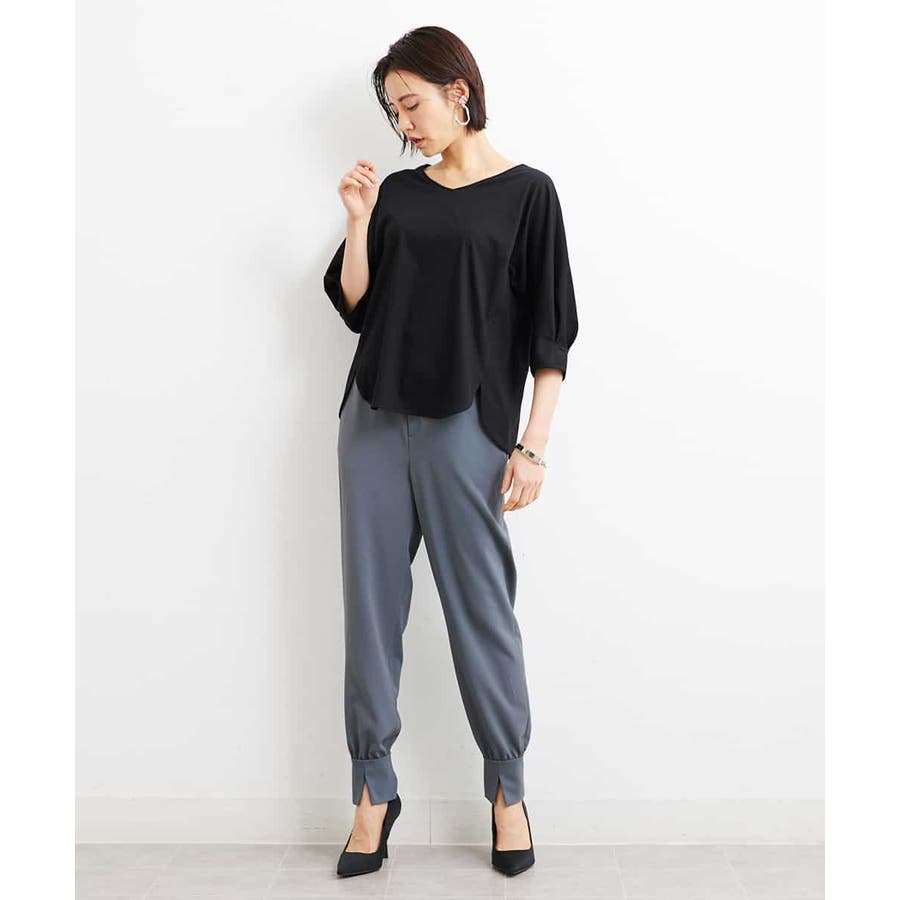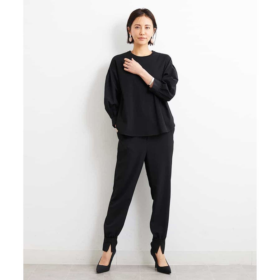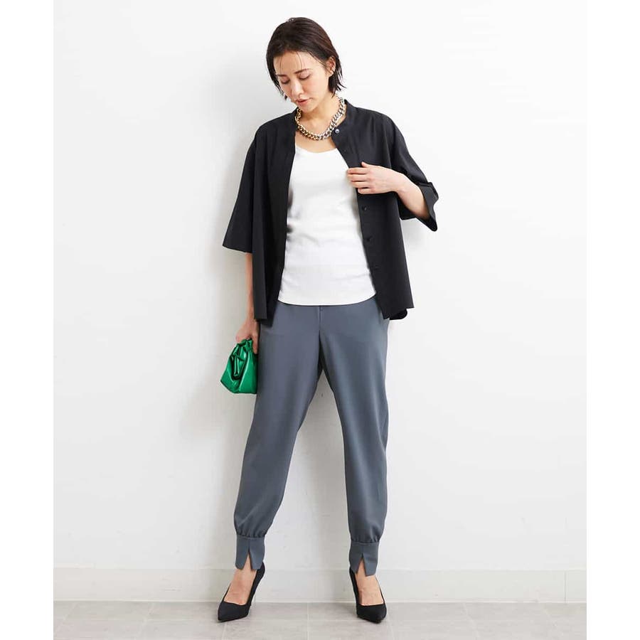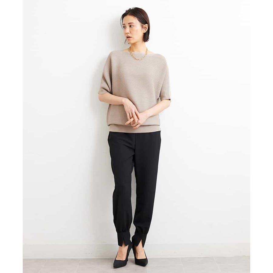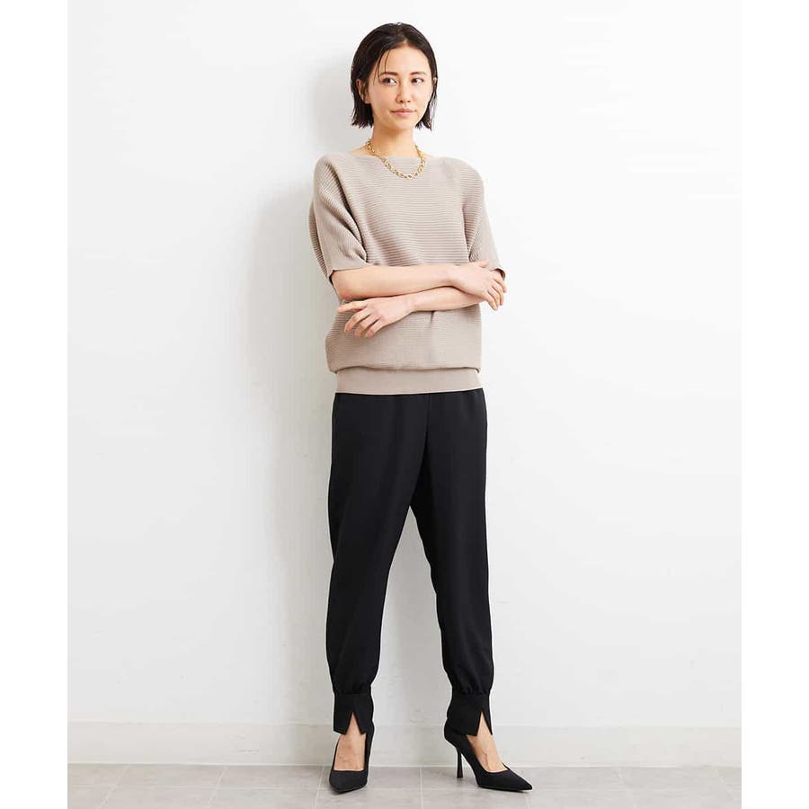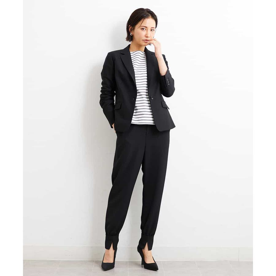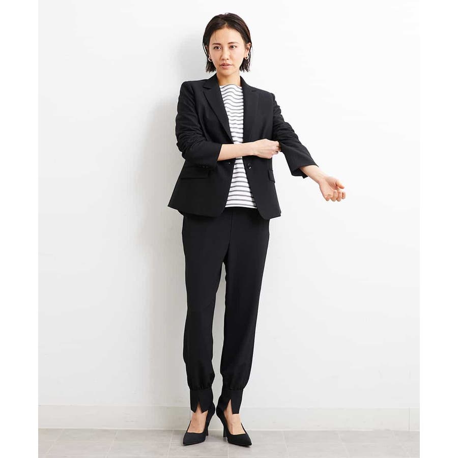 カジュアルになり過ぎずキレイ見えするジョガーパンツ。裾スリットが、足首を ほっそり見せしてくれます。脇ファスナーで着脱するため、腰回りの分量を少なく作っているので、ウェストギャザーパンツでもすっきりと着用していただけます。40サイズは限定店舗展開です。