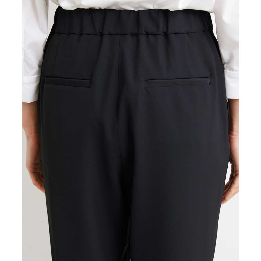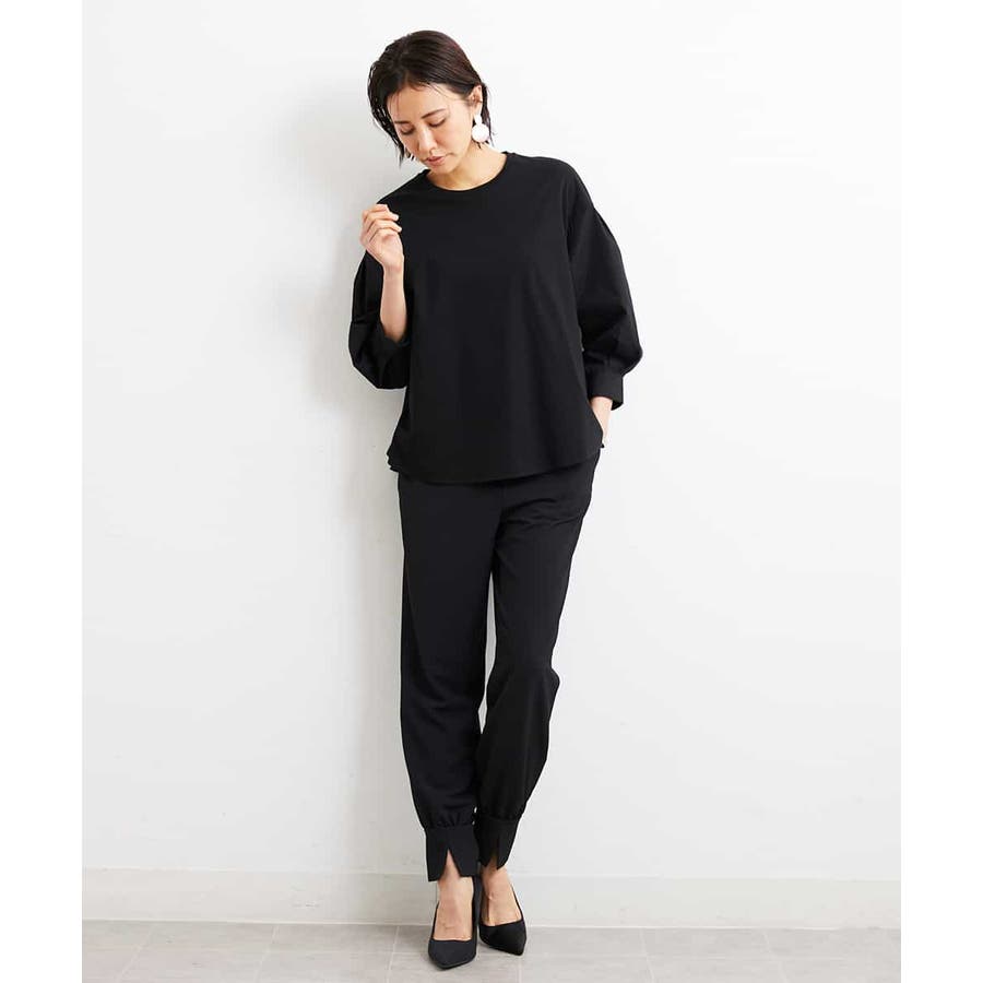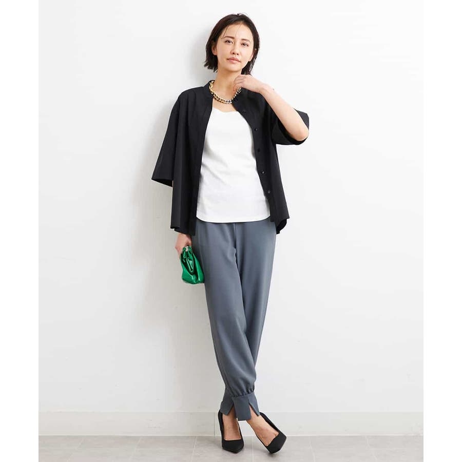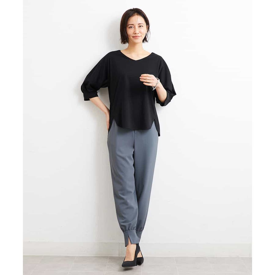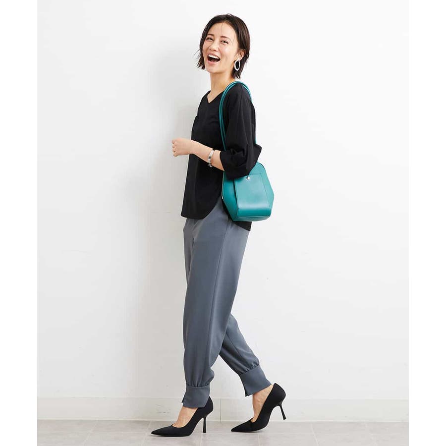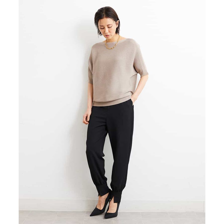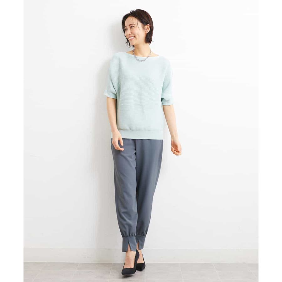 カジュアルになり過ぎずキレイ見えするジョガーパンツ。裾スリットが、足首を ほっそり見せしてくれます。脇ファスナーで着脱するため、腰回りの分量を少なく作っているので、ウェストギャザーパンツでもすっきりと着用していただけます。40サイズは限定店舗展開です。