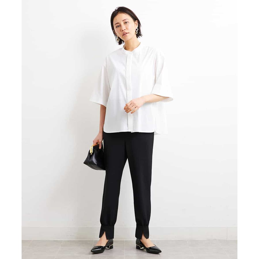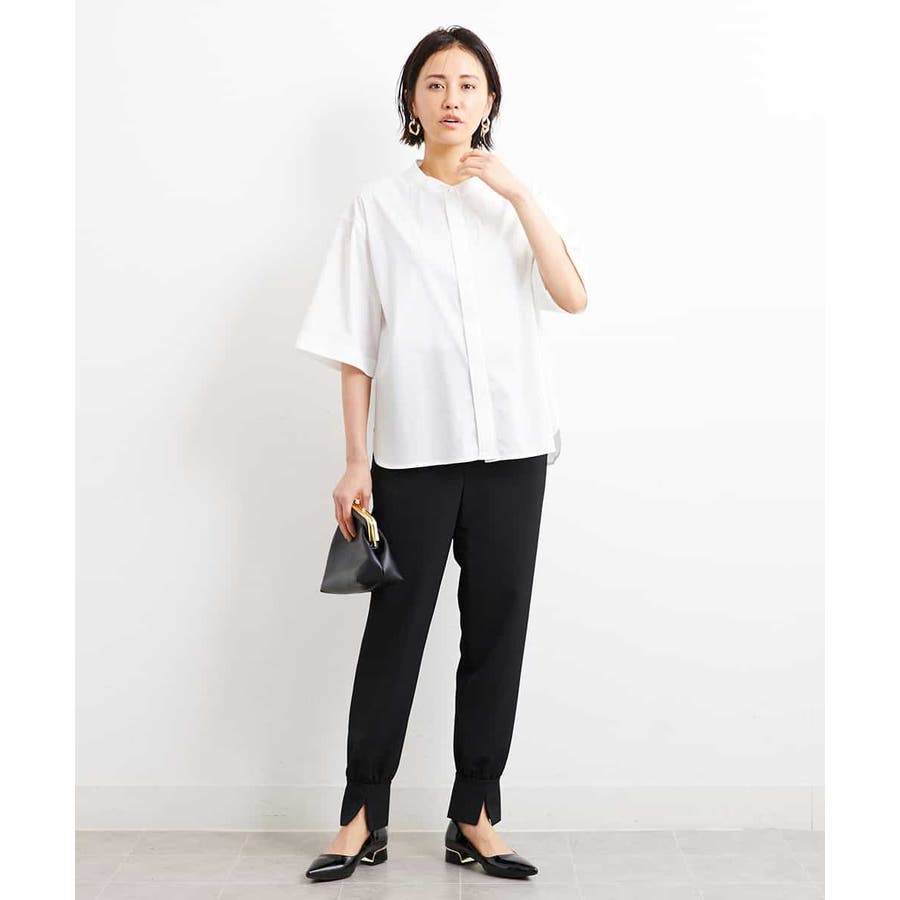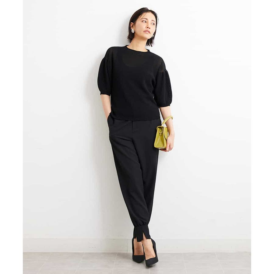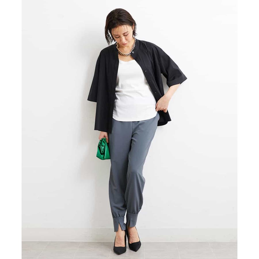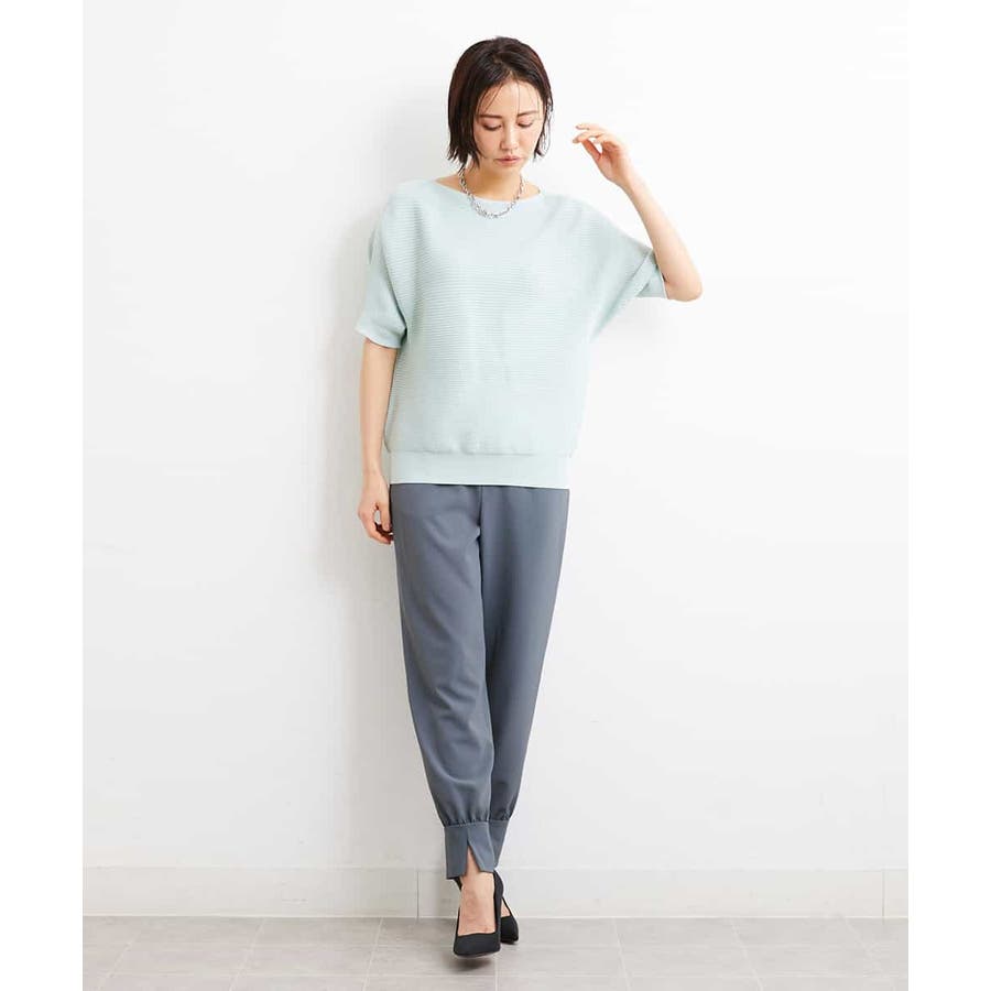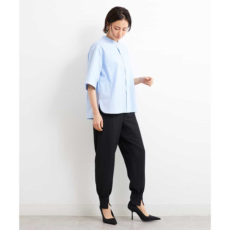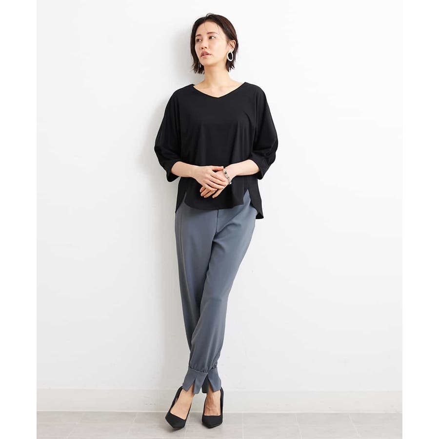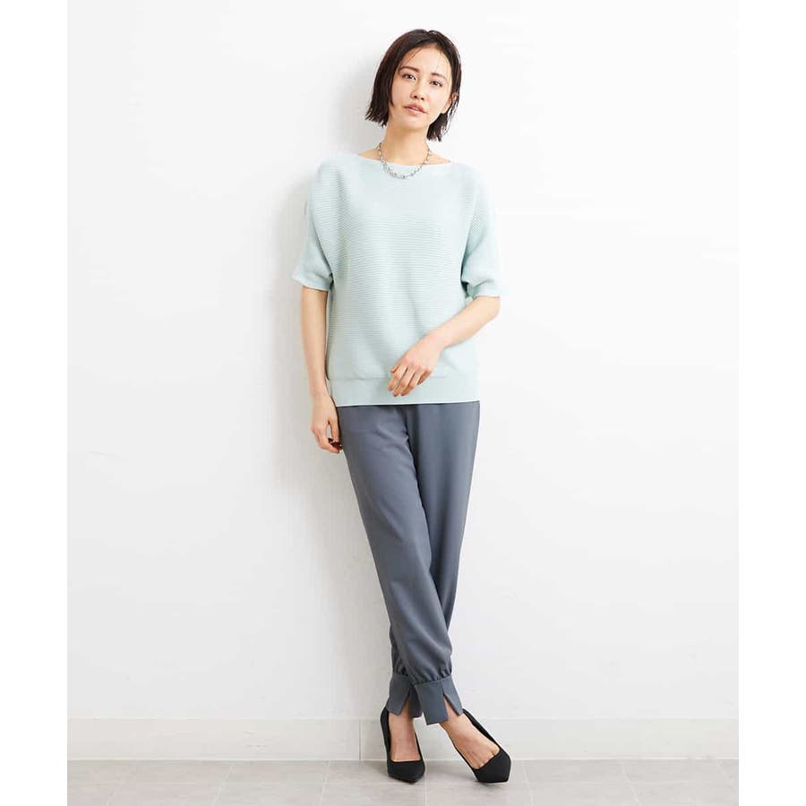 カジュアルになり過ぎずキレイ見えするジョガーパンツ。裾スリットが、足首を ほっそり見せしてくれます。脇ファスナーで着脱するため、腰回りの分量を少なく作っているので、ウェストギャザーパンツでもすっきりと着用していただけます。40サイズは限定店舗展開です。