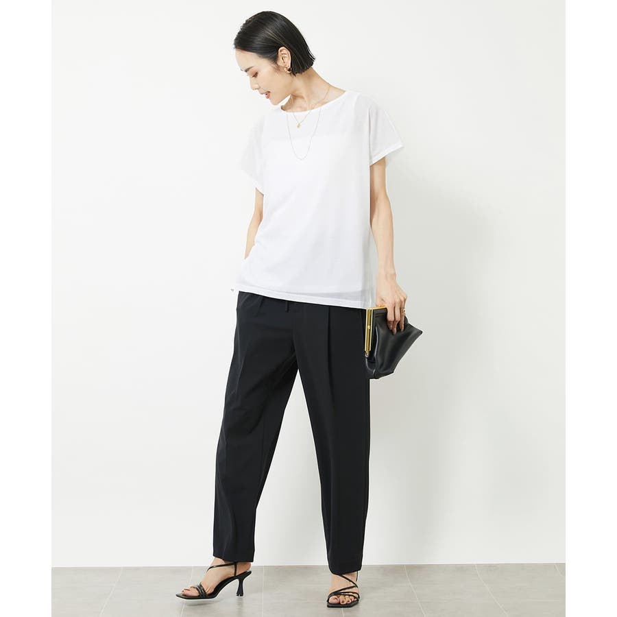 Tシャツでカジュアルな印象に。ジャケットと合わせてもトレンド感のある「キレイめスポーティー」が叶います。