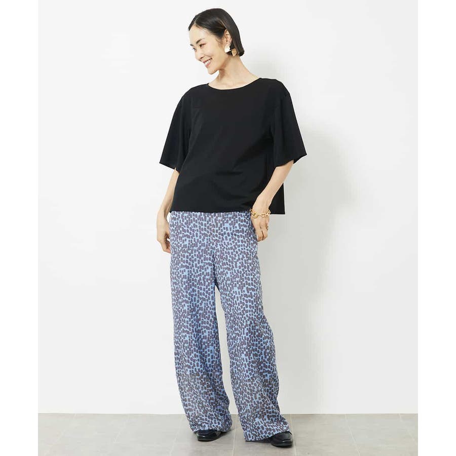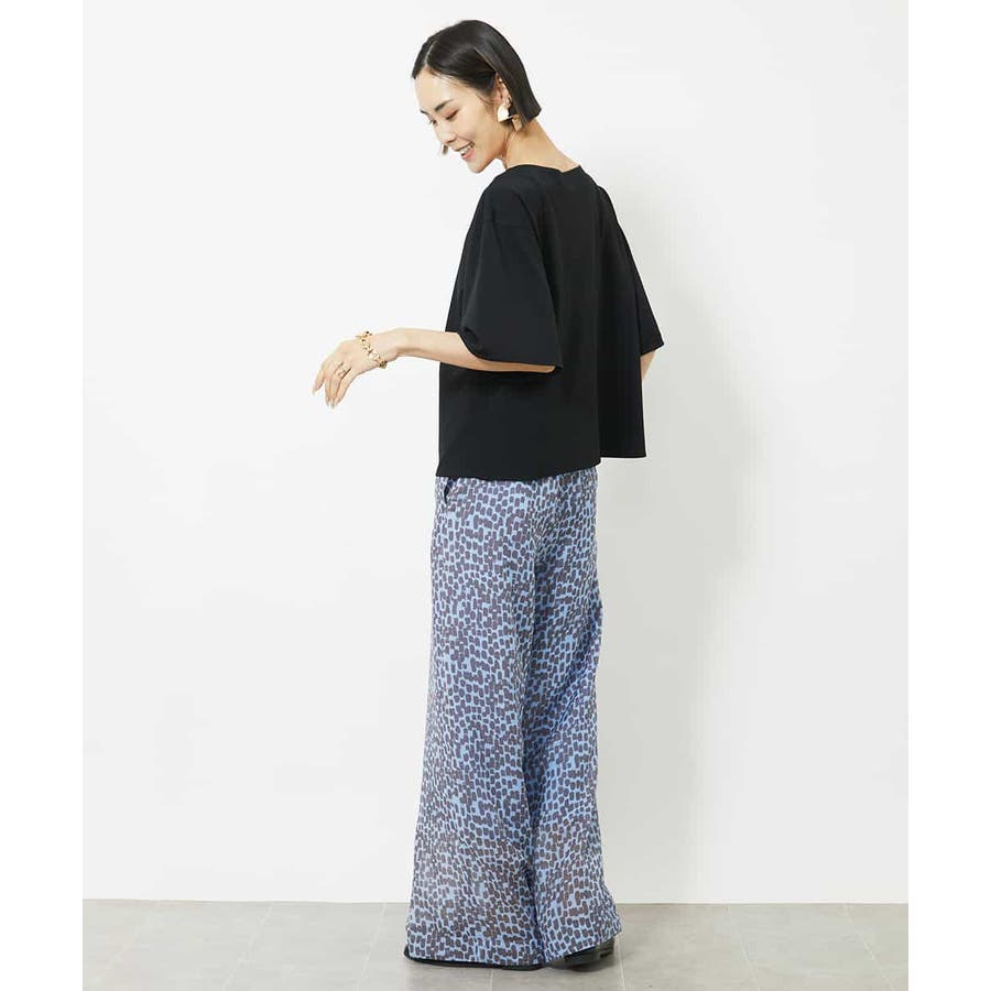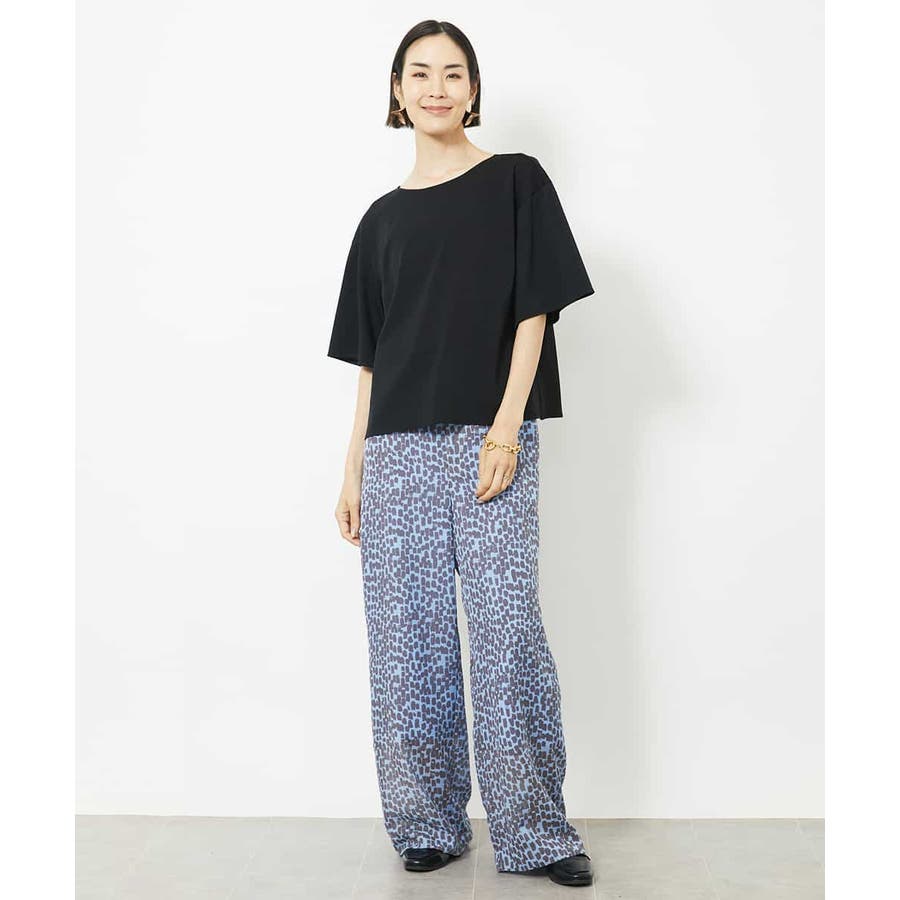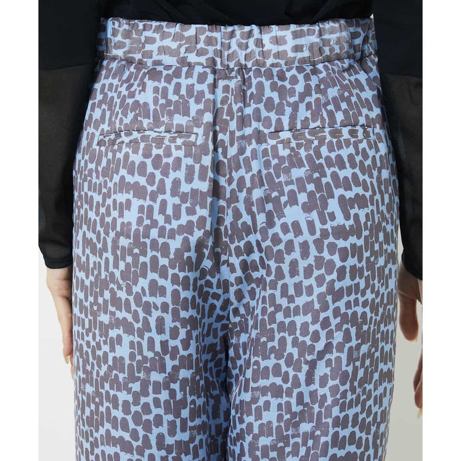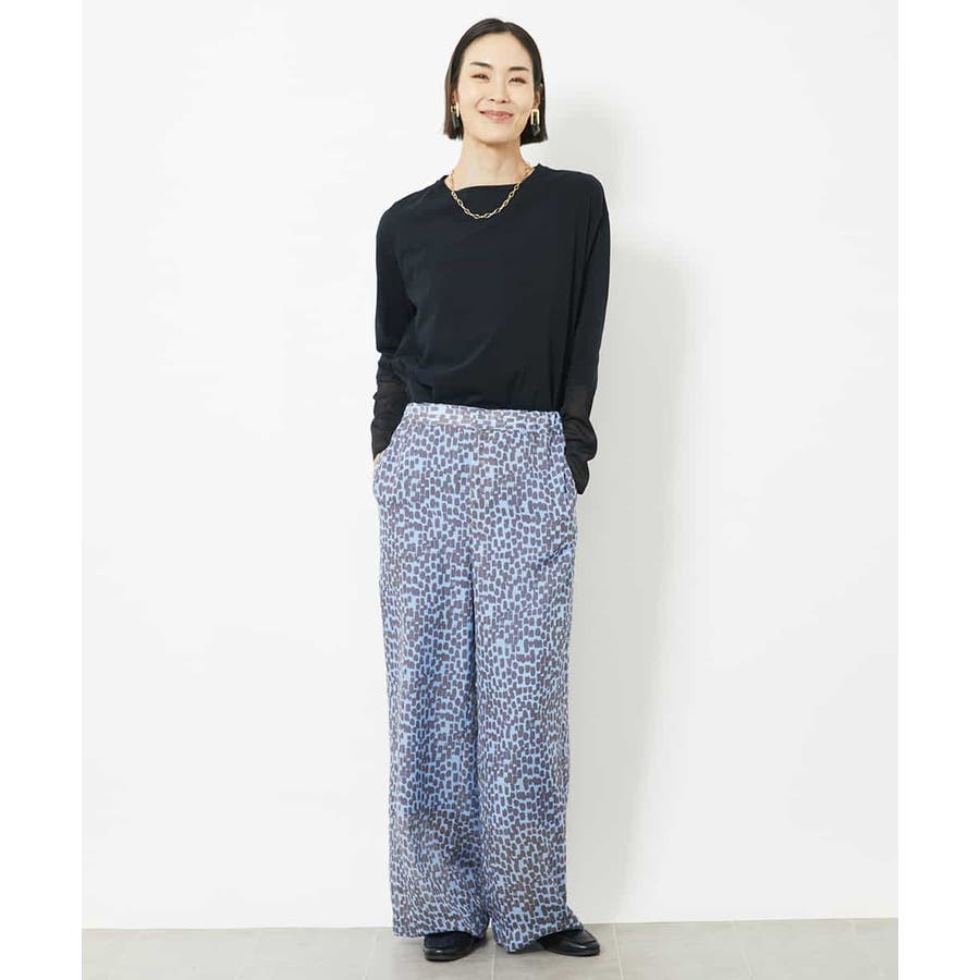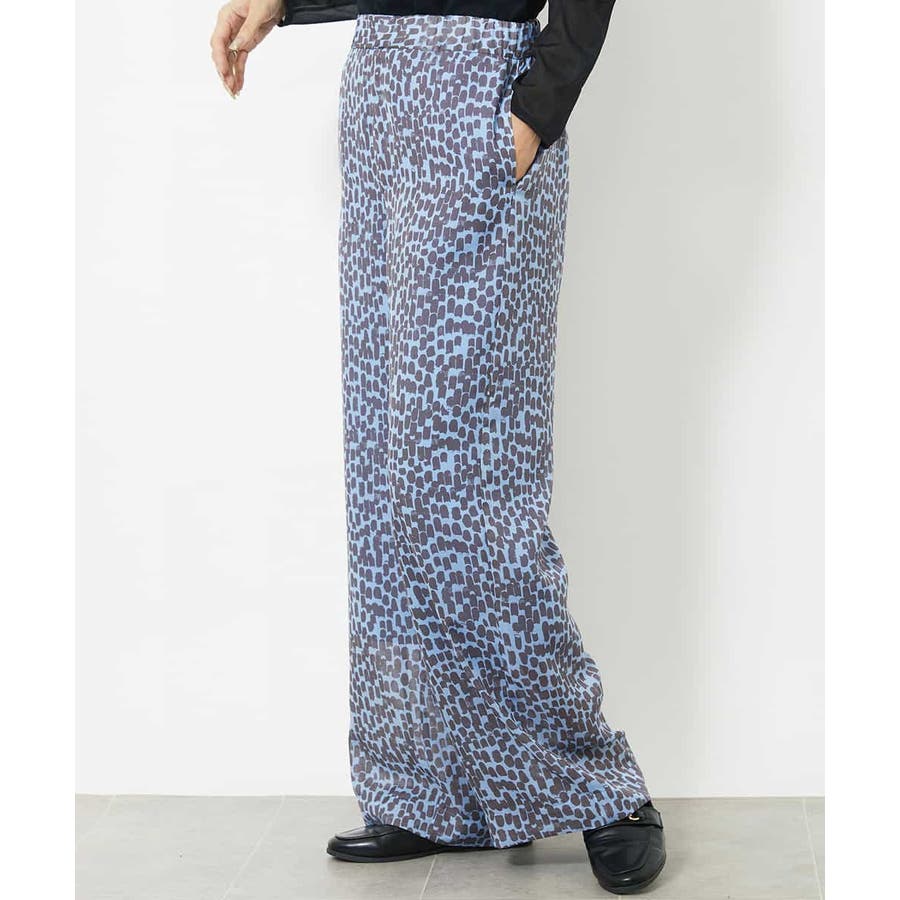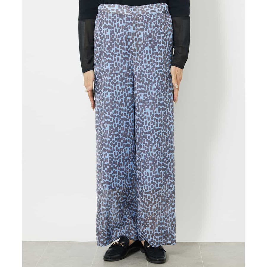 素材の軽さを活かしたイージーパンツ。ゴムギャザー仕様にする事でリラクシーなアイテムに。トレンドのシアー素材をオリジナルプリントで格上げして、洗練された優しい印象に仕上げています。40サイズは限定店舗展開です。