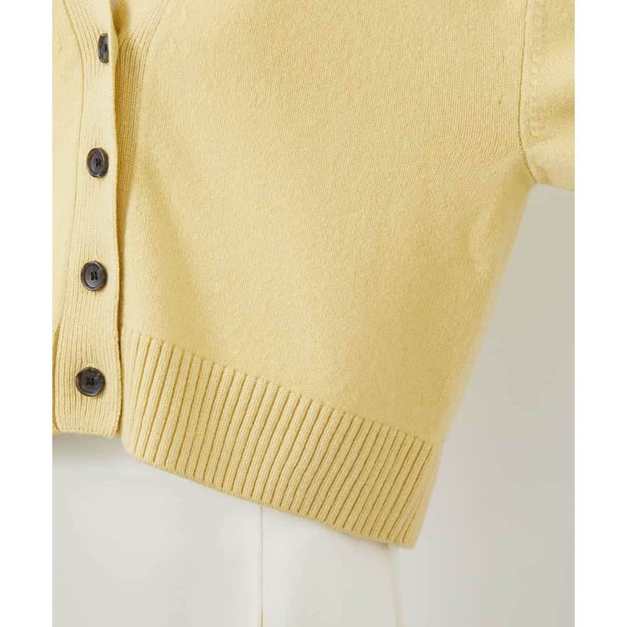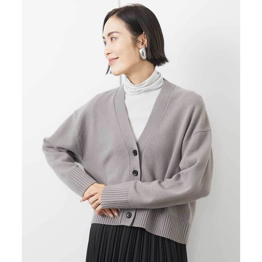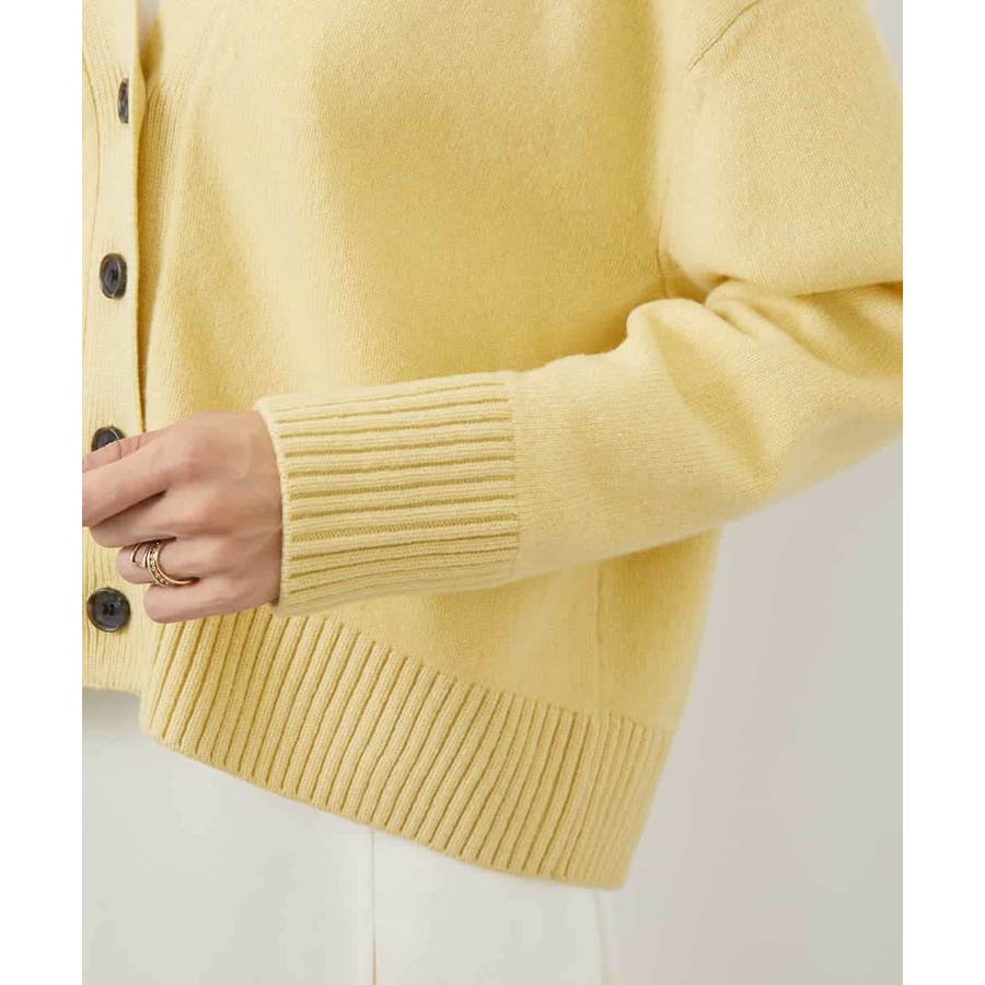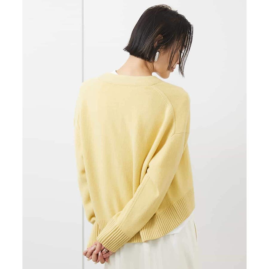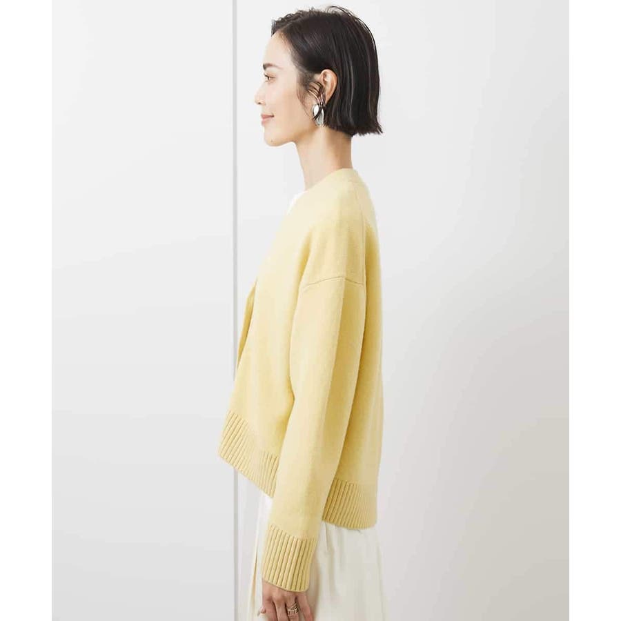 カットソーやシャツなど、合わせるアイテムでコーディネートの幅も広がり、アクセント的な使い方もできる、クロップド丈が軽やかなVネックカーディガン。ざっくりと幅広めに編立てた袖口リブと裾リブもポイントです。40サイズは限定店舗展開です。