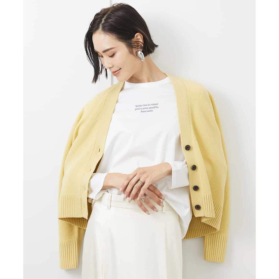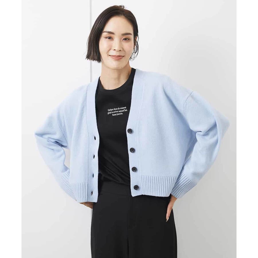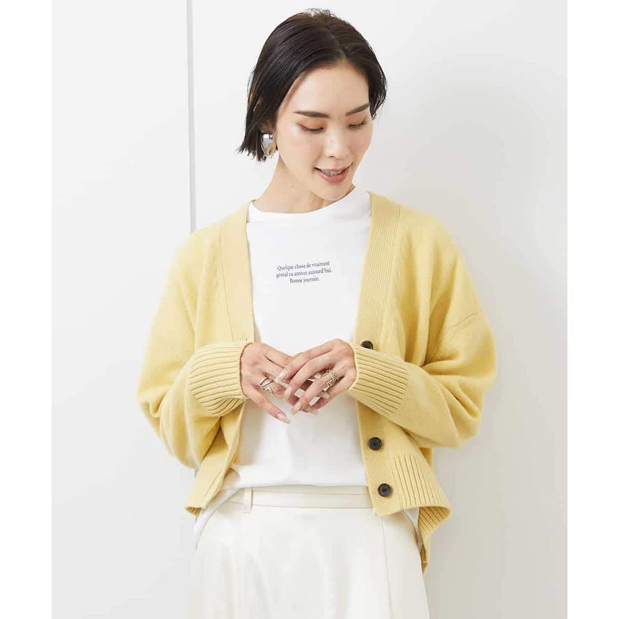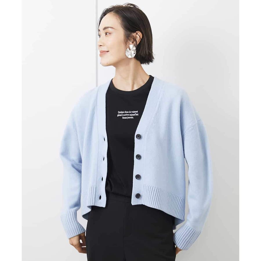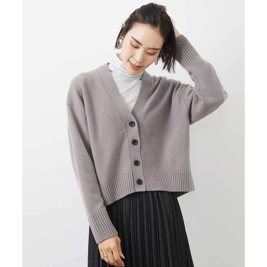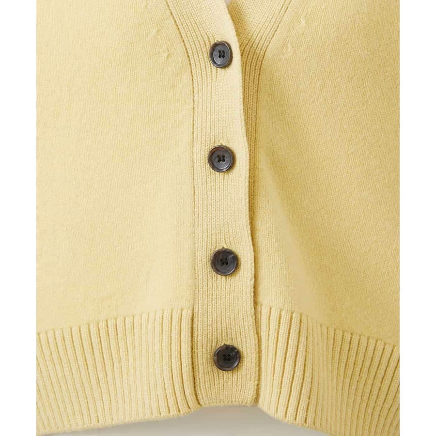 カットソーやシャツなど、合わせるアイテムでコーディネートの幅も広がり、アクセント的な使い方もできる、クロップド丈が軽やかなVネックカーディガン。ざっくりと幅広めに編立てた袖口リブと裾リブもポイントです。40サイズは限定店舗展開です。
