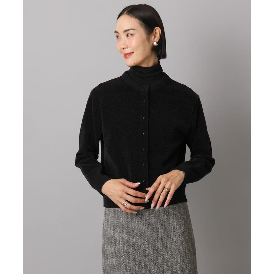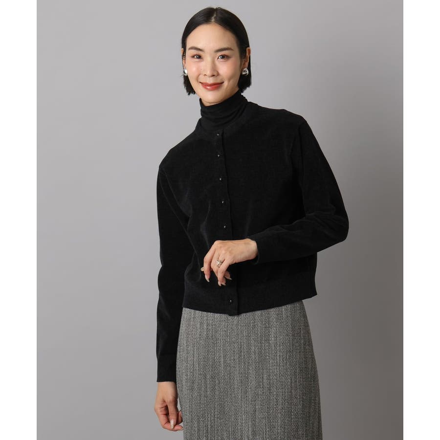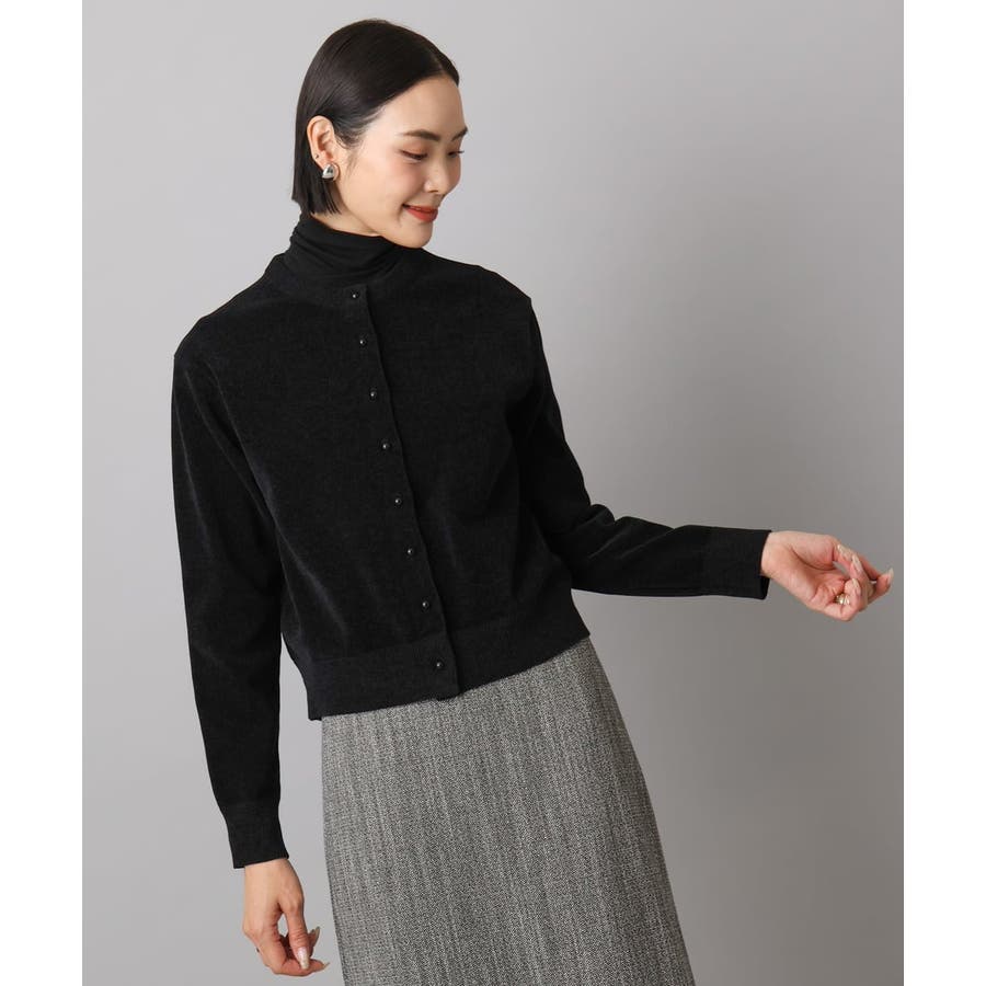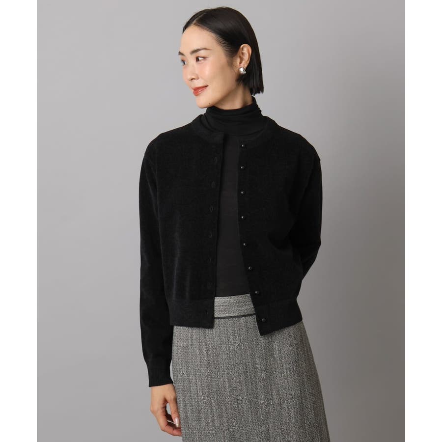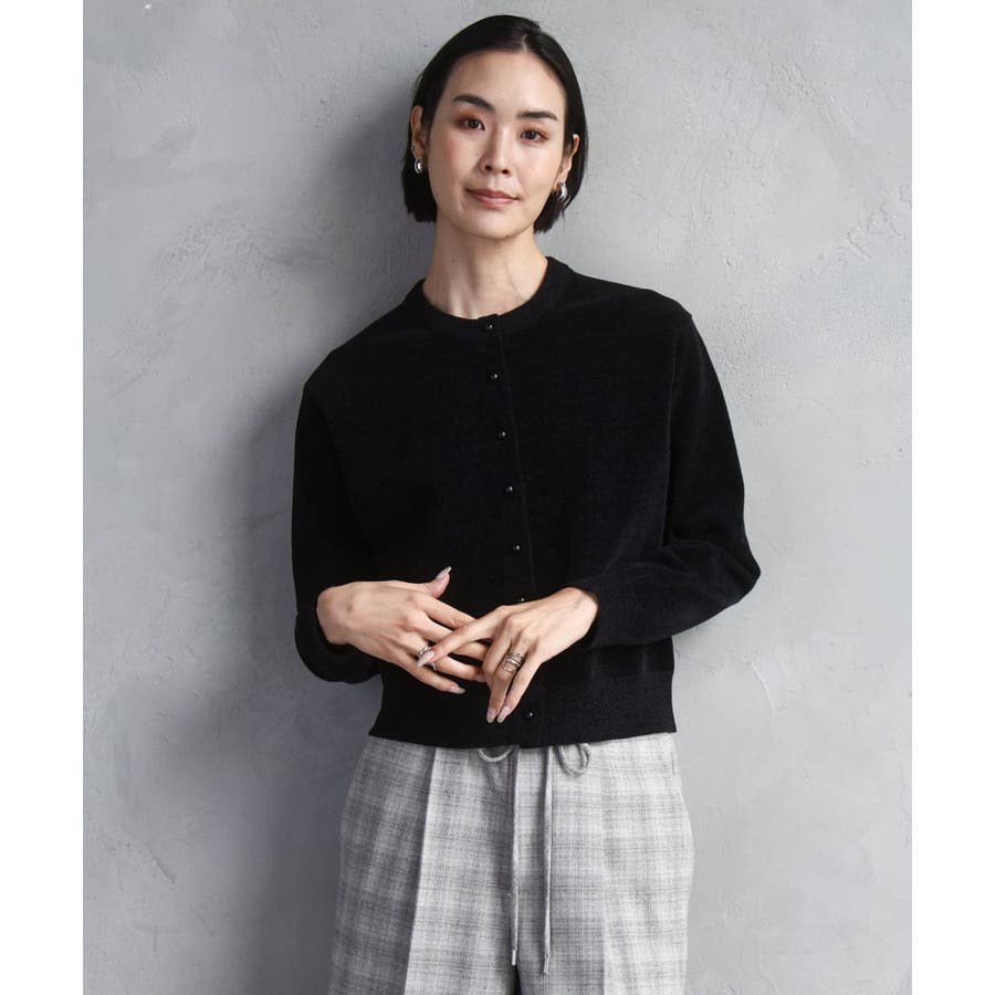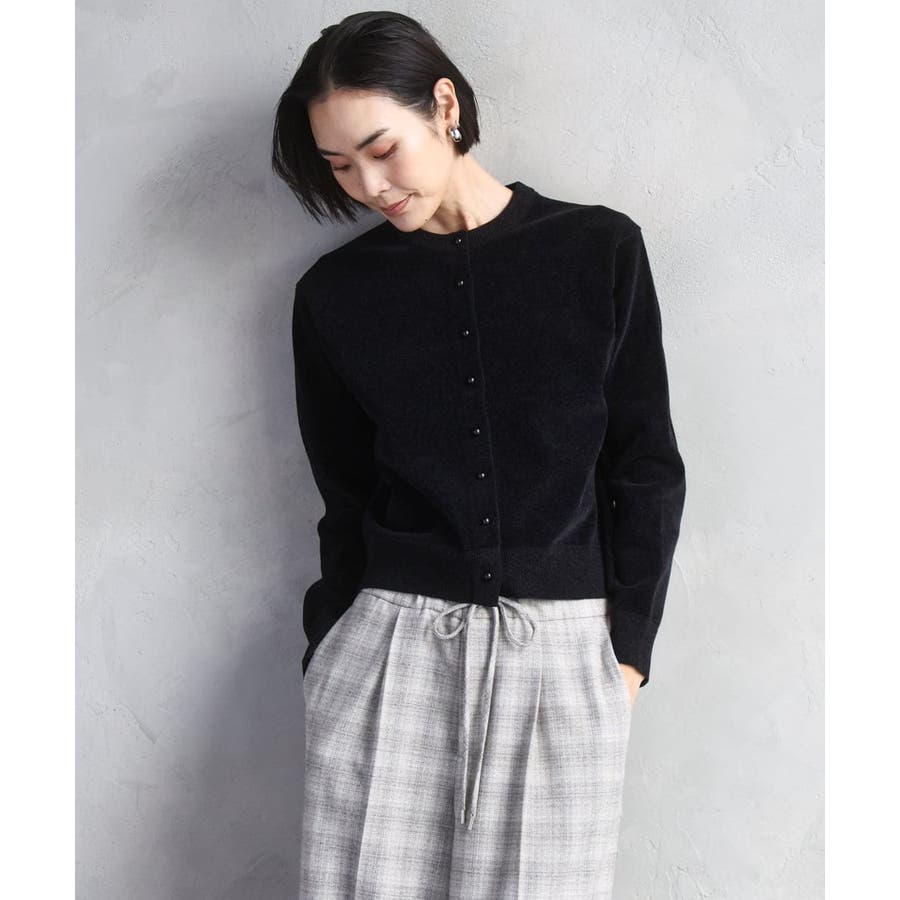 ベルベットのような光沢感をもつモール糸で仕立てたコンパクト丈カーディガン。程よいハリがあり、シルエットをすっきりと引き立てます。同色で塗装したメタルボタンがさりげないアクセントに。ボタンを留めればプルオーバーのようにも着られ、幅広いスタイリングを楽しめる一枚です。40サイズは限定店舗展開です。