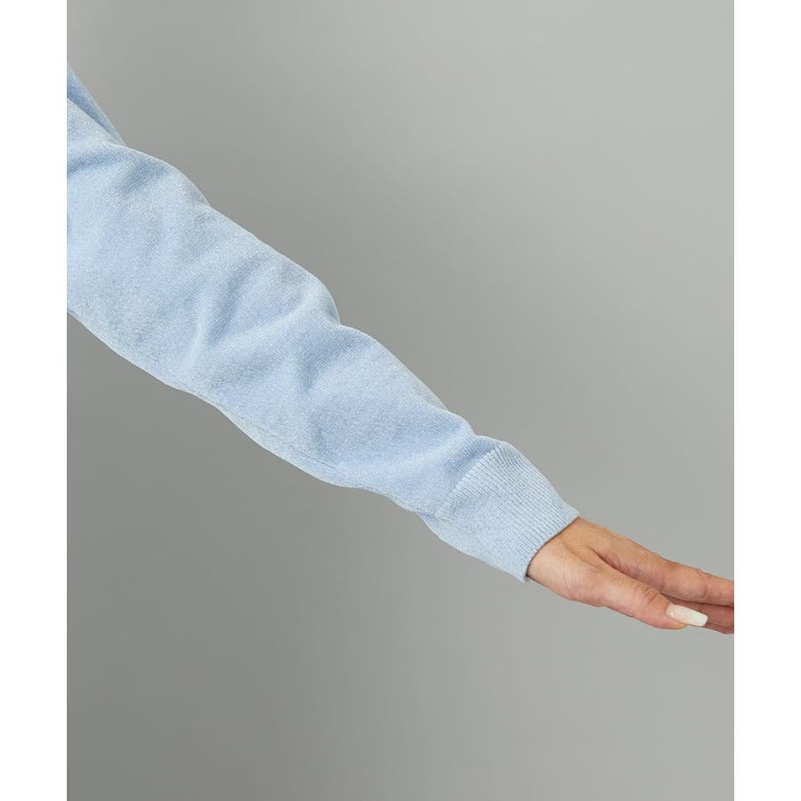 ベルベットのような光沢と柔らかさをもつモール糸を使用し、裏側にはポリエステル糸をプレーティング。程よいハリがあり、なめらかな質感ながらシルエットを美しくキープする素材です。