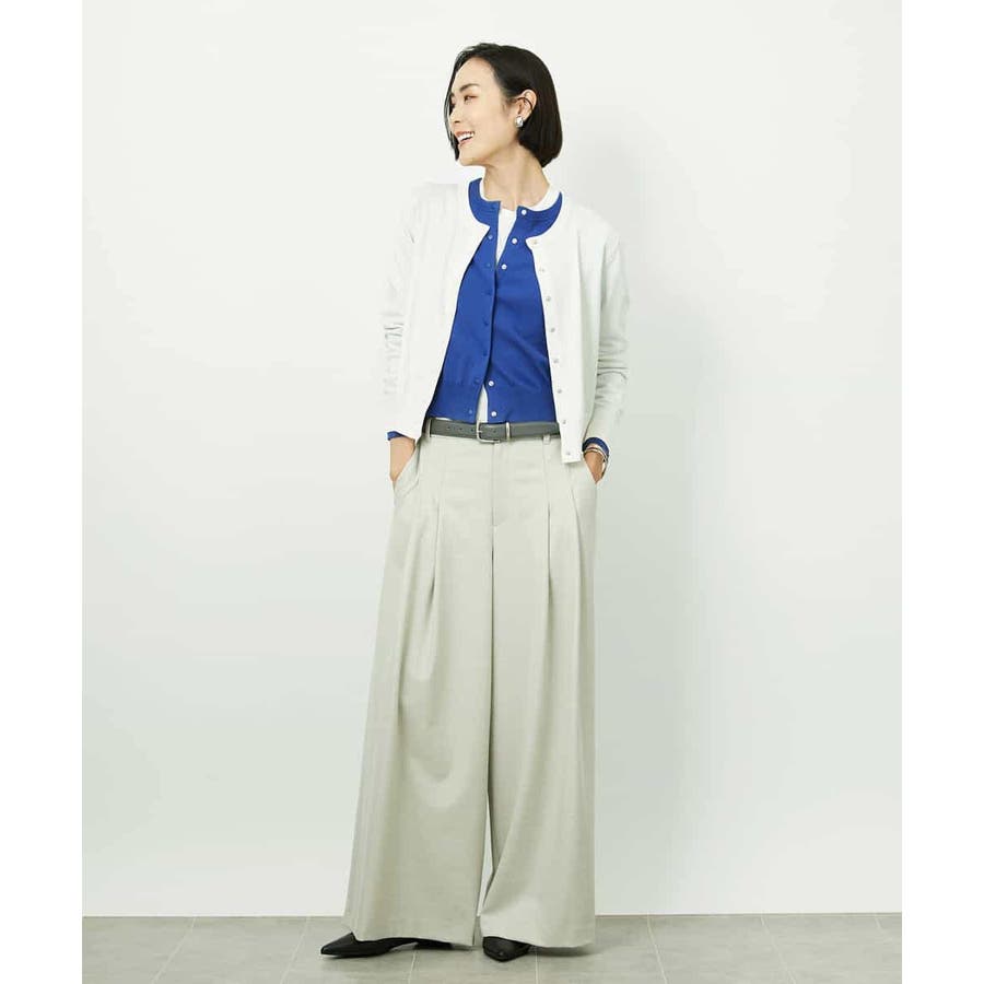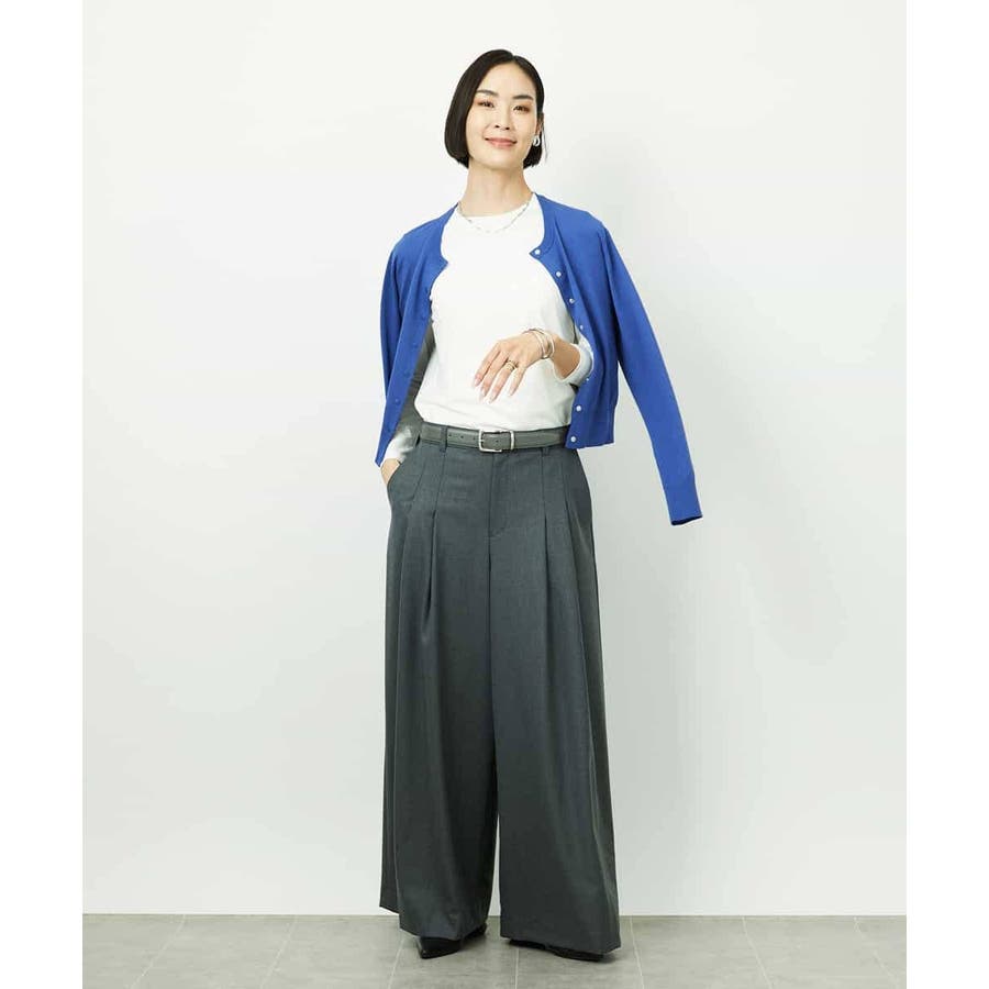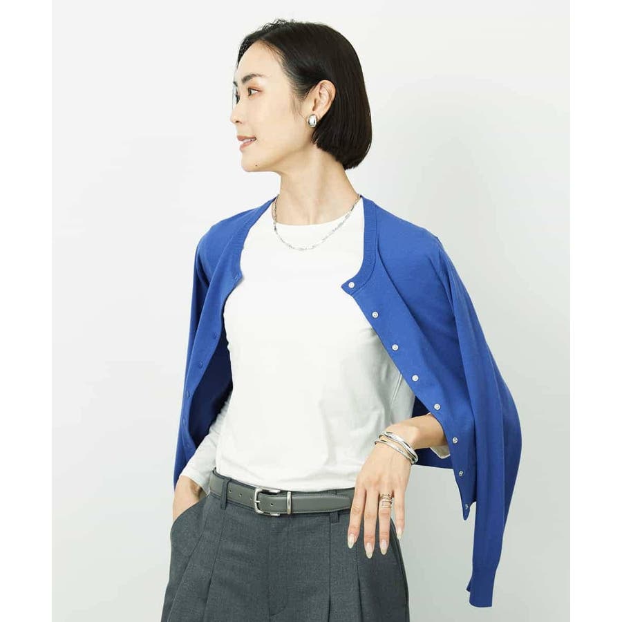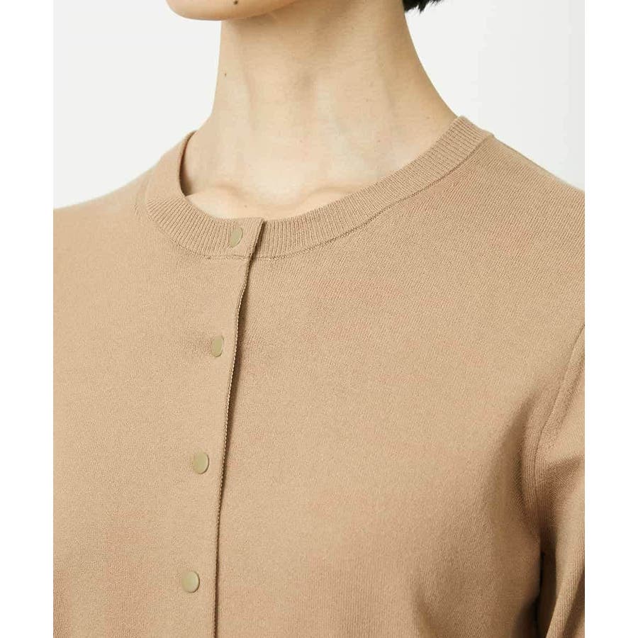 クルーネックのシンプルなデザインにスナップボタンをあしらい、上品な印象に仕上げました。ミニマルなデザインなので、カジュアルにもきれいめにも合わせやすい一枚です。40サイズは限定店舗展開です。